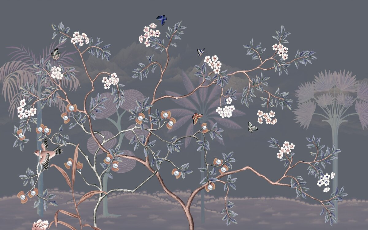 Fototapete: Landschaft im Chinoiserie-Stil mit Bäumen