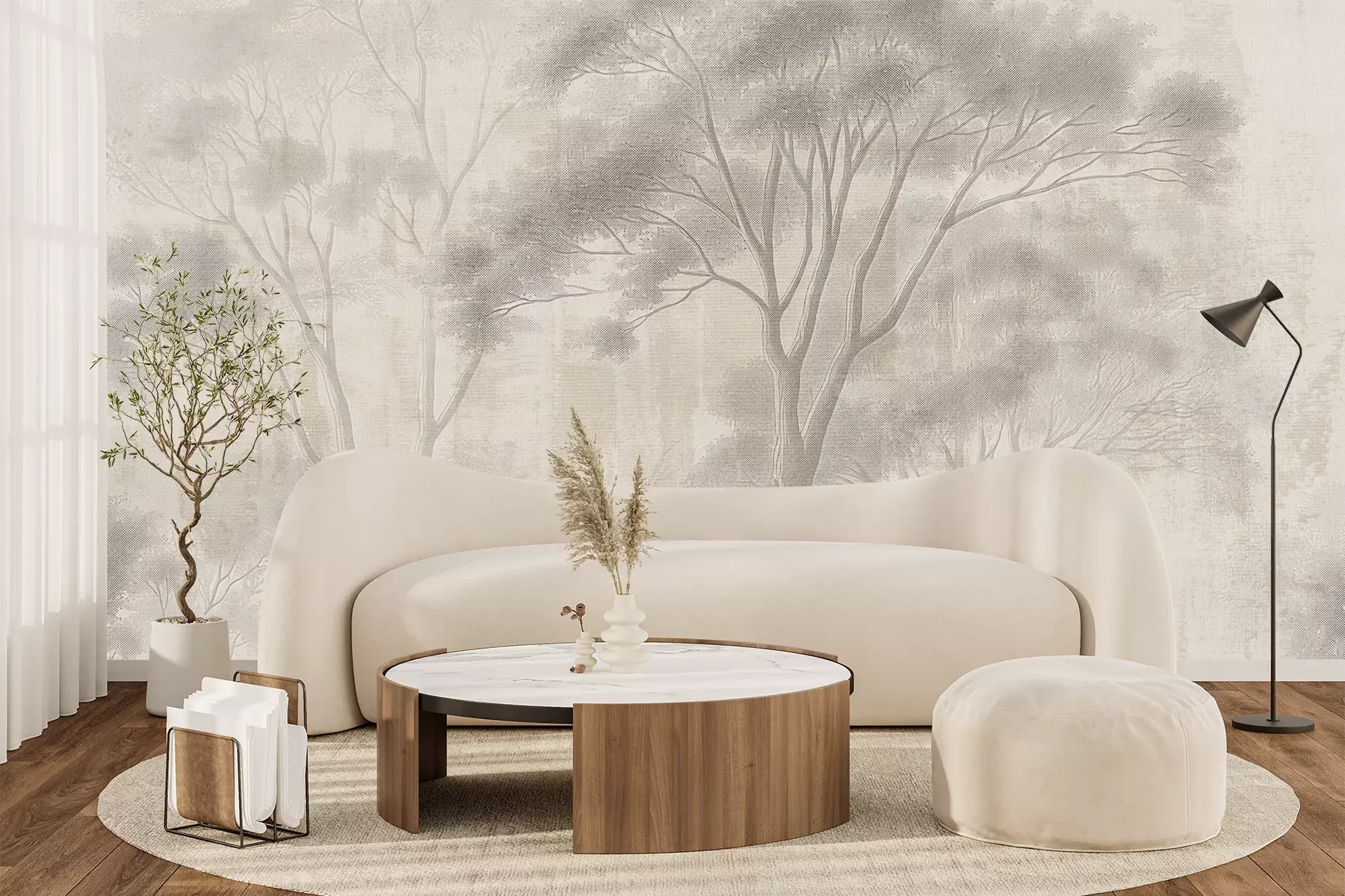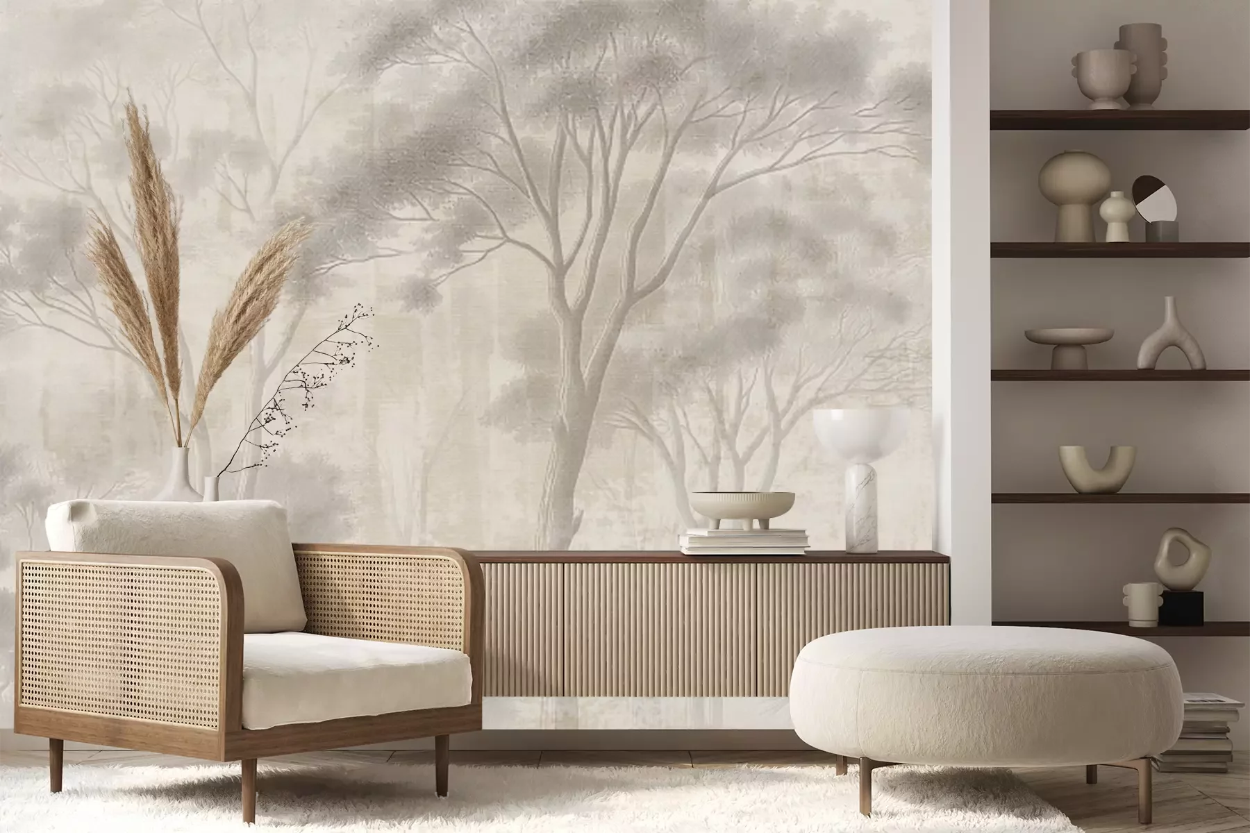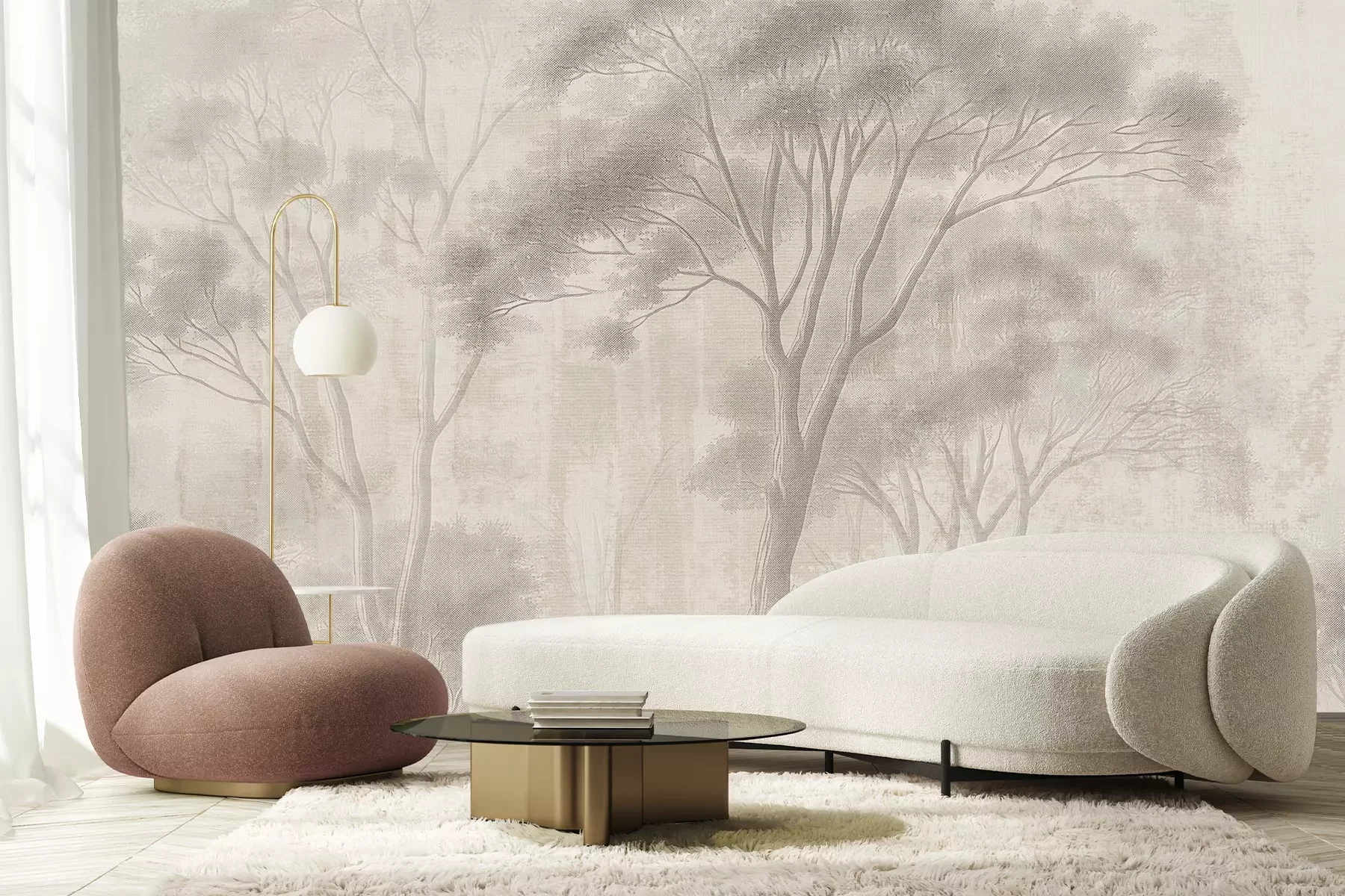 *Der Rabatt gilt nicht für Klebstoffe, Zubehör und Geschenkkarten.Eine beige Fototapete mit Pflanzenmotiv ist ein perfektes Beispiel für eine dekorative Lösung, die das bestehende Interieur aufwertet, ohne seinen Charakter zu verändern. Die dezente, elegante Farbgebung verleiht dem Raum eine gemütliche Atmosphäre. Dies ist eine viel bessere Alternative zu einer leeren, weißen Wand, die jeden Raum unpersönlich wirken lässt. Die hier präsentierte Boho-Fototapete passt zu verschiedenen Einrichtungsstilen. Das dargestellte Wald-Motiv sieht in einer Retro-Einrichtung wunderschön aus, da die Bäume an eine altmodische Zeichnung erinnern. Der künstlerische Charakter der Komposition harmoniert hervorragend mit antiken Möbeln. Diese beige Fototapete mit absichtlich gealterter Textur ist auch eine ausgezeichnete Lösung für ein Zimmer im Stil Minimal Luxury. Sie ist elegant, aber auf eine ausgewogene und dezente Weise. Sie fügt sich perfekt in den zeitlosen Trend monochromer Arrangements ein, die auf verschiedenen Schattierungen derselben Farbe basieren. Ein wichtiger Vorteil, den diese Fototapete bietet, ist auch das dargestellte Thema. Bäume bringen ein Stück Natur in die Einrichtung, wodurch der Raum eine gemütliche und angenehme Ausstrahlung erhält. Zudem wirken Elemente aus der Natur immer ansprechend, weshalb diese Boho-Fototapete eine schöne Dekoration für viele Jahre ist. Die dezente Farbgebung und das Naturmotiv eignen sich hervorragend für die Gestaltung des Wohn- und Schlafzimmers, aber nicht nur dort. Dies ist auch eine ausgezeichnete Deko-Lösung für das Homeoffice. Um eine arbeitsfreundliche Atmosphäre zu schaffen, setzen Sie auf eine passende Fototapete. Wald in Beigetönen ist nicht nur ein elegantes Dekorationselement, sondern auch eine Wohltat für müde Augen, die durch das Licht des Computerbildschirms belastet werden. Durch den Stil des Musters kann unser Produkt auch in glamourösen, Öko-, skandinavischen, industriellen und minimalistischen Stylings eingesetzt werden. Dies sorgt für besondere Vielseitigkeit dieser Fototapete. Bäume ermöglichen es, die Nähe zur Natur zu genießen und gleichzeitig einen raffinierten Charakter in den Raum zu bringen.