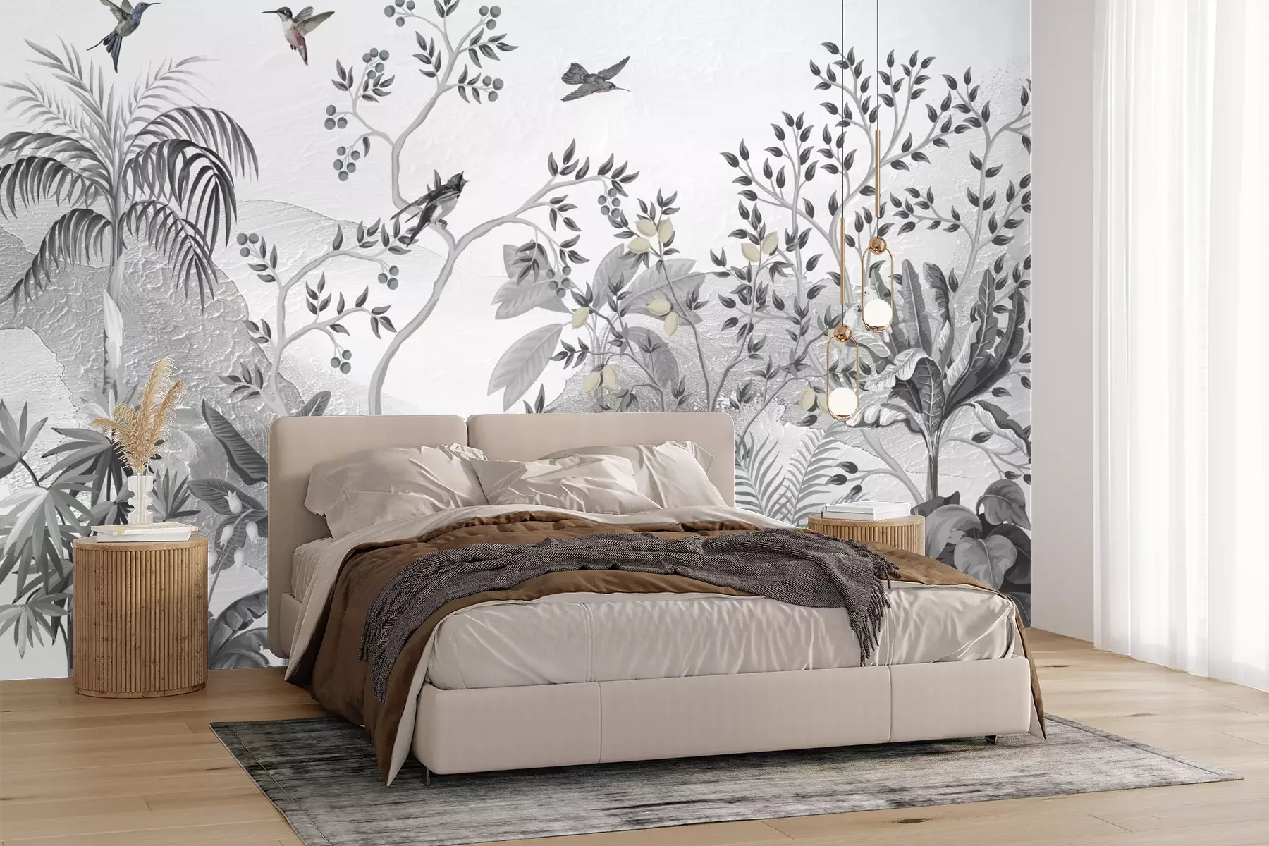 Die Fototapeten werden in Bahnen geliefert. Die Größe und die Anzahl der Bahnen, aus denen die gesamte Fototapete besteht, hängen vom gewählten Material ab. Wenn die Größe die maximale Breite des Materials überschreitet, besteht der Ausdruck aus mehreren gleich großen Bahnen.
