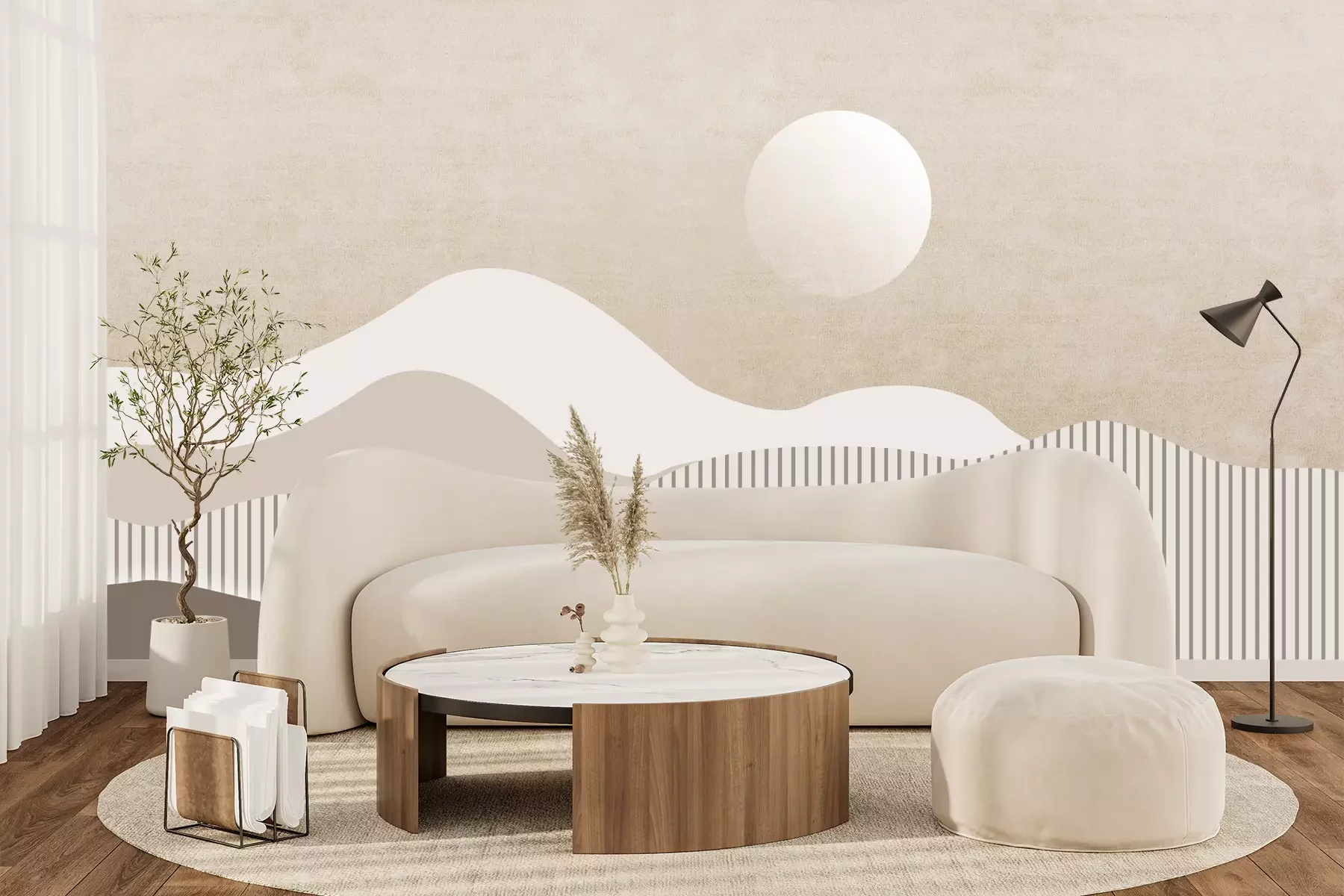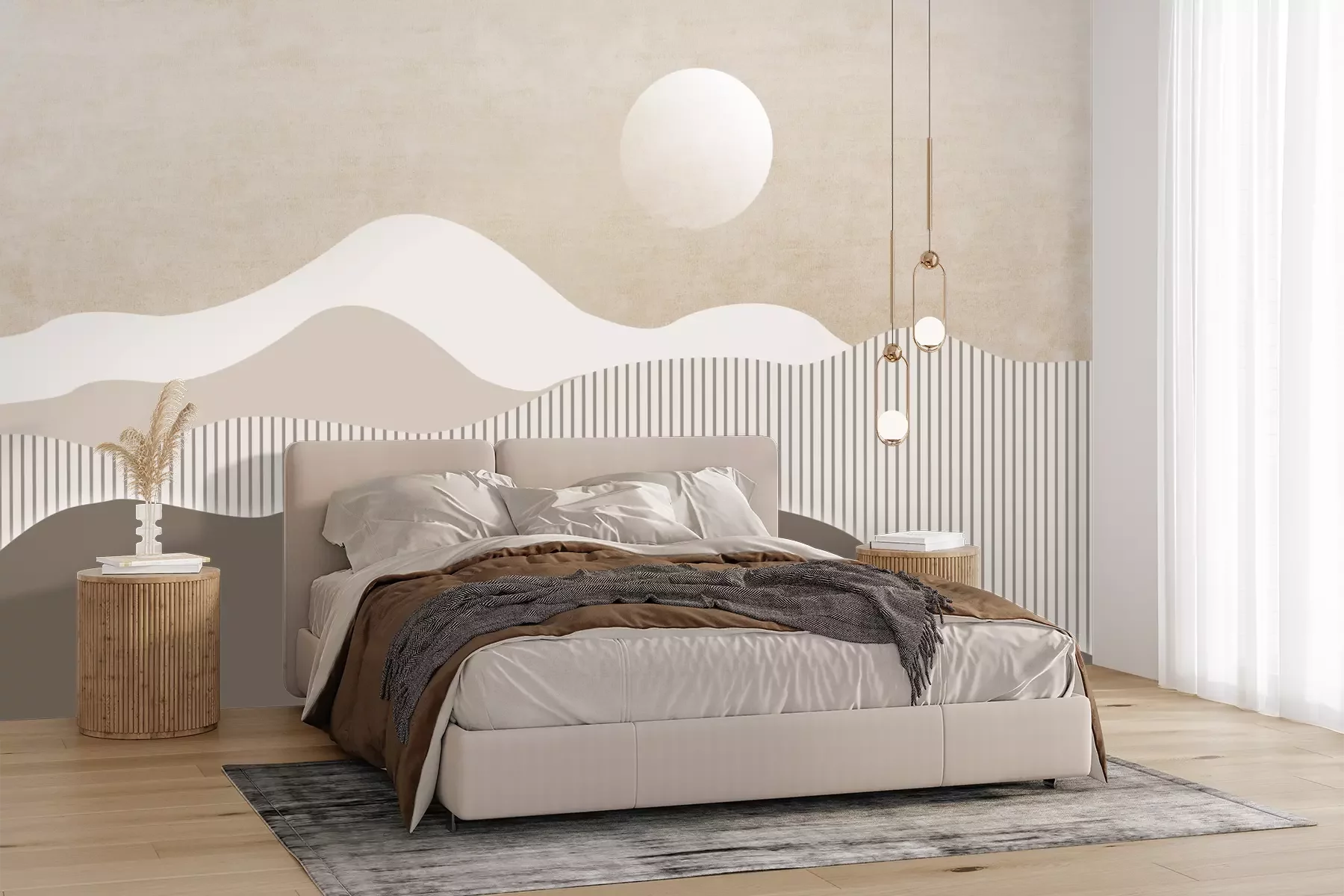 Die Fototapeten werden in Bahnen geliefert. Die Größe und die Anzahl der Bahnen, aus denen die gesamte Fototapete besteht, hängen vom gewählten Material ab. Wenn die Größe die maximale Breite des Materials überschreitet, besteht der Ausdruck aus mehreren gleich großen Bahnen.