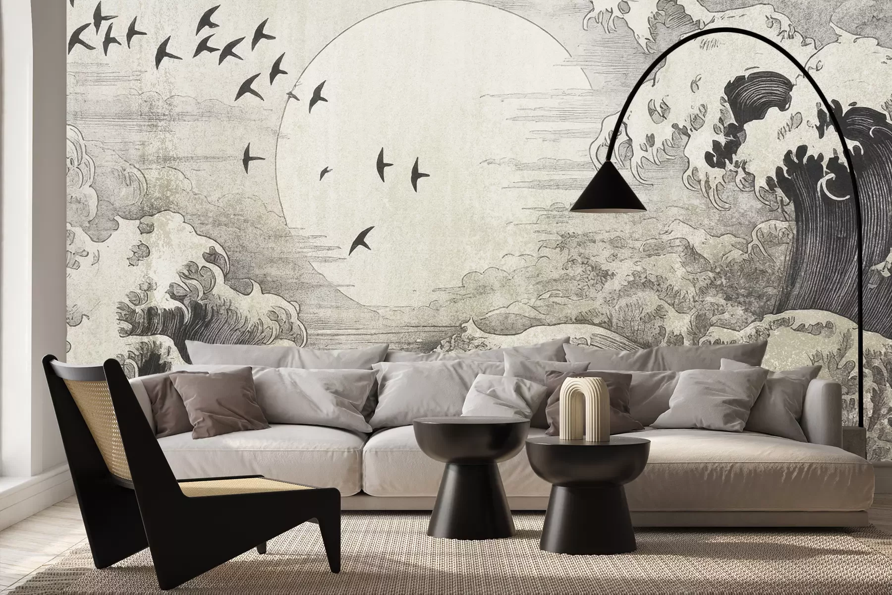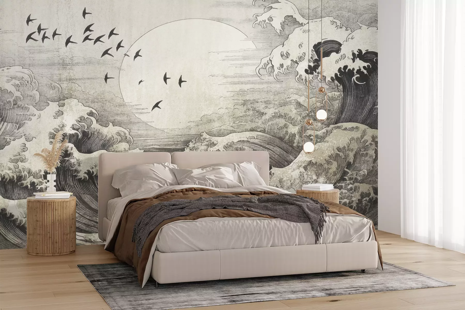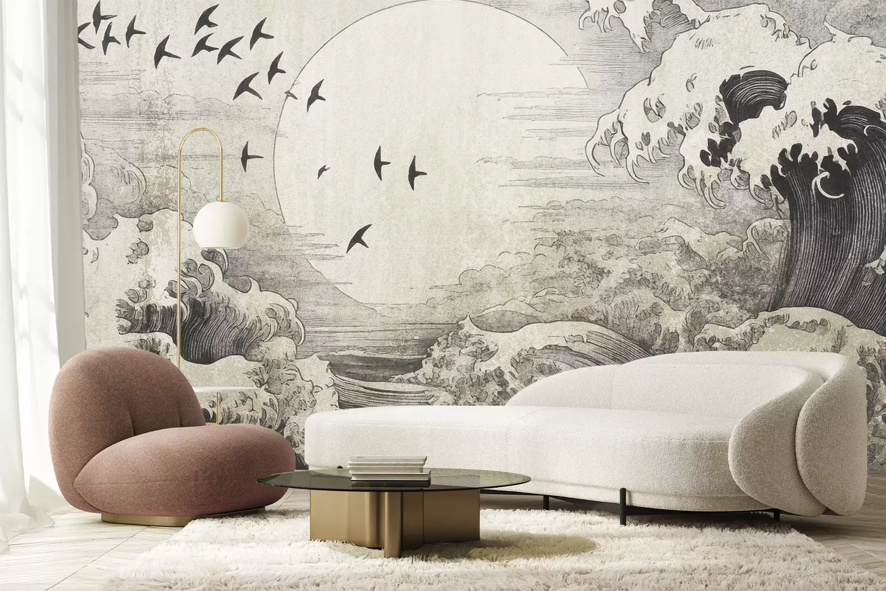 Das Material Premium+ besteht aus einer strukturierten Vinyl-Oberschicht und einem Trägermaterial (Vlies) mit einer Grammatur von 255 g/m², das kleine Unebenheiten der Wand zuverlässig kaschiert. Die feine Sandstruktur verleiht der Oberfläche eine luxuriöse Haptik, während das halbmatte Finish die Tiefe der Farben betont. Das Material ist dampfdurchlässig – so kann diese Fototapete auch in Küchen und Badezimmern eingesetzt werden. Die maximale Breite einer Tapetenbahn beträgt 100 cm. Bei größeren Abmessungen besteht die Fototapete aus mehreren gleich großen Bahnen. Der Kleber wird direkt auf die Wand aufgetragen, und die Fototapete wird auf Stoß angebracht, was für einen ästhetischen Effekt ohne sichtbare Fugen sorgt. Die Oberfläche ist pflegeleicht und kann bei Bedarf sanft mit einem feuchten Tuch abgewischt werden.