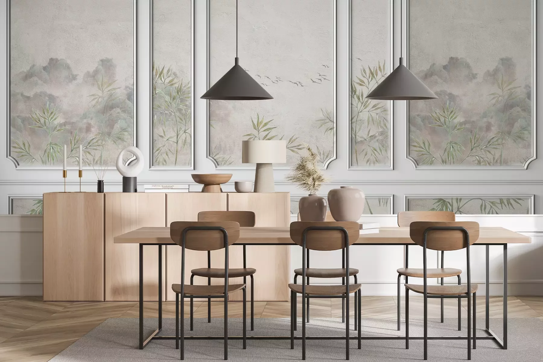 Das Material Premium+ besteht aus einer strukturierten Vinyl-Oberschicht und einem Trägermaterial (Vlies) mit einer Grammatur von 255 g/m², das kleine Unebenheiten der Wand zuverlässig kaschiert. Die feine Sandstruktur verleiht der Oberfläche eine luxuriöse Haptik, während das halbmatte Finish die Tiefe der Farben betont. Das Material ist dampfdurchlässig – so kann diese Fototapete auch in Küchen und Badezimmern eingesetzt werden. Die maximale Breite einer Tapetenbahn beträgt 100 cm. Bei größeren Abmessungen besteht die Fototapete aus mehreren gleich großen Bahnen. Der Kleber wird direkt auf die Wand aufgetragen, und die Fototapete wird auf Stoß angebracht, was für einen ästhetischen Effekt ohne sichtbare Fugen sorgt. Die Oberfläche ist pflegeleicht und kann bei Bedarf sanft mit einem feuchten Tuch abgewischt werden.