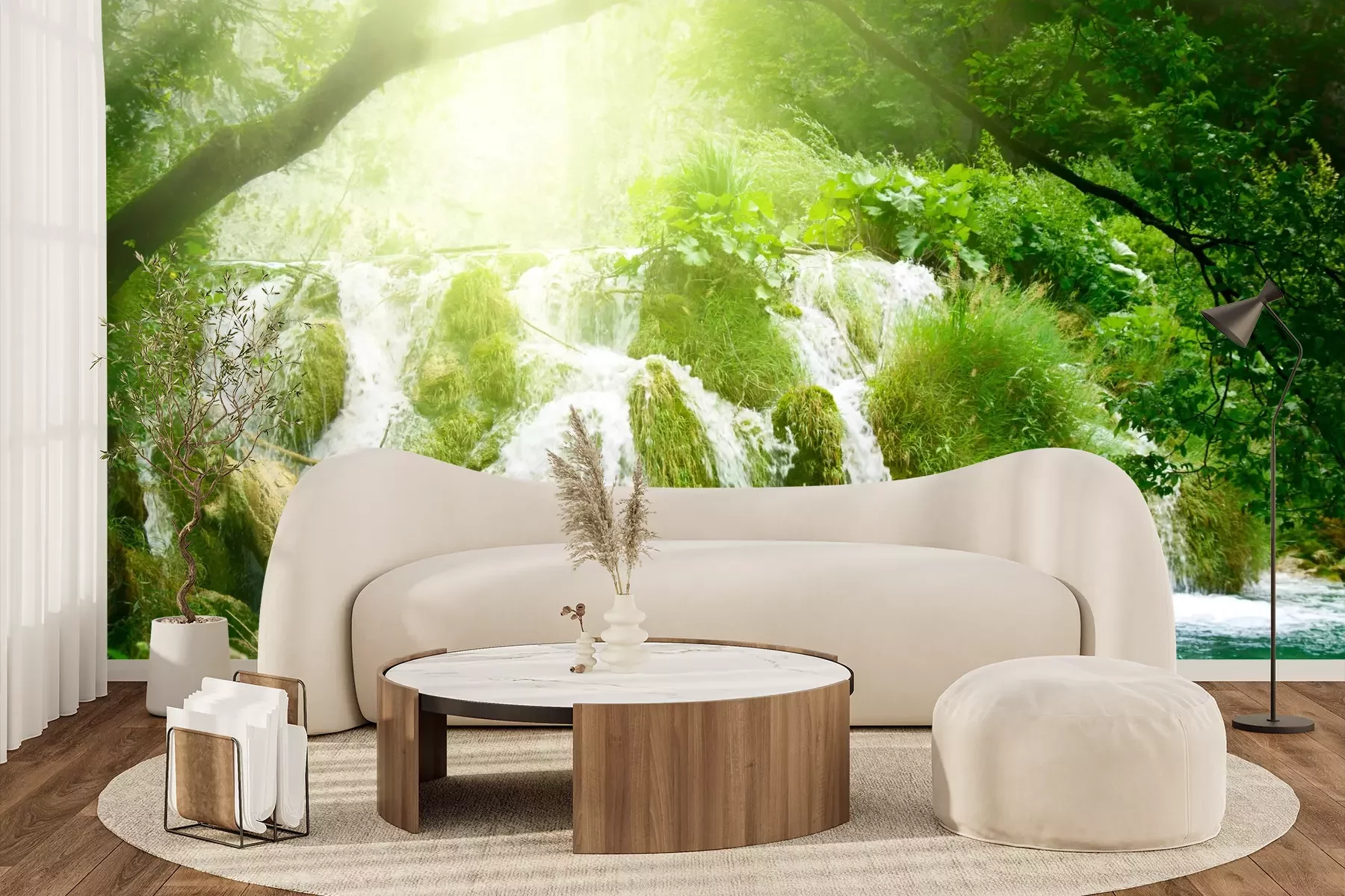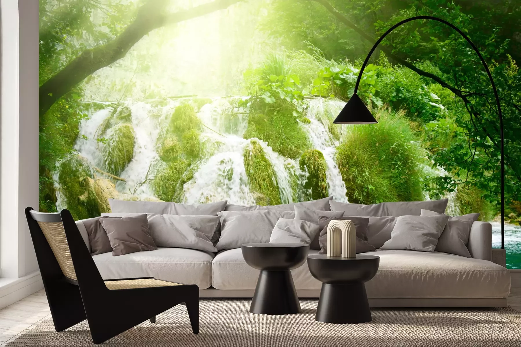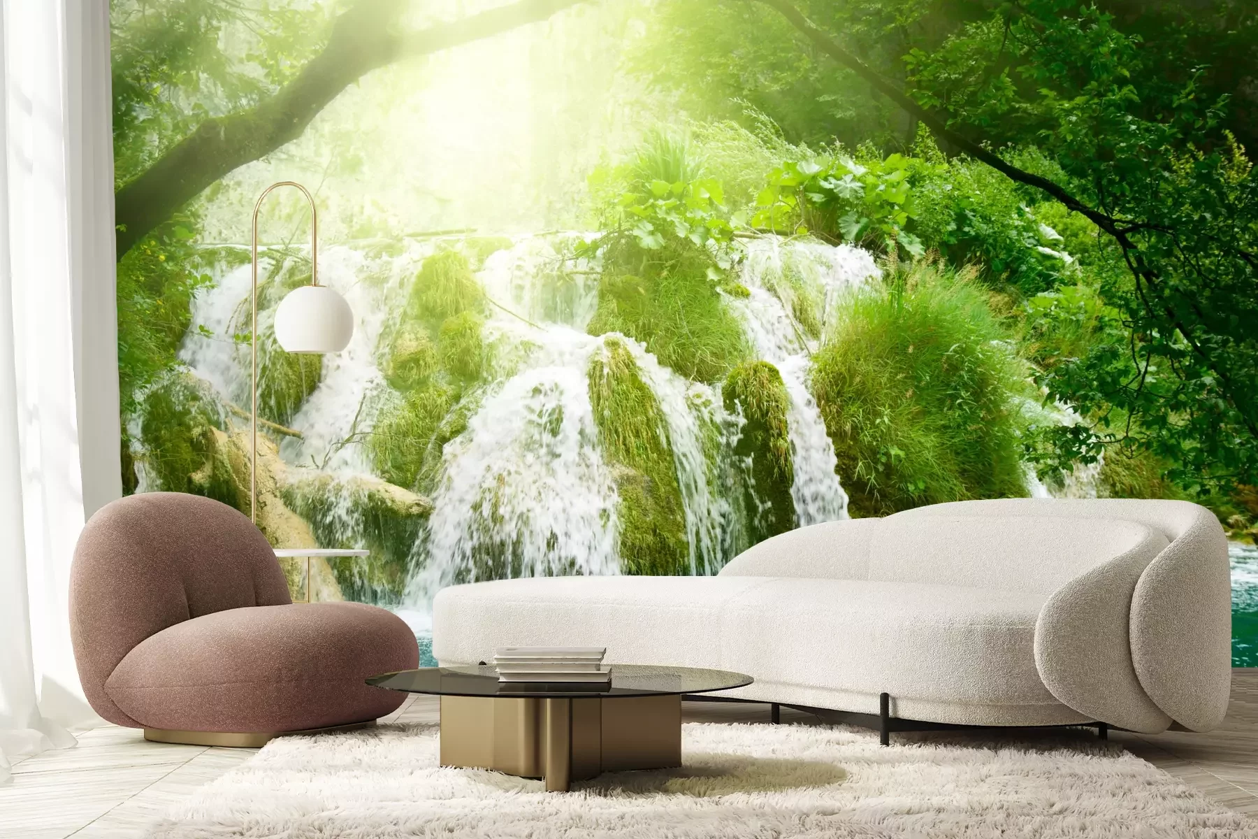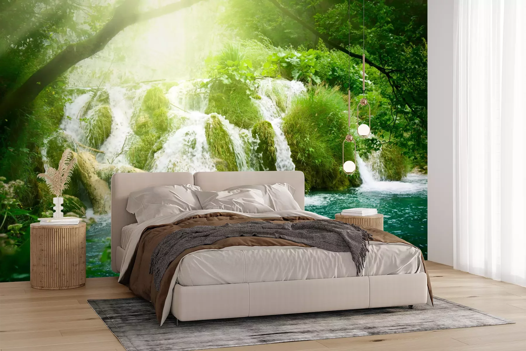 Fototapete Landschaft mit Wasserfall im Dschungel