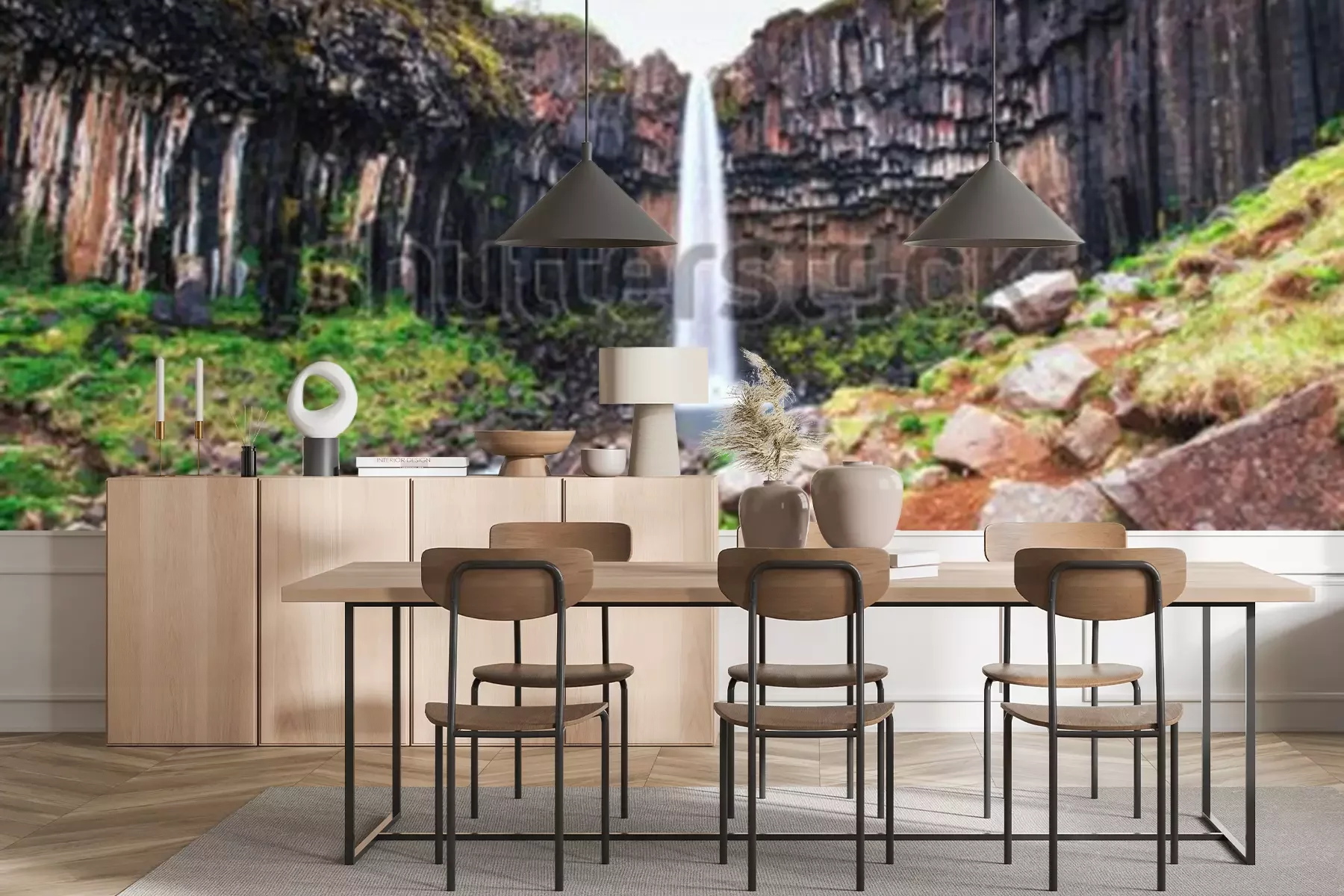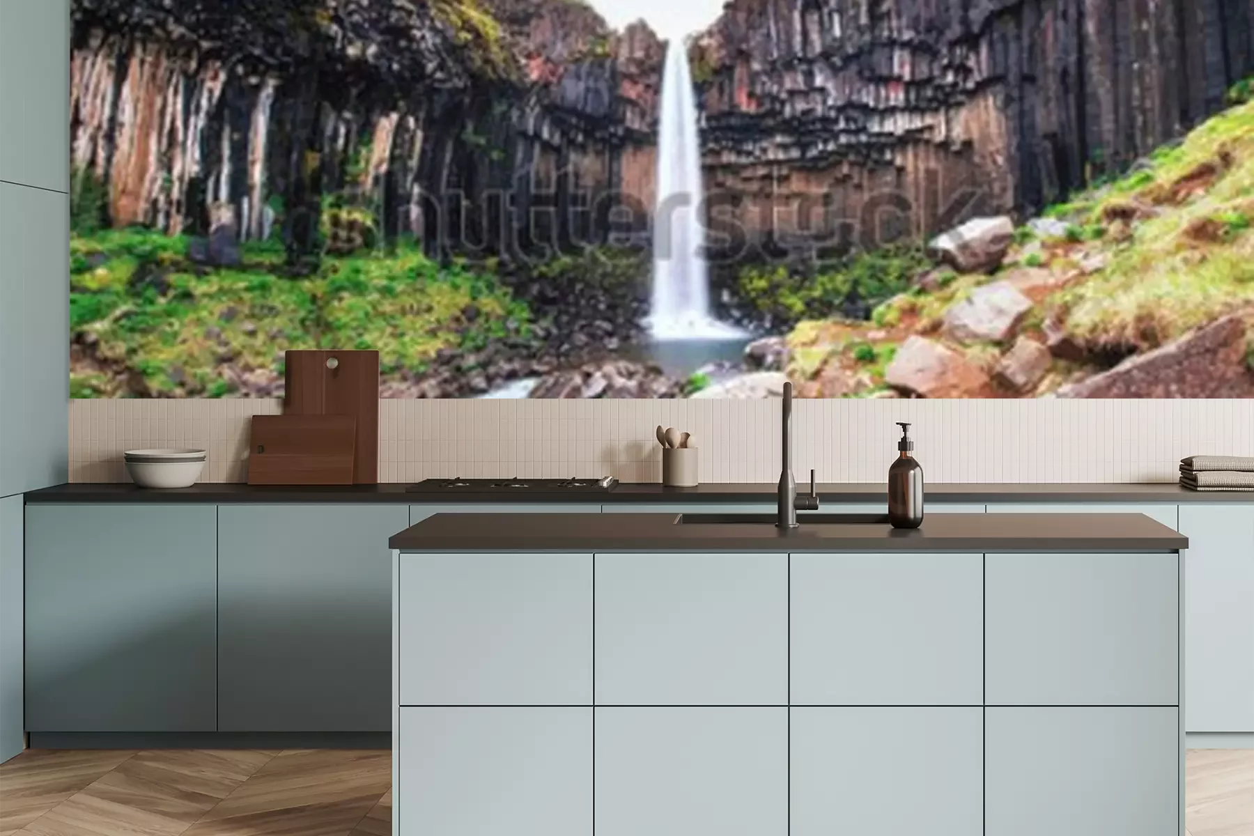Fototapete Landschaft mit Wasserfall inmitten der Felse