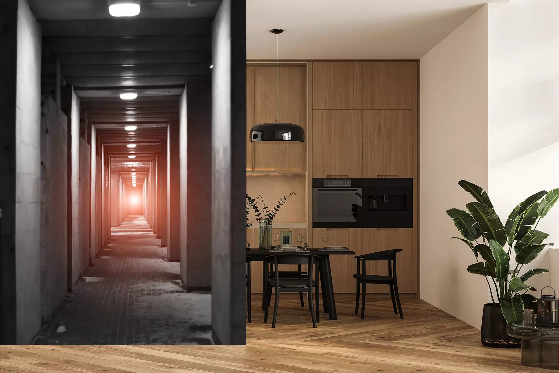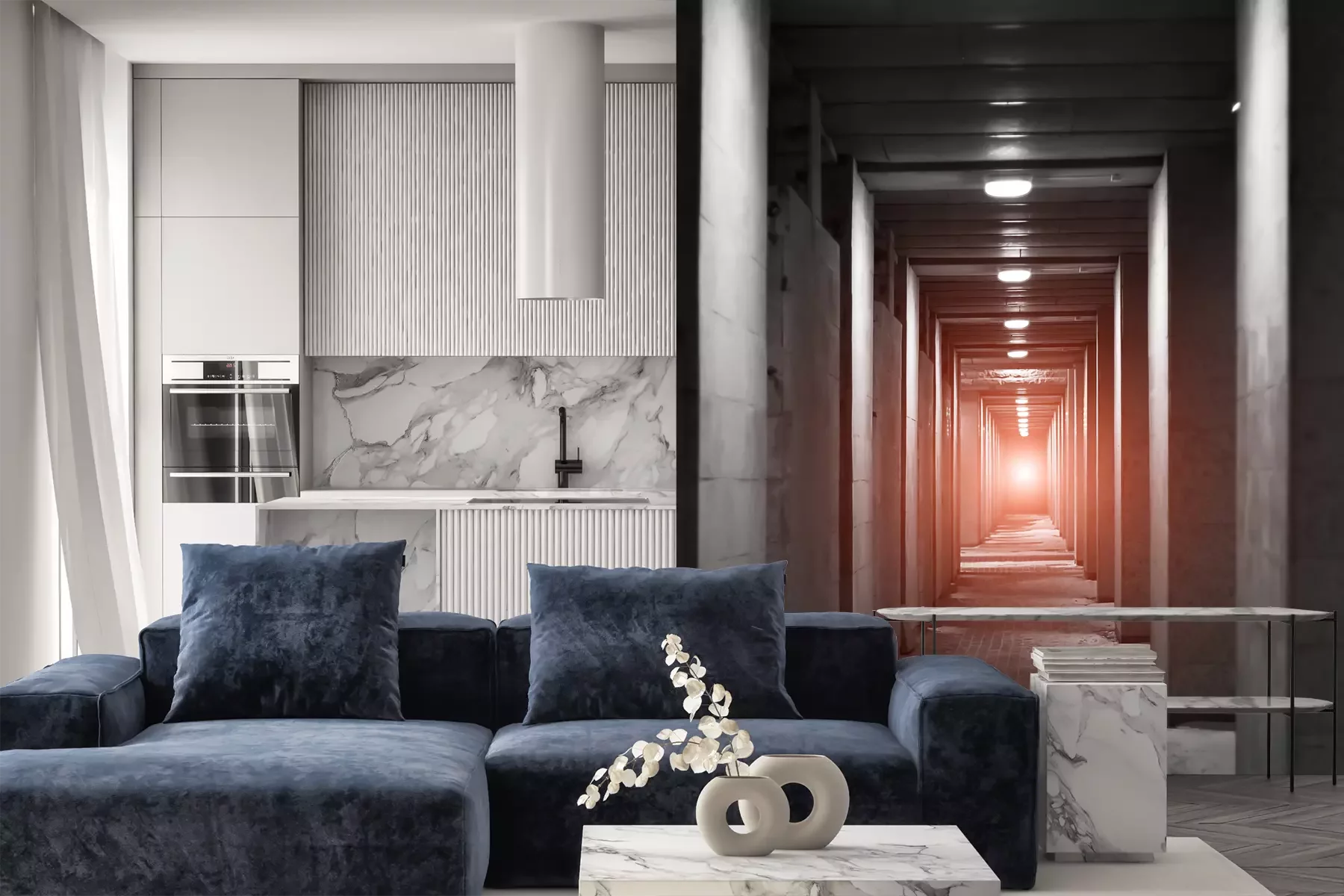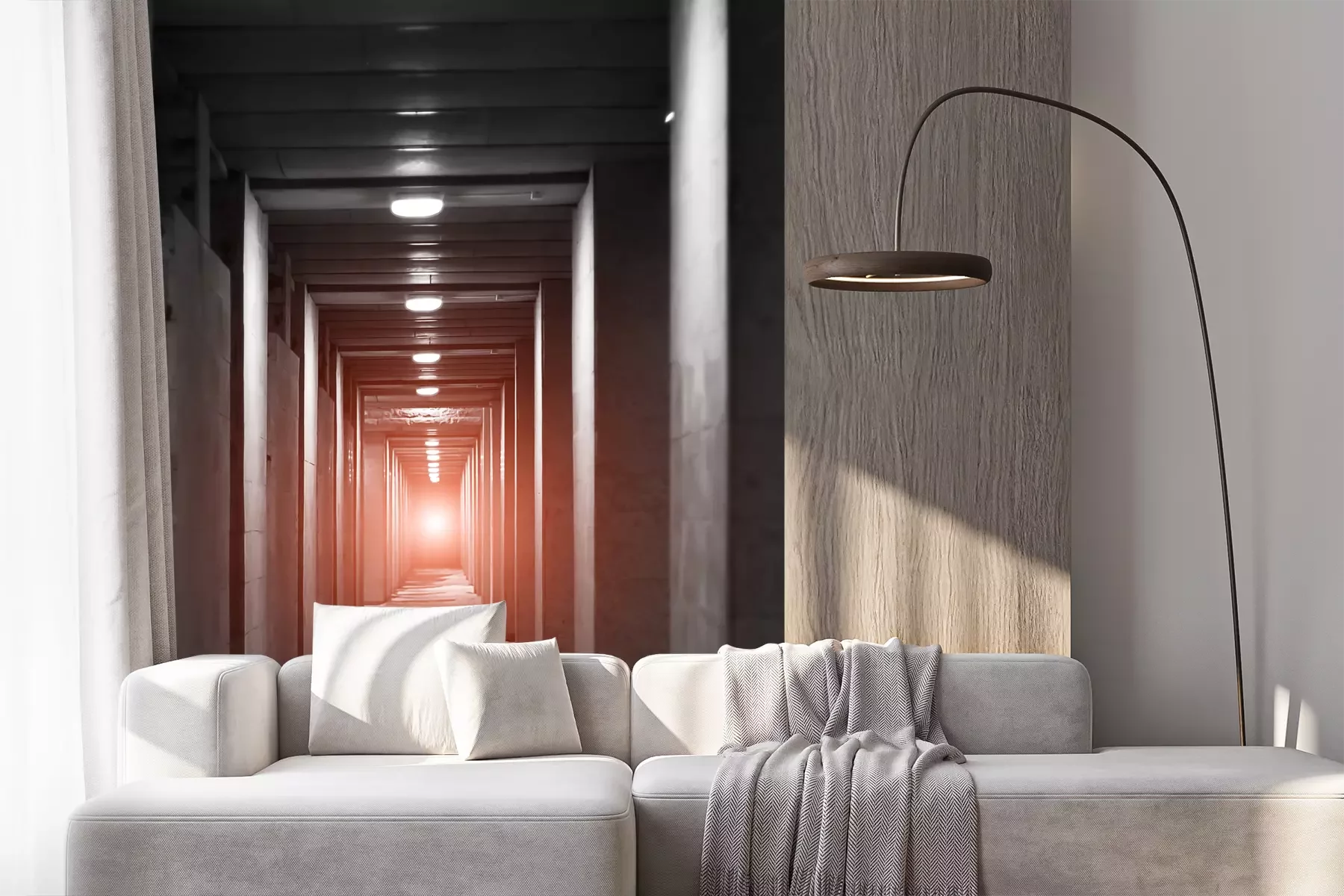 Fototapete Langer Betontunnel