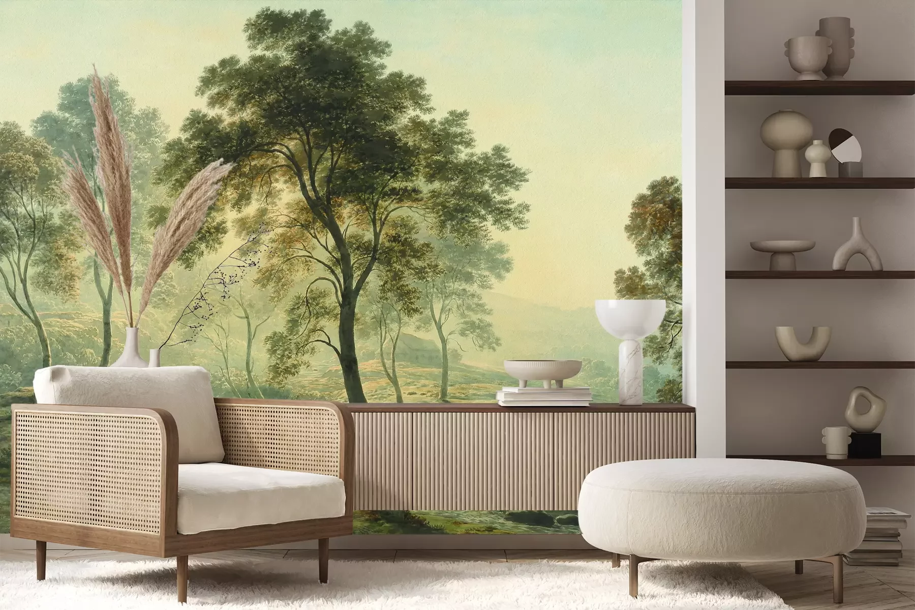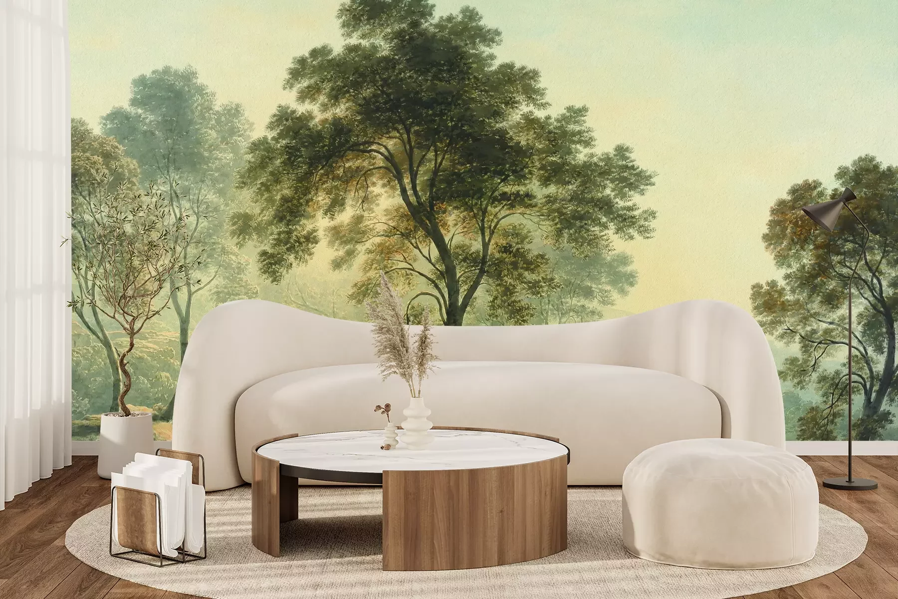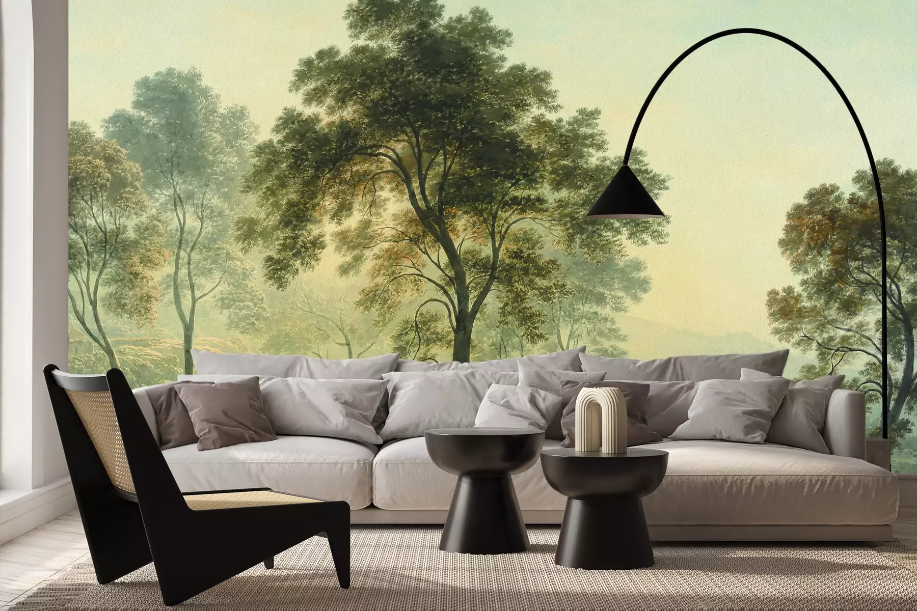 Das Material Premium+ besteht aus einer strukturierten Vinyl-Oberschicht und einem Trägermaterial (Vlies) mit einer Grammatur von 255 g/m², das kleine Unebenheiten der Wand zuverlässig kaschiert. Die feine Sandstruktur verleiht der Oberfläche eine luxuriöse Haptik, während das halbmatte Finish die Tiefe der Farben betont. Das Material ist dampfdurchlässig – so kann diese Fototapete auch in Küchen und Badezimmern eingesetzt werden. Die maximale Breite einer Tapetenbahn beträgt 100 cm. Bei größeren Abmessungen besteht die Fototapete aus mehreren gleich großen Bahnen. Der Kleber wird direkt auf die Wand aufgetragen, und die Fototapete wird auf Stoß angebracht, was für einen ästhetischen Effekt ohne sichtbare Fugen sorgt. Die Oberfläche ist pflegeleicht und kann bei Bedarf sanft mit einem feuchten Tuch abgewischt werden.
