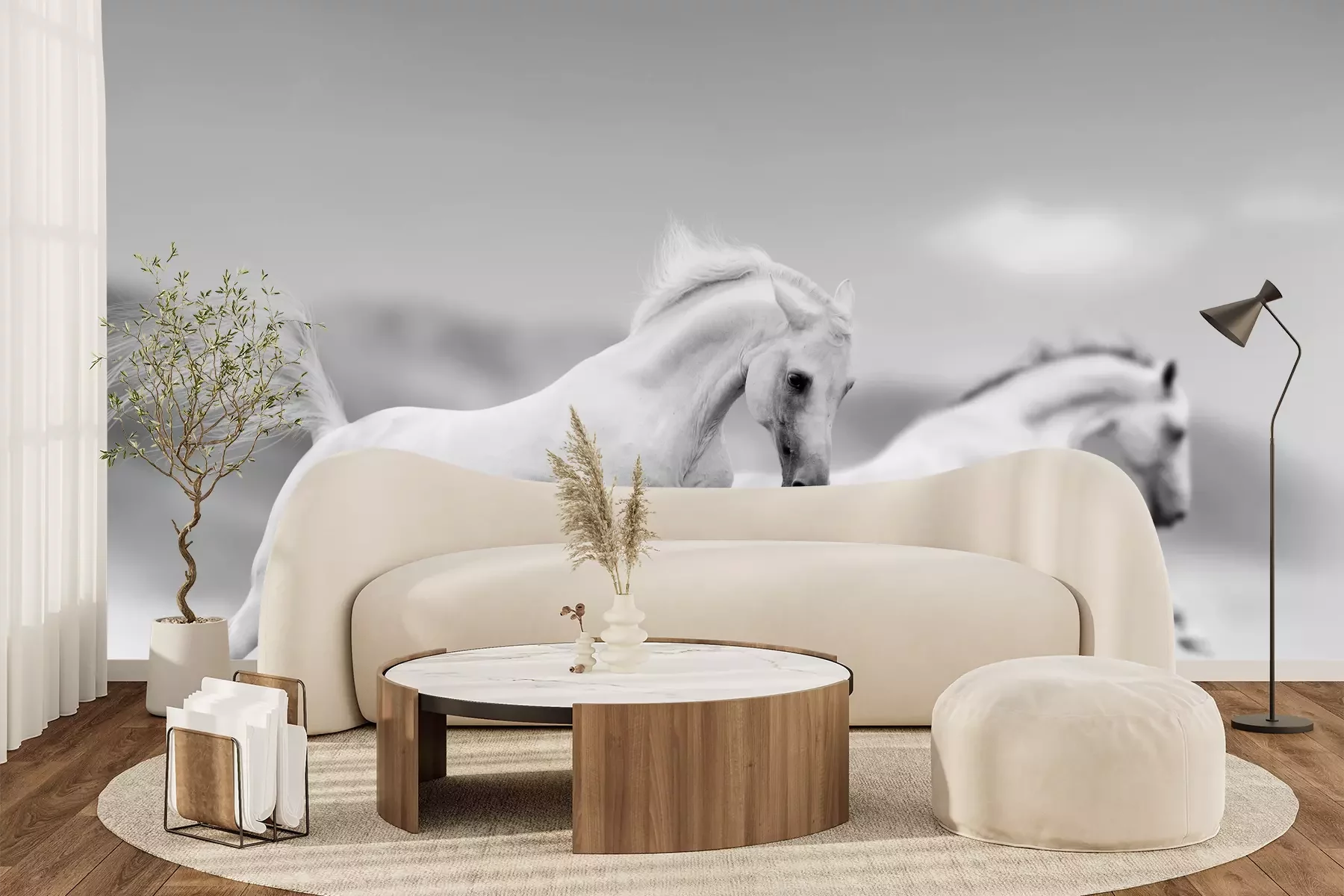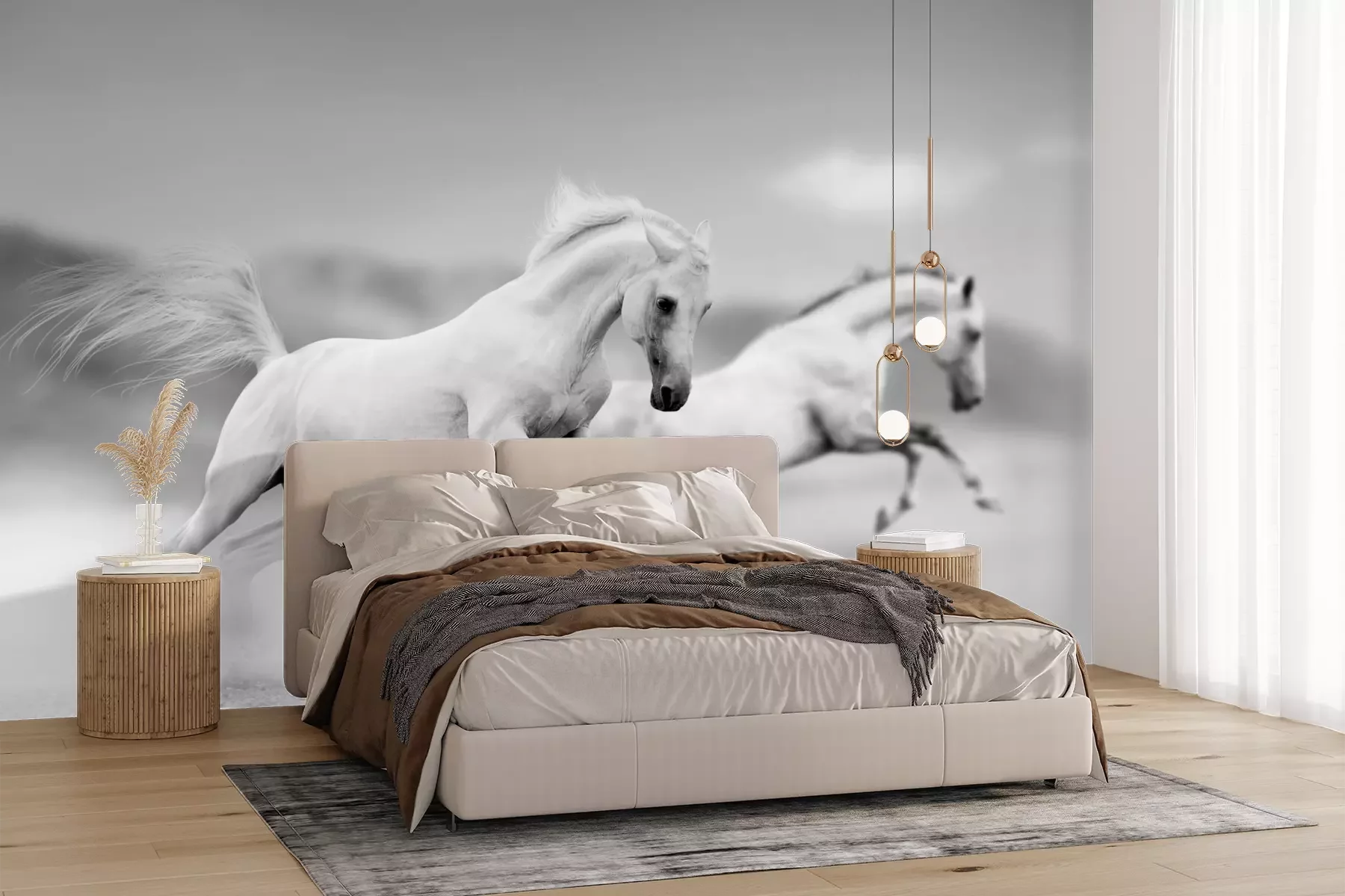 Das Material Premium+ besteht aus einer strukturierten Vinyl-Oberschicht und einem Trägermaterial (Vlies) mit einer Grammatur von 255 g/m², das kleine Unebenheiten der Wand zuverlässig kaschiert. Die feine Sandstruktur verleiht der Oberfläche eine luxuriöse Haptik, während das halbmatte Finish die Tiefe der Farben betont. Das Material ist dampfdurchlässig – so kann diese Fototapete auch in Küchen und Badezimmern eingesetzt werden. Die maximale Breite einer Tapetenbahn beträgt 100 cm. Bei größeren Abmessungen besteht die Fototapete aus mehreren gleich großen Bahnen. Der Kleber wird direkt auf die Wand aufgetragen, und die Fototapete wird auf Stoß angebracht, was für einen ästhetischen Effekt ohne sichtbare Fugen sorgt. Die Oberfläche ist pflegeleicht und kann bei Bedarf sanft mit einem feuchten Tuch abgewischt werden.