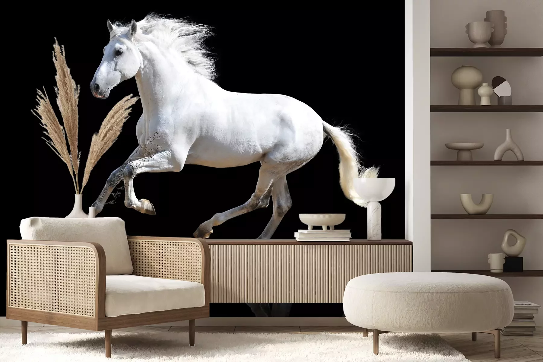 Das Material Premium+ besteht aus einer strukturierten Vinyl-Oberschicht und einem Trägermaterial (Vlies) mit einer Grammatur von 255 g/m², das kleine Unebenheiten der Wand zuverlässig kaschiert. Die feine Sandstruktur verleiht der Oberfläche eine luxuriöse Haptik, während das halbmatte Finish die Tiefe der Farben betont. Das Material ist dampfdurchlässig – so kann diese Fototapete auch in Küchen und Badezimmern eingesetzt werden. Die maximale Breite einer Tapetenbahn beträgt 100 cm. Bei größeren Abmessungen besteht die Fototapete aus mehreren gleich großen Bahnen. Der Kleber wird direkt auf die Wand aufgetragen, und die Fototapete wird auf Stoß angebracht, was für einen ästhetischen Effekt ohne sichtbare Fugen sorgt. Die Oberfläche ist pflegeleicht und kann bei Bedarf sanft mit einem feuchten Tuch abgewischt werden.
