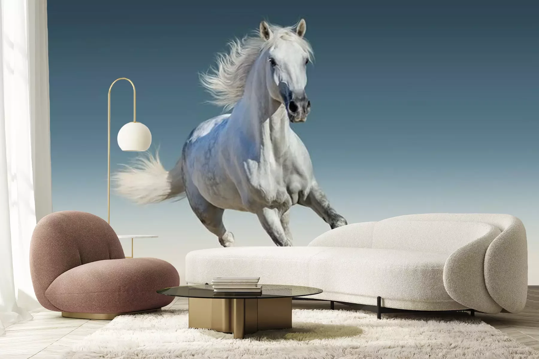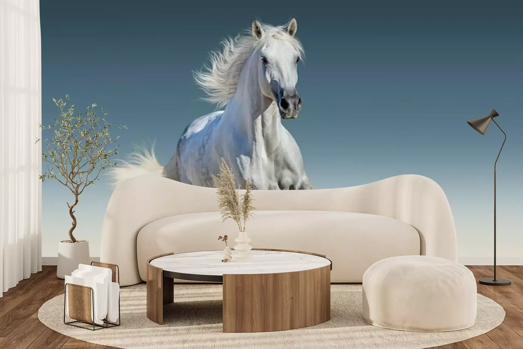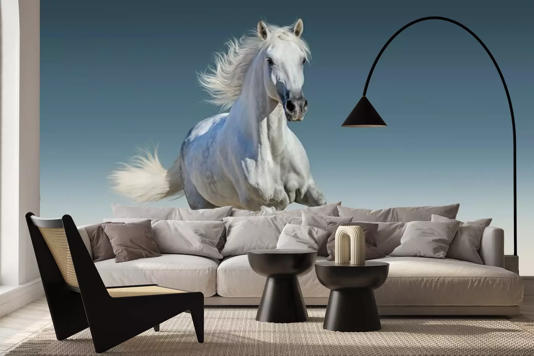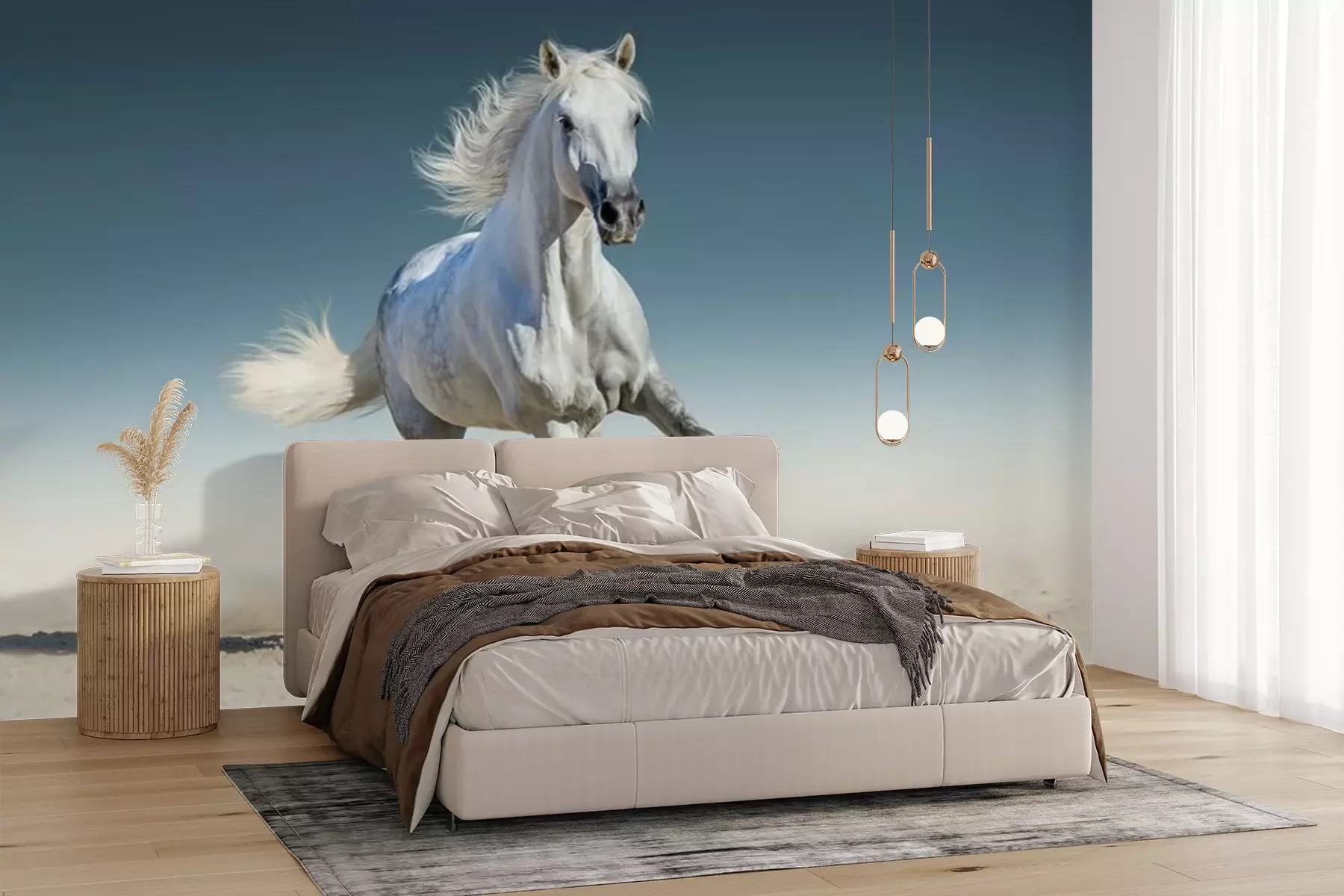 Fototapete Laufendes weißes Pferd am Sand