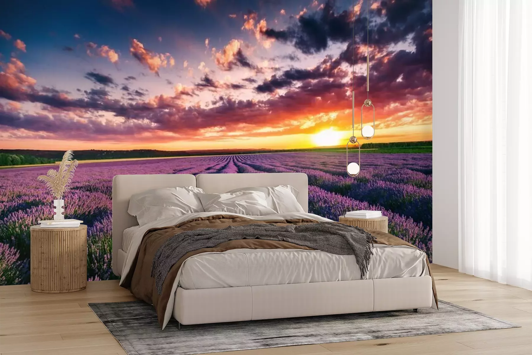 Die Fototapeten werden in Bahnen geliefert. Die Größe und die Anzahl der Bahnen, aus denen die gesamte Fototapete besteht, hängen vom gewählten Material ab. Wenn die Größe die maximale Breite des Materials überschreitet, besteht der Ausdruck aus mehreren gleich großen Bahnen.