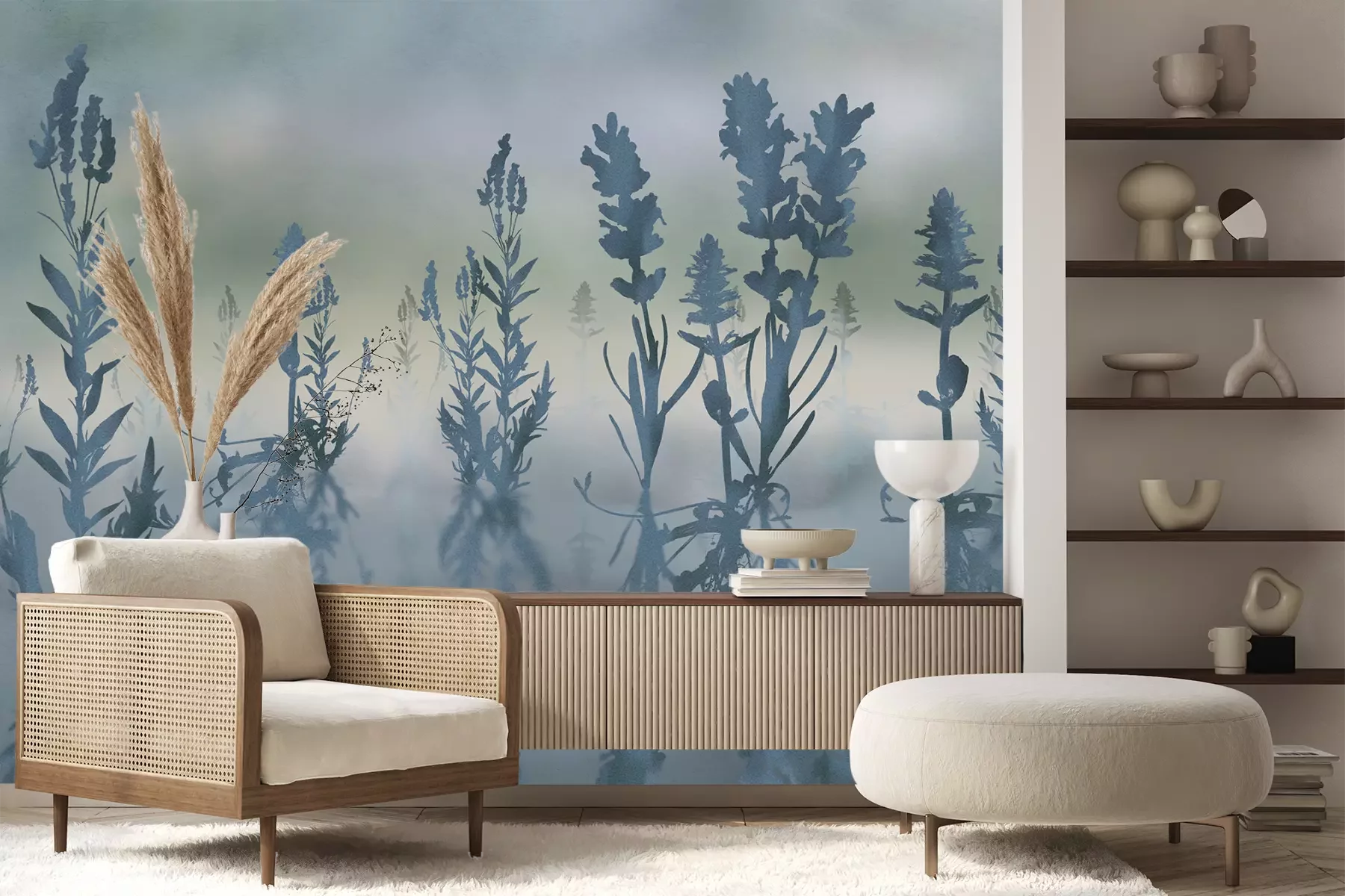 Das Material Premium+ besteht aus einer strukturierten Vinyl-Oberschicht und einem Trägermaterial (Vlies) mit einer Grammatur von 255 g/m², das kleine Unebenheiten der Wand zuverlässig kaschiert. Die feine Sandstruktur verleiht der Oberfläche eine luxuriöse Haptik, während das halbmatte Finish die Tiefe der Farben betont. Das Material ist dampfdurchlässig – so kann diese Fototapete auch in Küchen und Badezimmern eingesetzt werden. Die maximale Breite einer Tapetenbahn beträgt 100 cm. Bei größeren Abmessungen besteht die Fototapete aus mehreren gleich großen Bahnen. Der Kleber wird direkt auf die Wand aufgetragen, und die Fototapete wird auf Stoß angebracht, was für einen ästhetischen Effekt ohne sichtbare Fugen sorgt. Die Oberfläche ist pflegeleicht und kann bei Bedarf sanft mit einem feuchten Tuch abgewischt werden.
