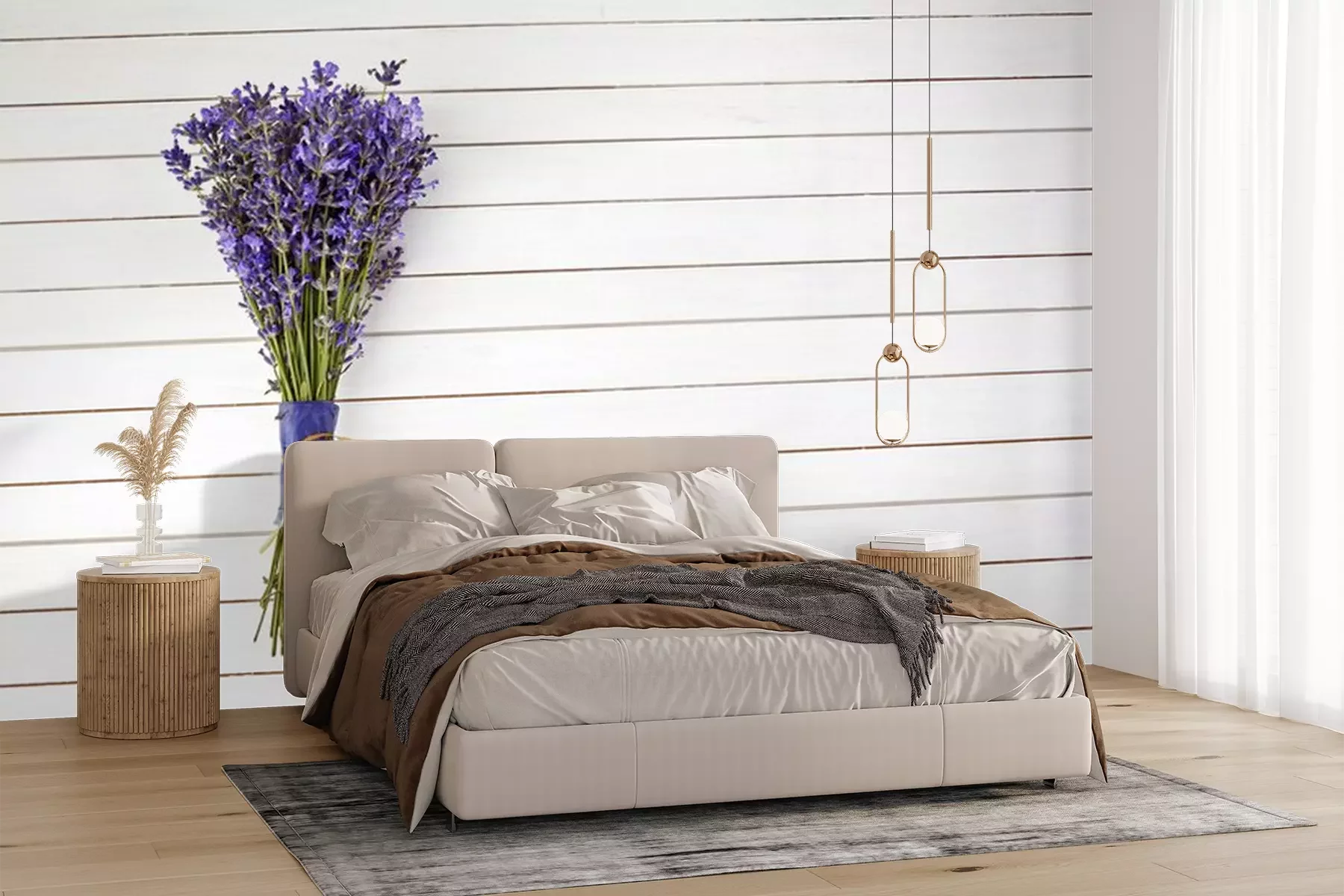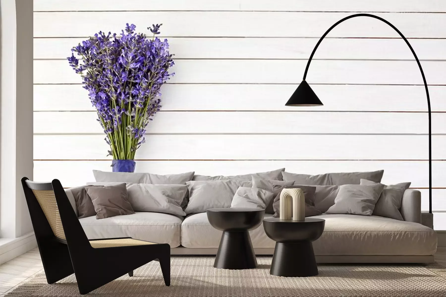 Fototapete Lavendelbouquet auf weißen Tafeln