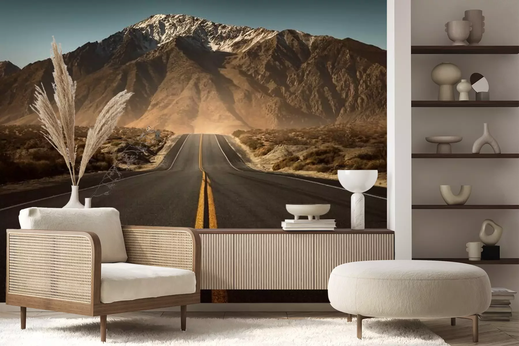 Das Material Premium+ besteht aus einer strukturierten Vinyl-Oberschicht und einem Trägermaterial (Vlies) mit einer Grammatur von 255 g/m², das kleine Unebenheiten der Wand zuverlässig kaschiert. Die feine Sandstruktur verleiht der Oberfläche eine luxuriöse Haptik, während das halbmatte Finish die Tiefe der Farben betont. Das Material ist dampfdurchlässig – so kann diese Fototapete auch in Küchen und Badezimmern eingesetzt werden. Die maximale Breite einer Tapetenbahn beträgt 100 cm. Bei größeren Abmessungen besteht die Fototapete aus mehreren gleich großen Bahnen. Der Kleber wird direkt auf die Wand aufgetragen, und die Fototapete wird auf Stoß angebracht, was für einen ästhetischen Effekt ohne sichtbare Fugen sorgt. Die Oberfläche ist pflegeleicht und kann bei Bedarf sanft mit einem feuchten Tuch abgewischt werden.