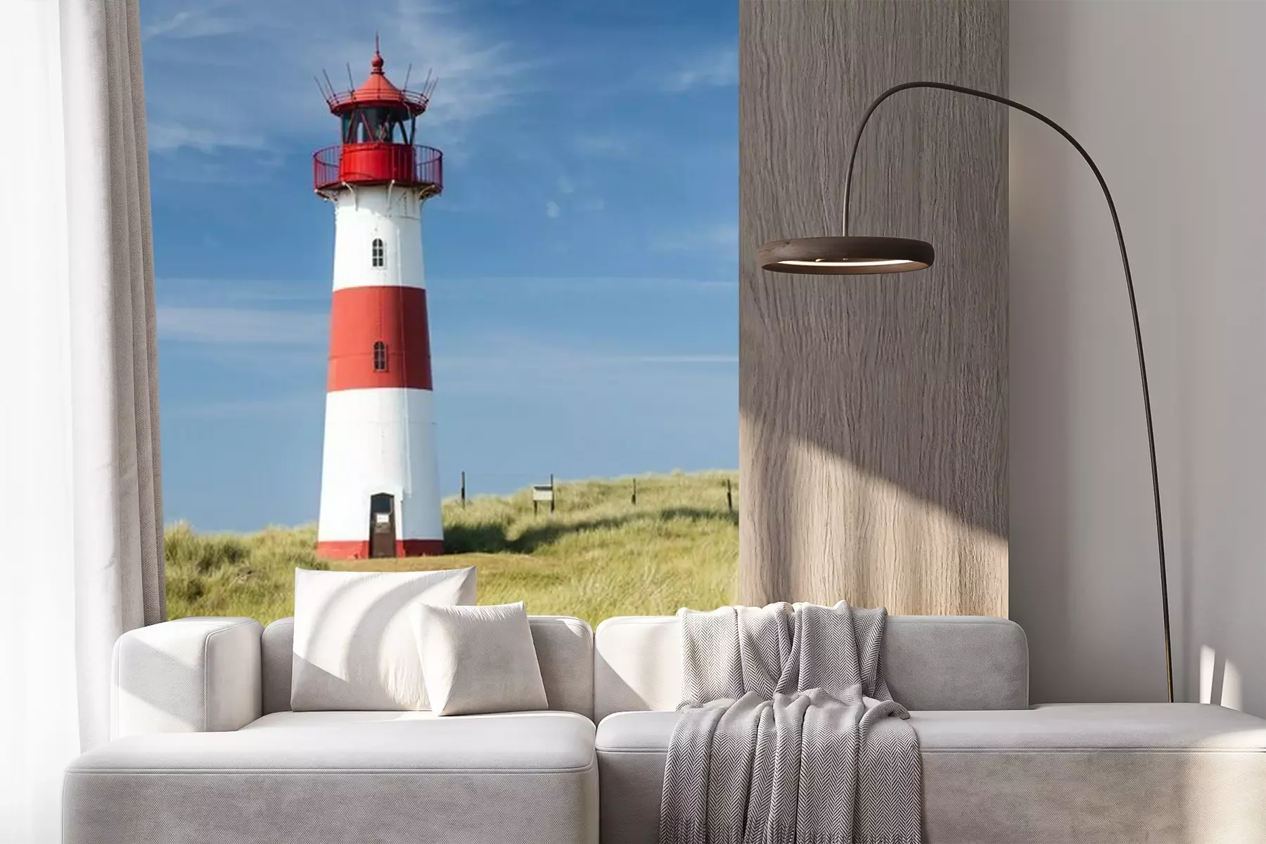 Ein Leuchtturm zwischen Dünen und GrasProblemlose Lieferung durch vertrauenswürdige Spediteure