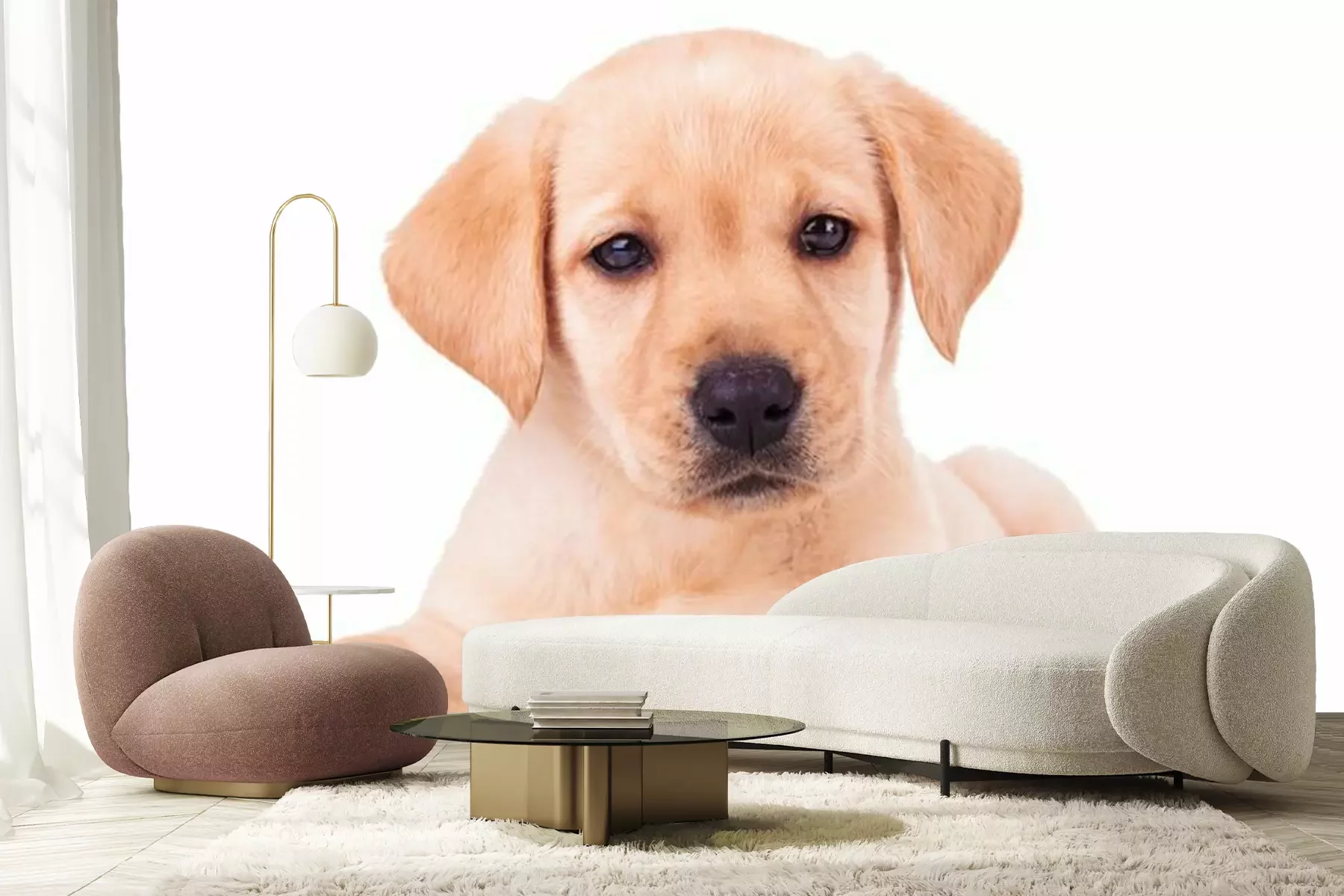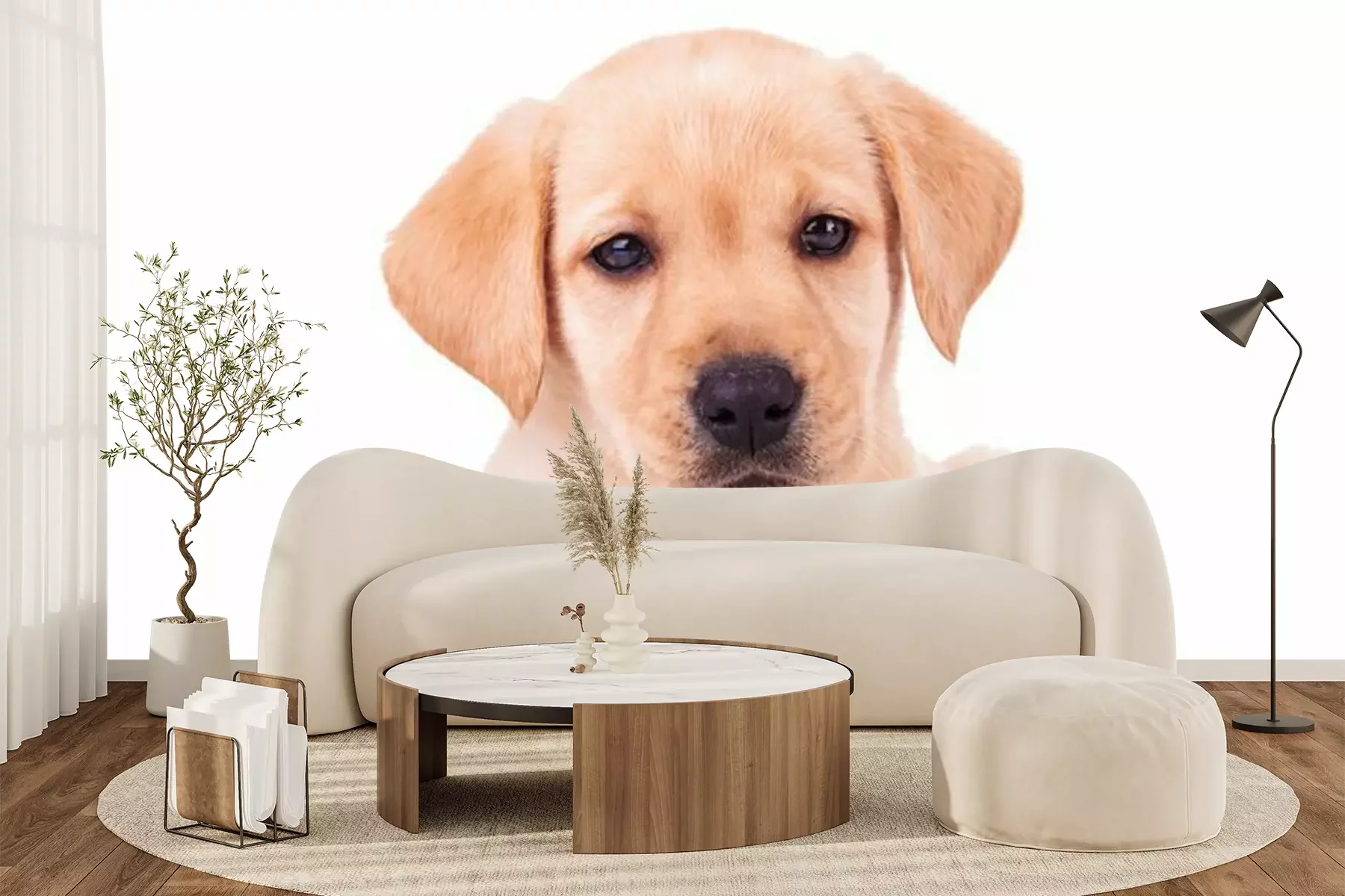 Fototapete liegender Hund auf einem hellen Hintergrund