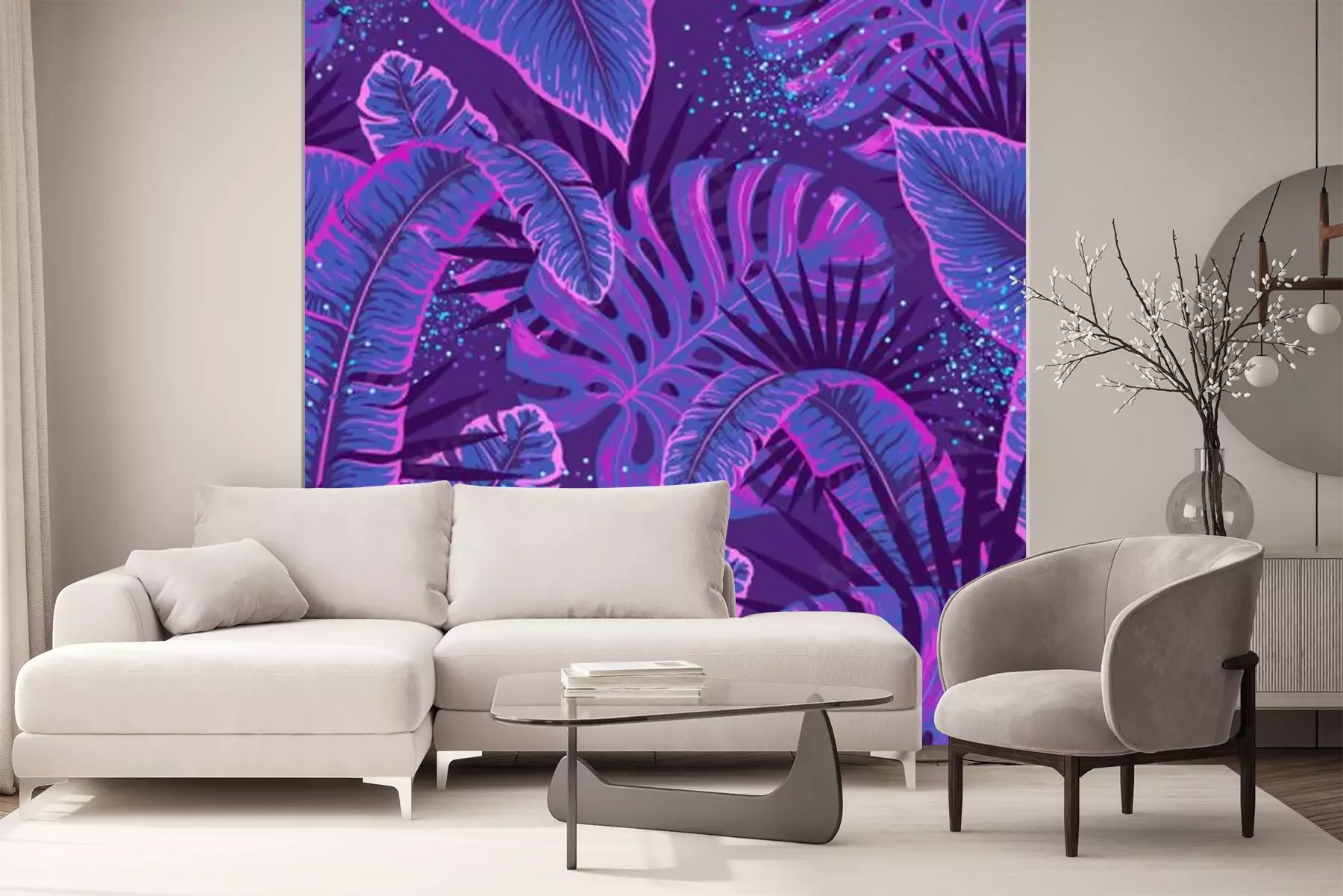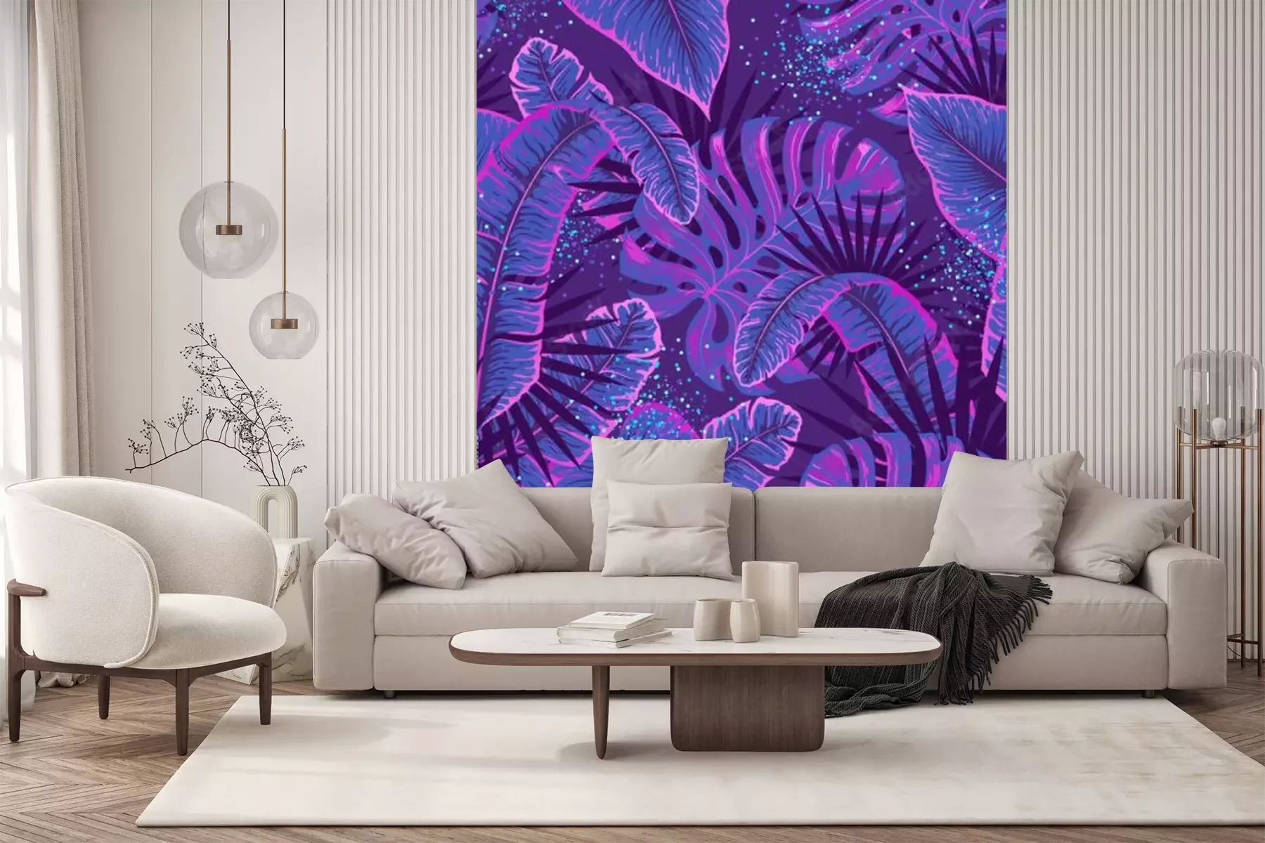 Fototapete Lila-rosa Palmblätter