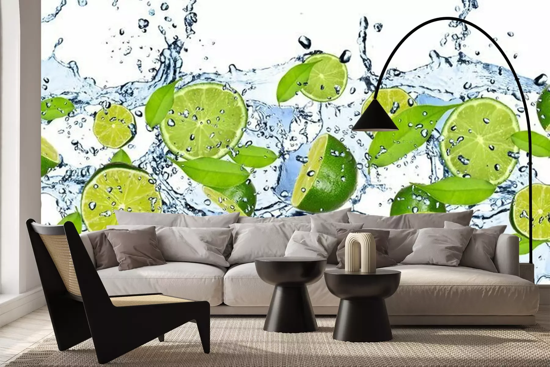 Limonen im Wasser auf schwarzem HintergrundProblemlose Lieferung durch vertrauenswürdige Spediteure