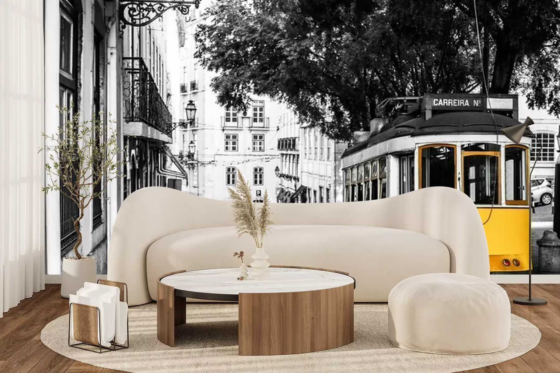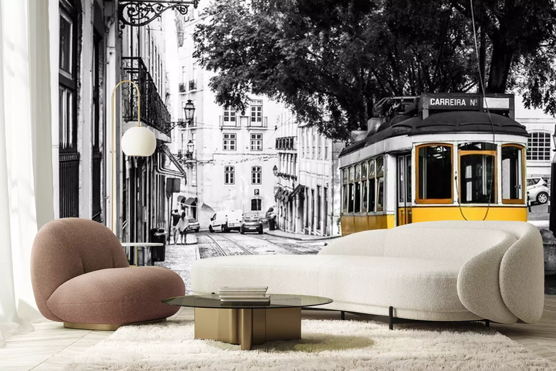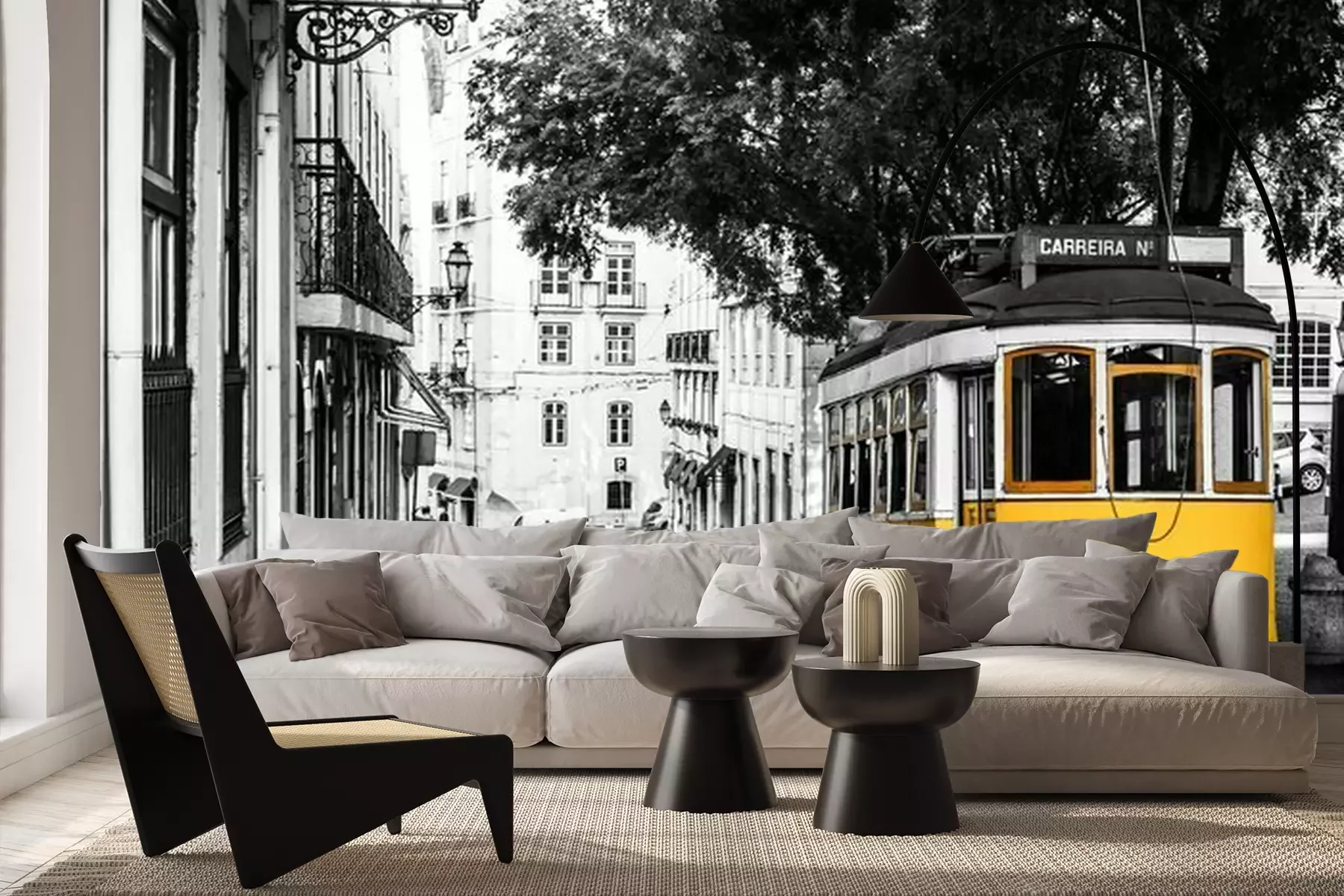 Schwarz-weißes Lissabon mit gelbem Akzent