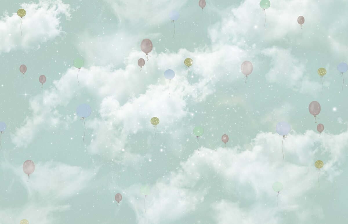 Fototapete: Luftballons vor dem Hintergrund von Wolken am Sternenhimmel
