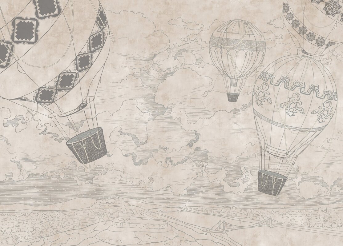 Fototapete: Luftballons vor einem beigen Landschaftshintergrund