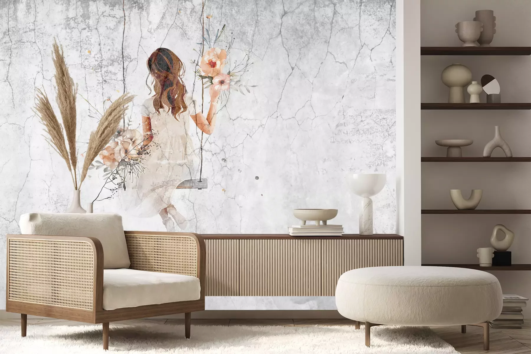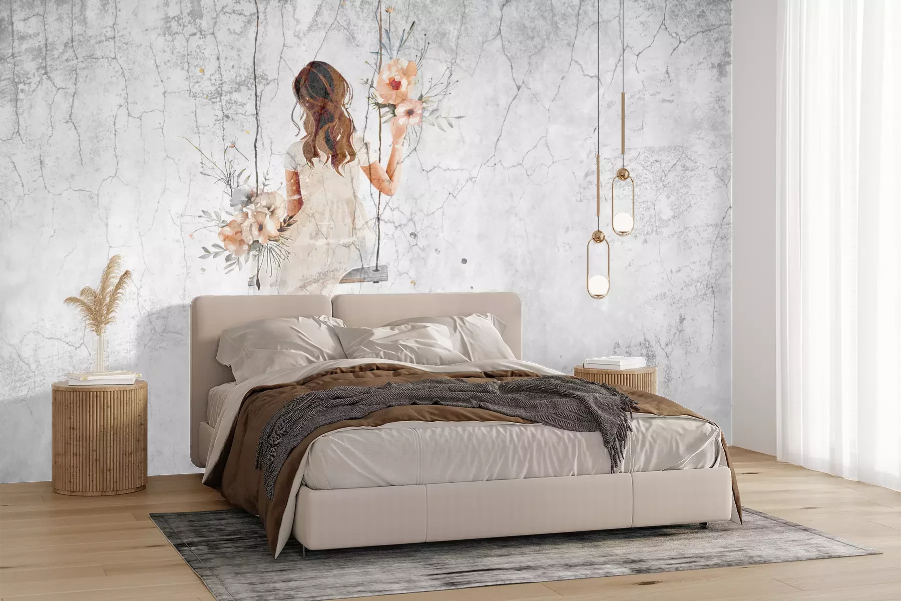 Das Material Premium+ besteht aus einer strukturierten Vinyl-Oberschicht und einem Trägermaterial (Vlies) mit einer Grammatur von 255 g/m², das kleine Unebenheiten der Wand zuverlässig kaschiert. Die feine Sandstruktur verleiht der Oberfläche eine luxuriöse Haptik, während das halbmatte Finish die Tiefe der Farben betont. Das Material ist dampfdurchlässig – so kann diese Fototapete auch in Küchen und Badezimmern eingesetzt werden. Die maximale Breite einer Tapetenbahn beträgt 100 cm. Bei größeren Abmessungen besteht die Fototapete aus mehreren gleich großen Bahnen. Der Kleber wird direkt auf die Wand aufgetragen, und die Fototapete wird auf Stoß angebracht, was für einen ästhetischen Effekt ohne sichtbare Fugen sorgt. Die Oberfläche ist pflegeleicht und kann bei Bedarf sanft mit einem feuchten Tuch abgewischt werden.