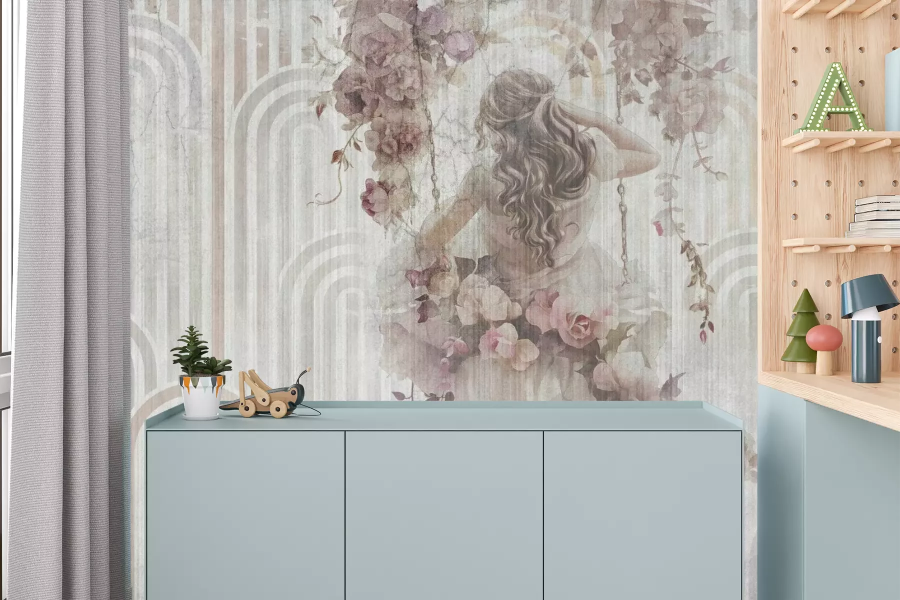 Das Material Premium+ besteht aus einer strukturierten Vinyl-Oberschicht und einem Trägermaterial (Vlies) mit einer Grammatur von 255 g/m², das kleine Unebenheiten der Wand zuverlässig kaschiert. Die feine Sandstruktur verleiht der Oberfläche eine luxuriöse Haptik, während das halbmatte Finish die Tiefe der Farben betont. Das Material ist dampfdurchlässig – so kann diese Fototapete auch in Küchen und Badezimmern eingesetzt werden. Die maximale Breite einer Tapetenbahn beträgt 100 cm. Bei größeren Abmessungen besteht die Fototapete aus mehreren gleich großen Bahnen. Der Kleber wird direkt auf die Wand aufgetragen, und die Fototapete wird auf Stoß angebracht, was für einen ästhetischen Effekt ohne sichtbare Fugen sorgt. Die Oberfläche ist pflegeleicht und kann bei Bedarf sanft mit einem feuchten Tuch abgewischt werden.