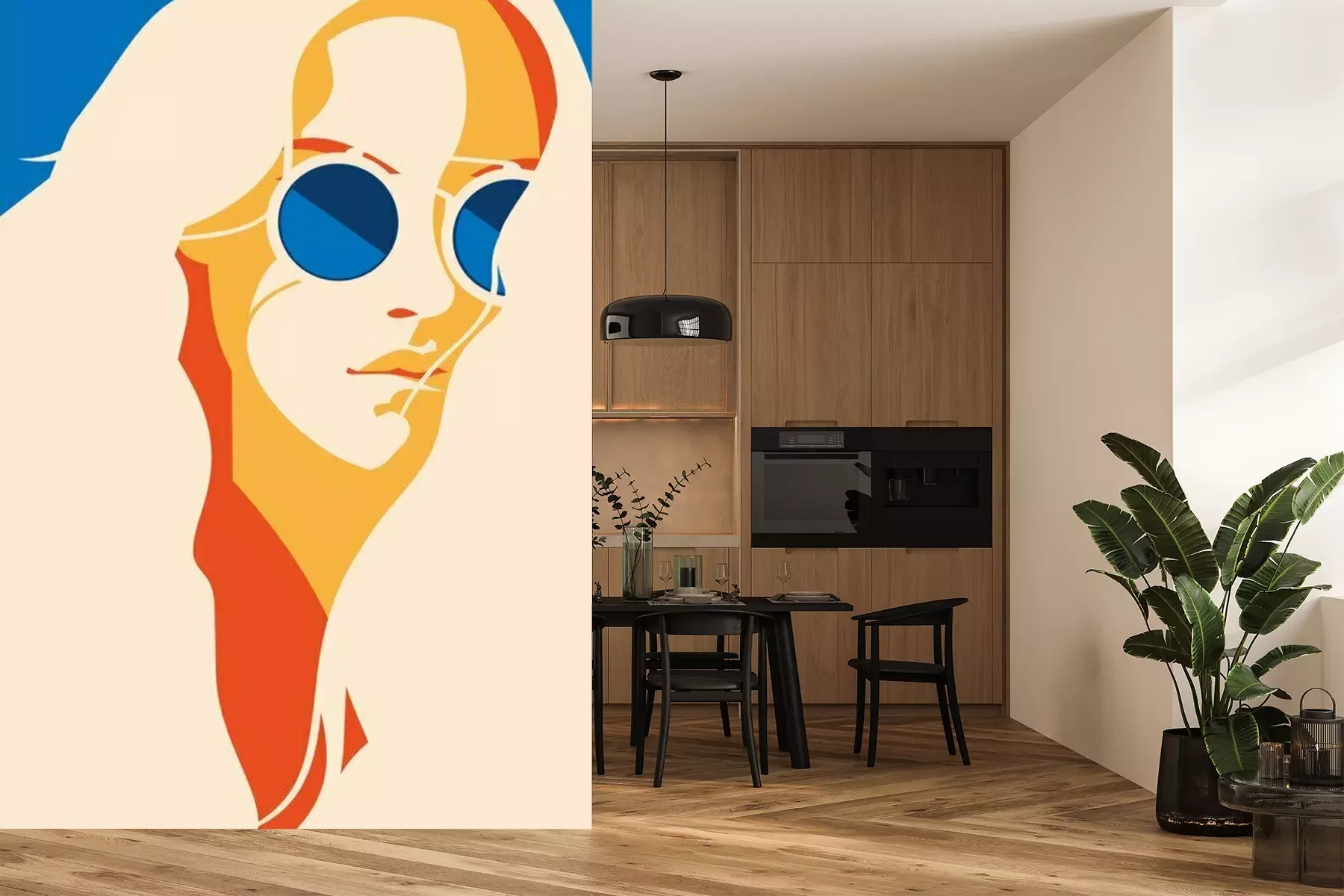 Das Material Premium+ besteht aus einer strukturierten Vinyl-Oberschicht und einem Trägermaterial (Vlies) mit einer Grammatur von 255 g/m², das kleine Unebenheiten der Wand zuverlässig kaschiert. Die feine Sandstruktur verleiht der Oberfläche eine luxuriöse Haptik, während das halbmatte Finish die Tiefe der Farben betont. Das Material ist dampfdurchlässig – so kann diese Fototapete auch in Küchen und Badezimmern eingesetzt werden. Die maximale Breite einer Tapetenbahn beträgt 100 cm. Bei größeren Abmessungen besteht die Fototapete aus mehreren gleich großen Bahnen. Der Kleber wird direkt auf die Wand aufgetragen, und die Fototapete wird auf Stoß angebracht, was für einen ästhetischen Effekt ohne sichtbare Fugen sorgt. Die Oberfläche ist pflegeleicht und kann bei Bedarf sanft mit einem feuchten Tuch abgewischt werden.