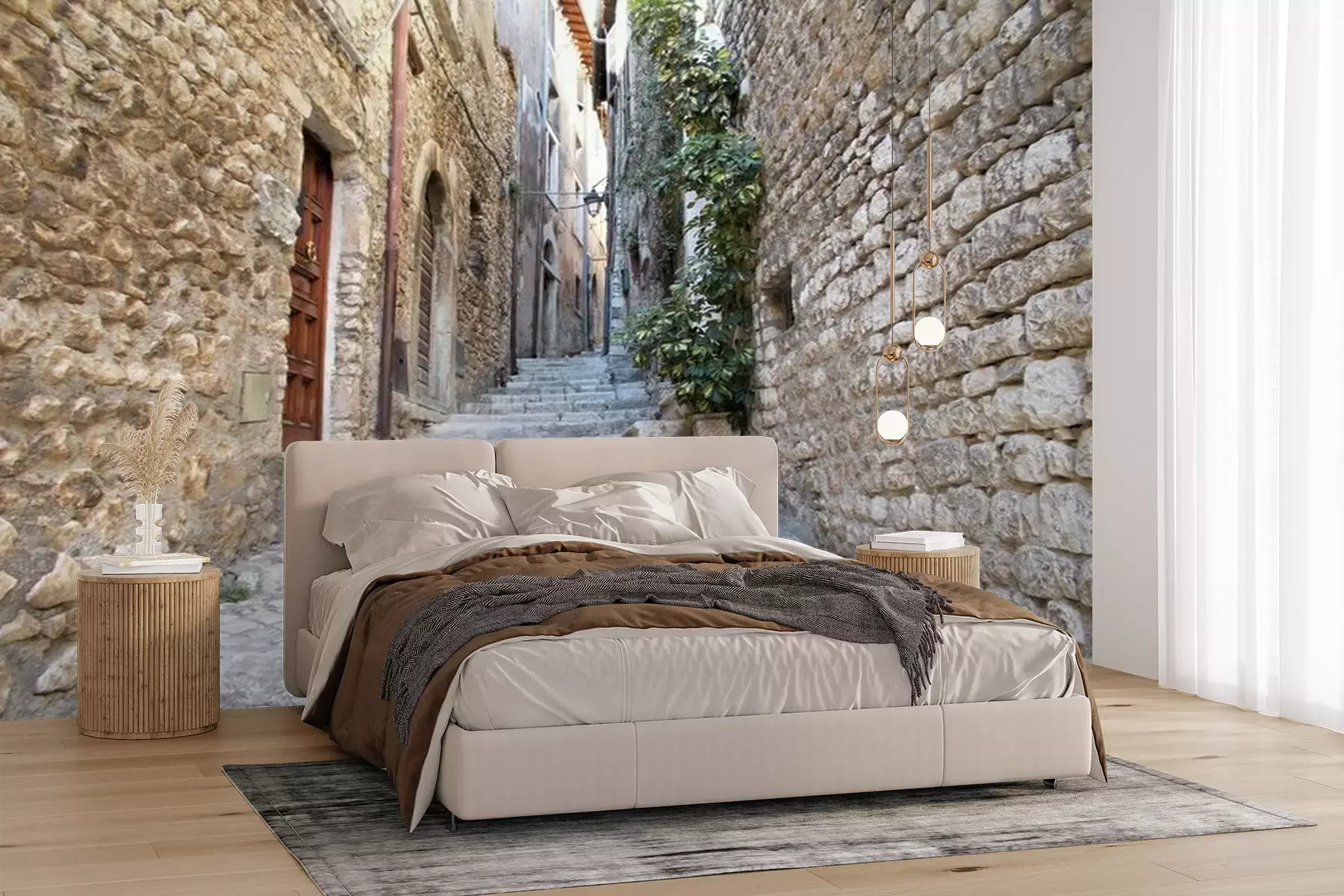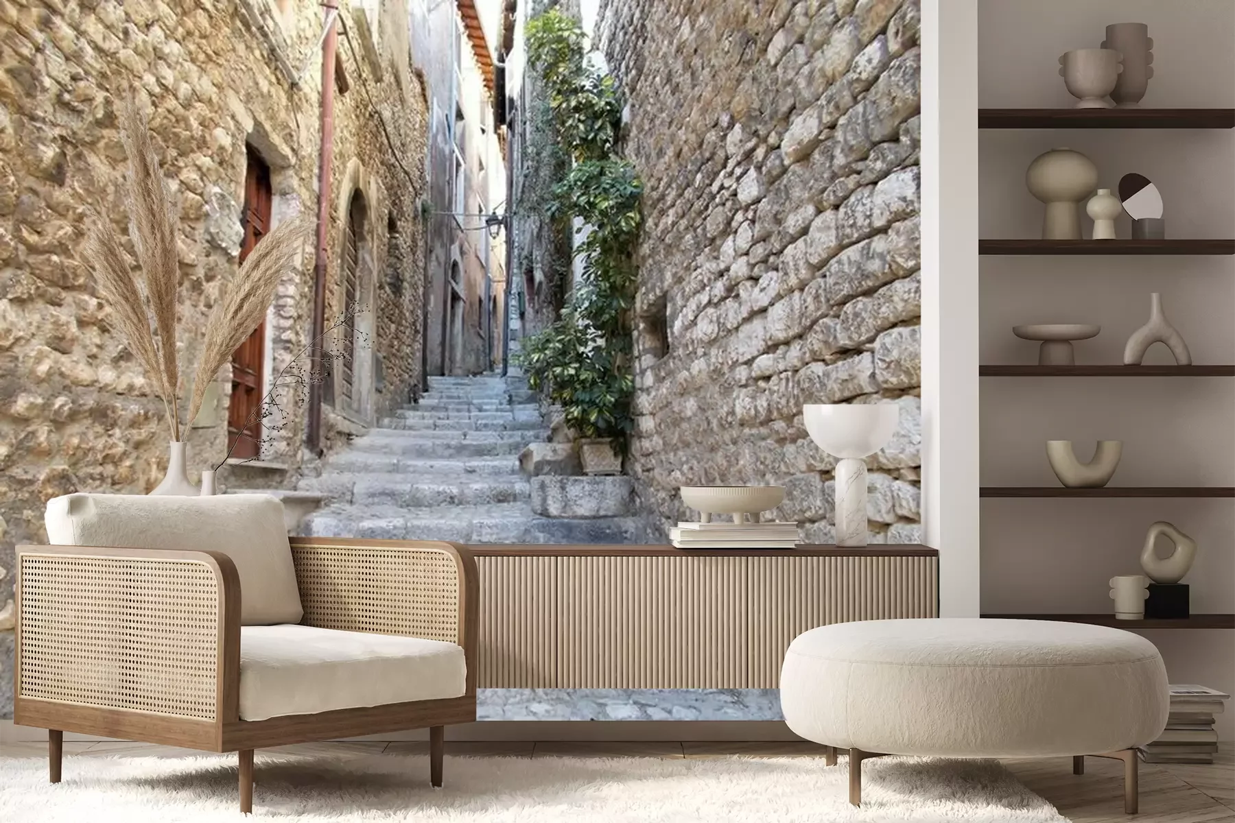 Das Material Premium+ besteht aus einer strukturierten Vinyl-Oberschicht und einem Trägermaterial (Vlies) mit einer Grammatur von 255 g/m², das kleine Unebenheiten der Wand zuverlässig kaschiert. Die feine Sandstruktur verleiht der Oberfläche eine luxuriöse Haptik, während das halbmatte Finish die Tiefe der Farben betont. Das Material ist dampfdurchlässig – so kann diese Fototapete auch in Küchen und Badezimmern eingesetzt werden. Die maximale Breite einer Tapetenbahn beträgt 100 cm. Bei größeren Abmessungen besteht die Fototapete aus mehreren gleich großen Bahnen. Der Kleber wird direkt auf die Wand aufgetragen, und die Fototapete wird auf Stoß angebracht, was für einen ästhetischen Effekt ohne sichtbare Fugen sorgt. Die Oberfläche ist pflegeleicht und kann bei Bedarf sanft mit einem feuchten Tuch abgewischt werden.
