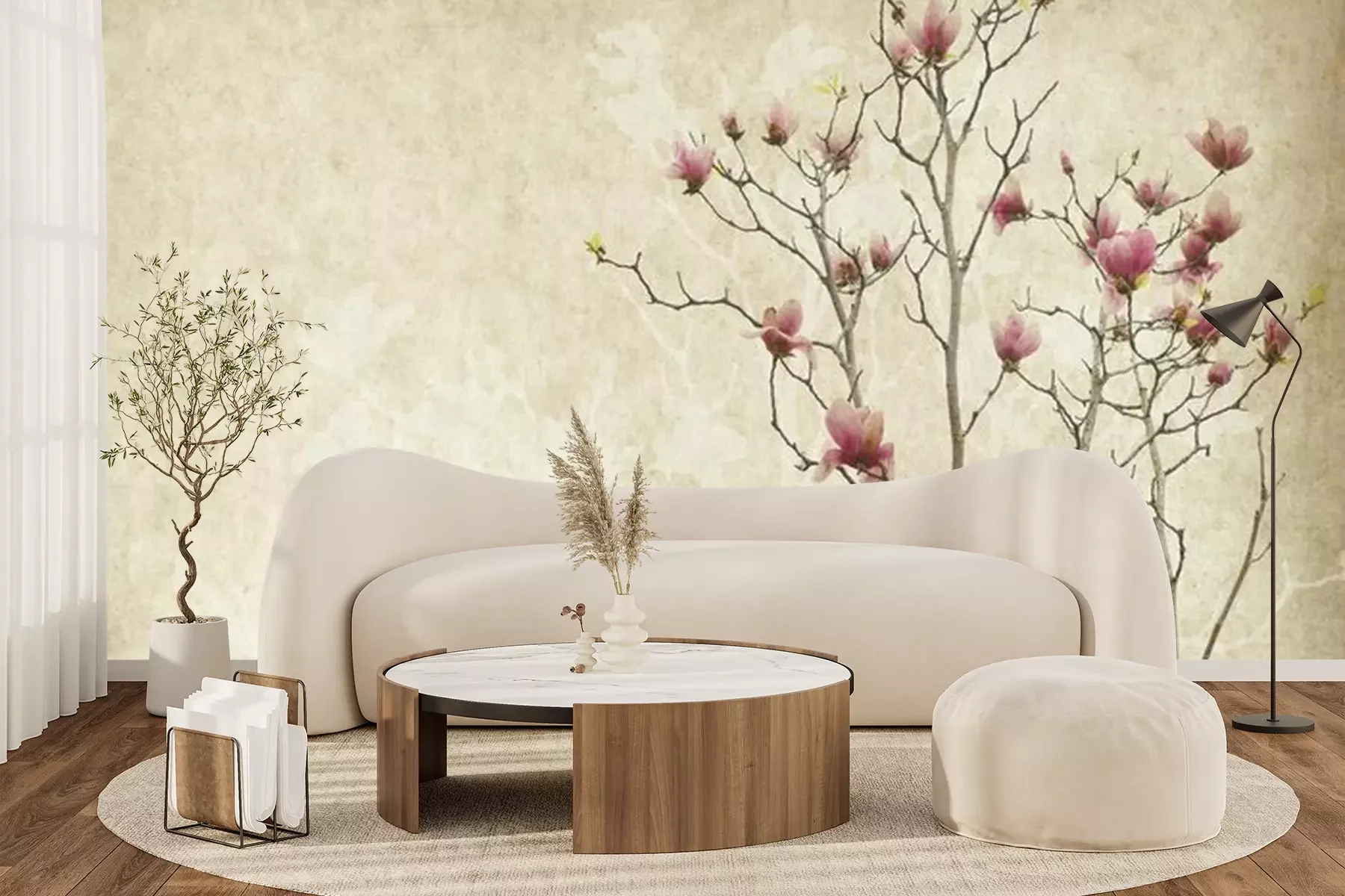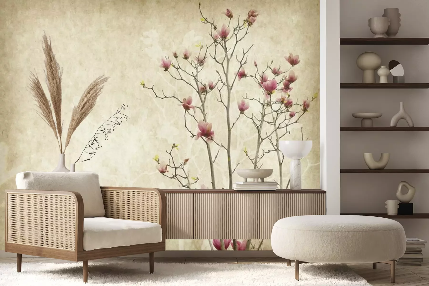 Fototapete Magnolie auf einem gealterten Hintergrund