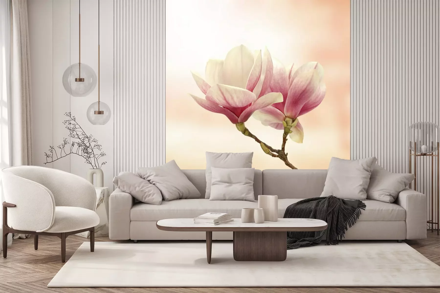 Das Material Standard ist ein hochwertiges Latexmaterial mit einer glatten, matten Oberfläche. Durch den Einsatz von HP-Latex-Drucktechnologie sind die Farben satt, langlebig und UV-beständig. So bleibt das Muster über Jahre hinweg makellos schön. Die verschmutzte Oberfläche dieses Materials kann sanft mit einem trockenen Tuch abgewischt werden. Die maximale Breite einer einzelnen Bahn beträgt 95 cm oder 105 cm – je nach Breite der bestellten Fototapete. Bei Fototapeten mit größeren Abmessungen besteht der Ausdruck aus mehreren gleich großen Tapetenbahnen. Die Fototapete wird auf Stoß angebracht, wodurch die Fugen nahezu unsichtbar sind.