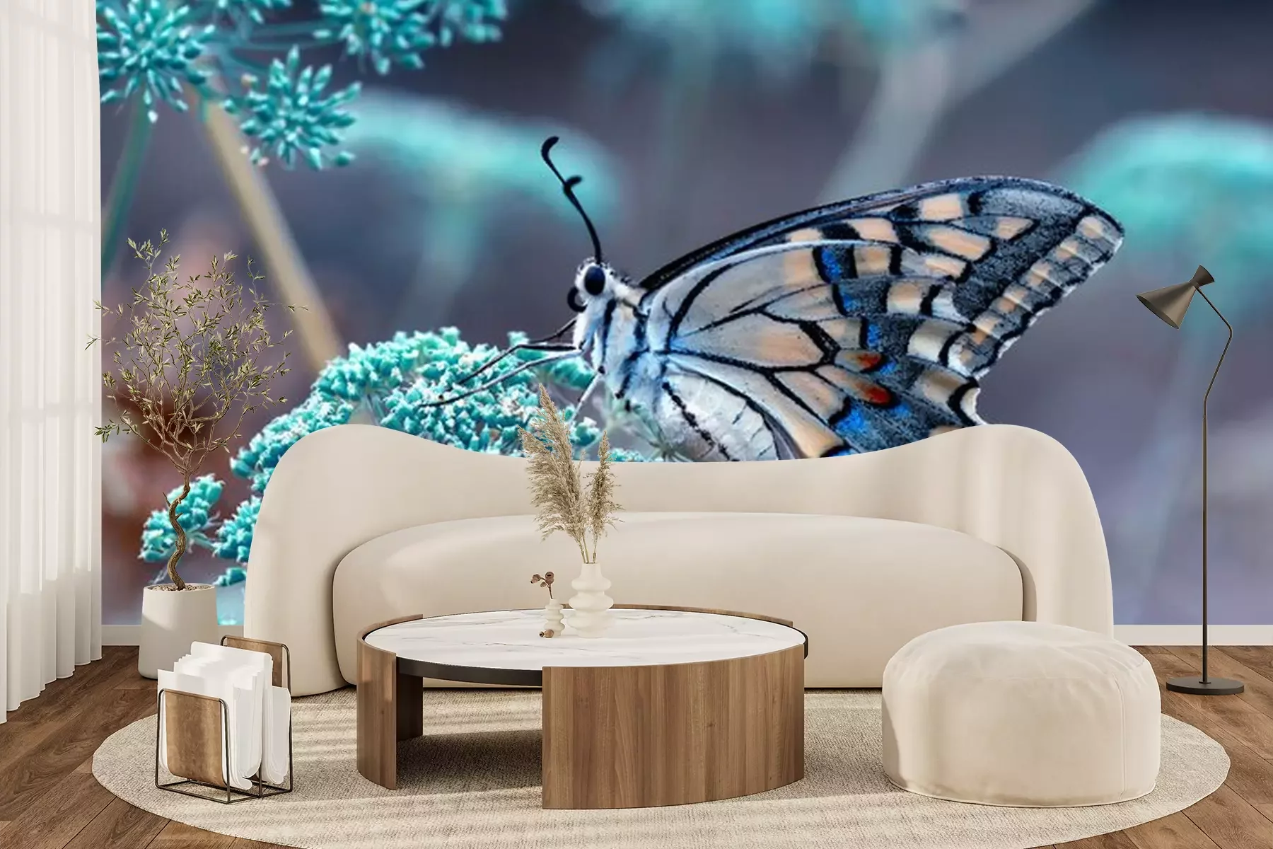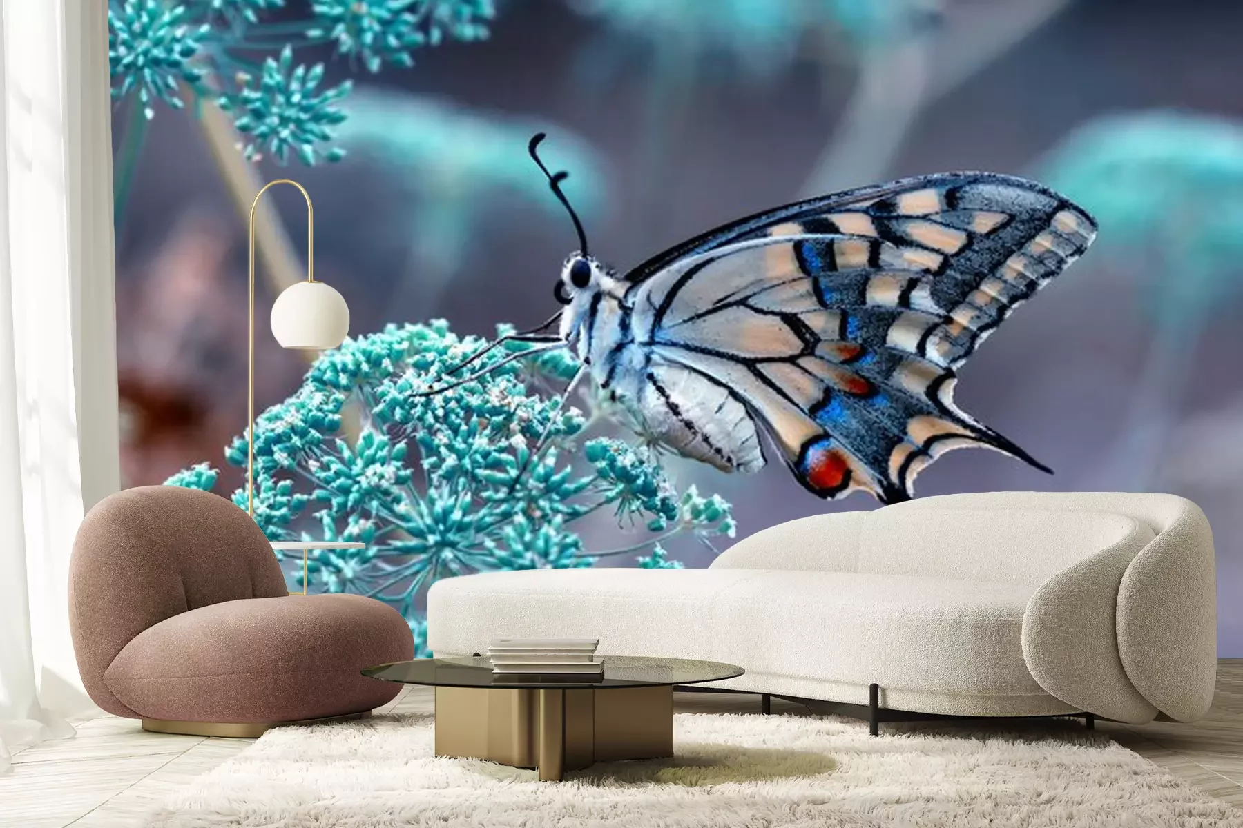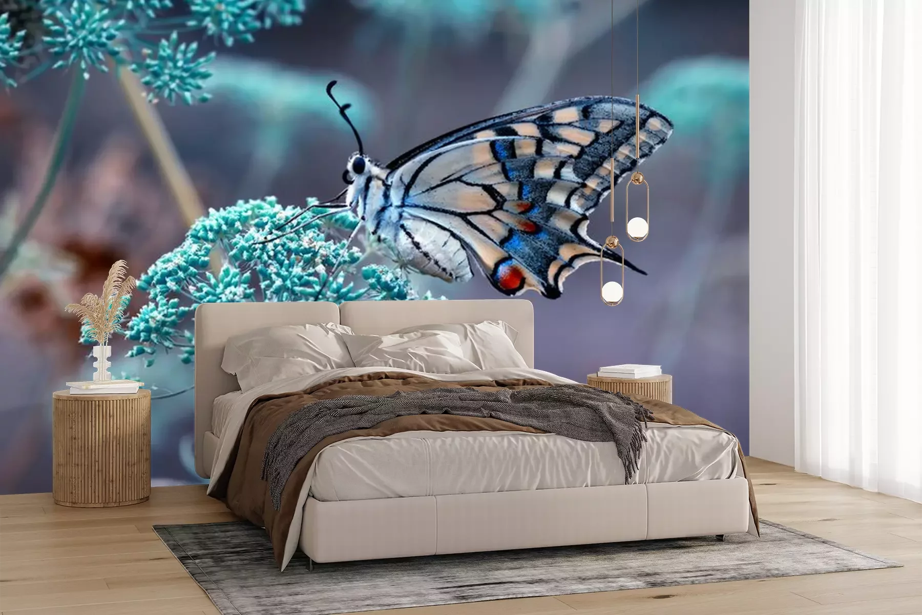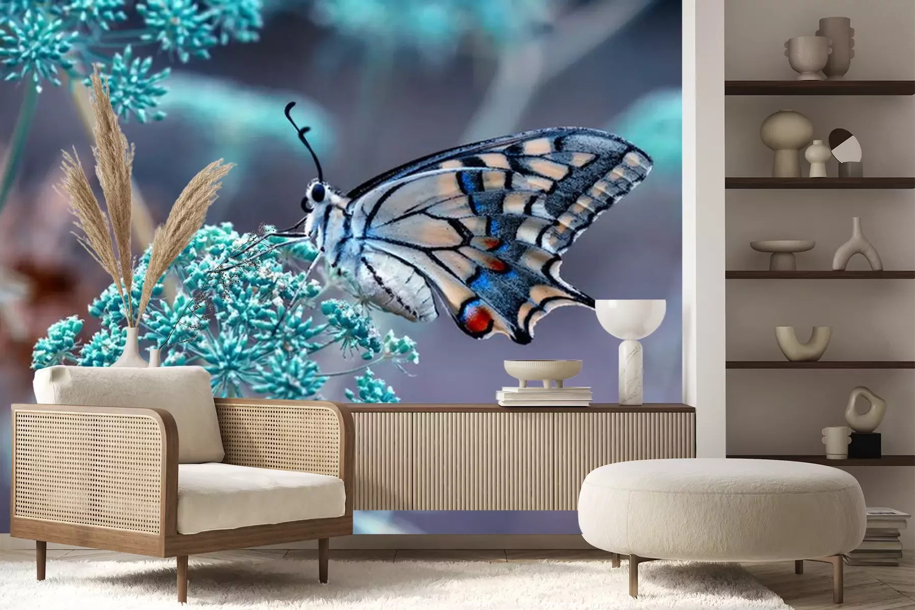 Fototapete Makrofoto eines phänomenalen Schmetterlings auf einer Blume