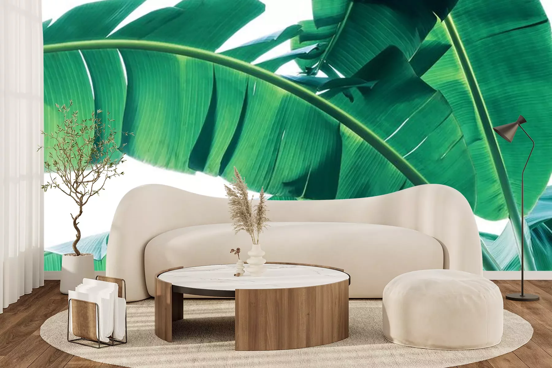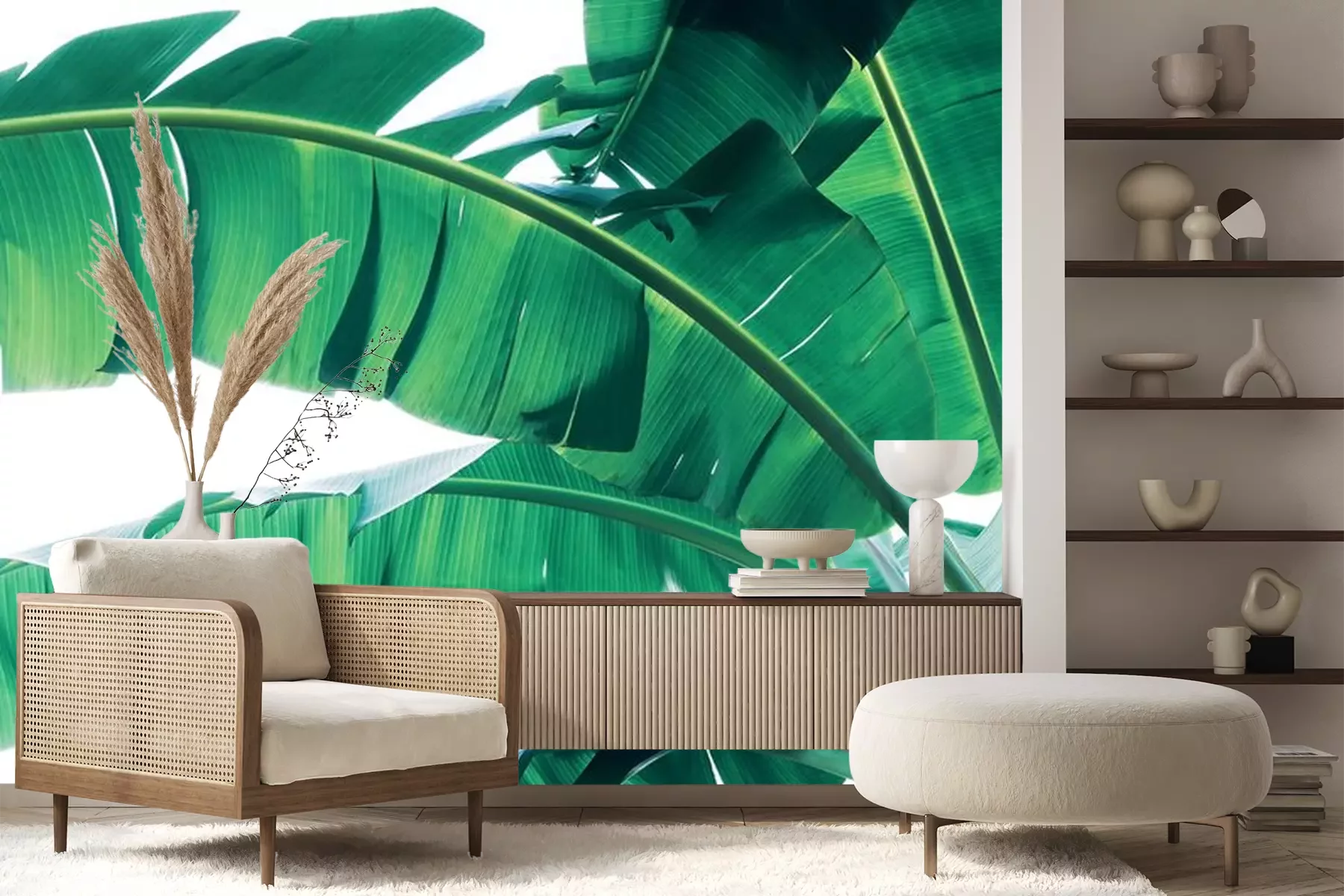 Fototapete Makrofotografie von grünen Bananenpalmenblättern