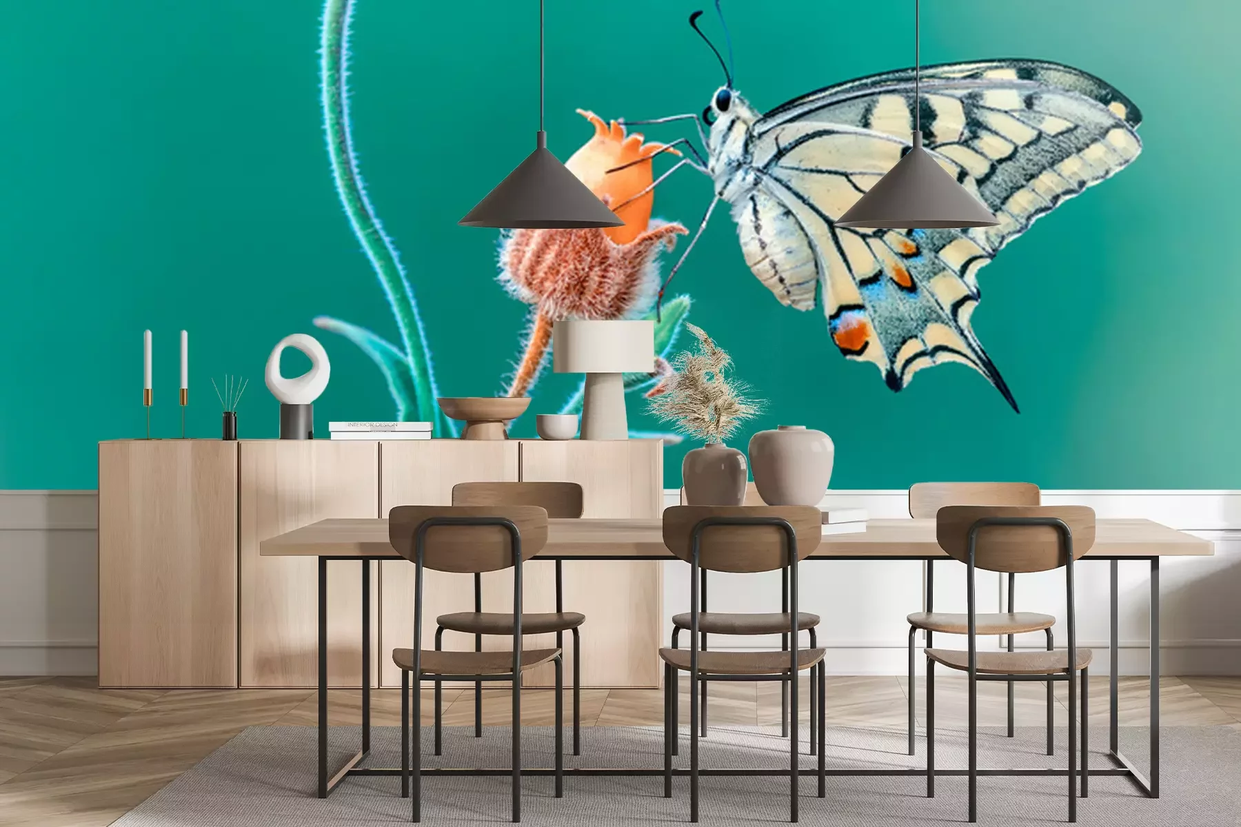 Fototapete Makrofotos eines schönen Schmetterlings, der auf einer Blume sitzt