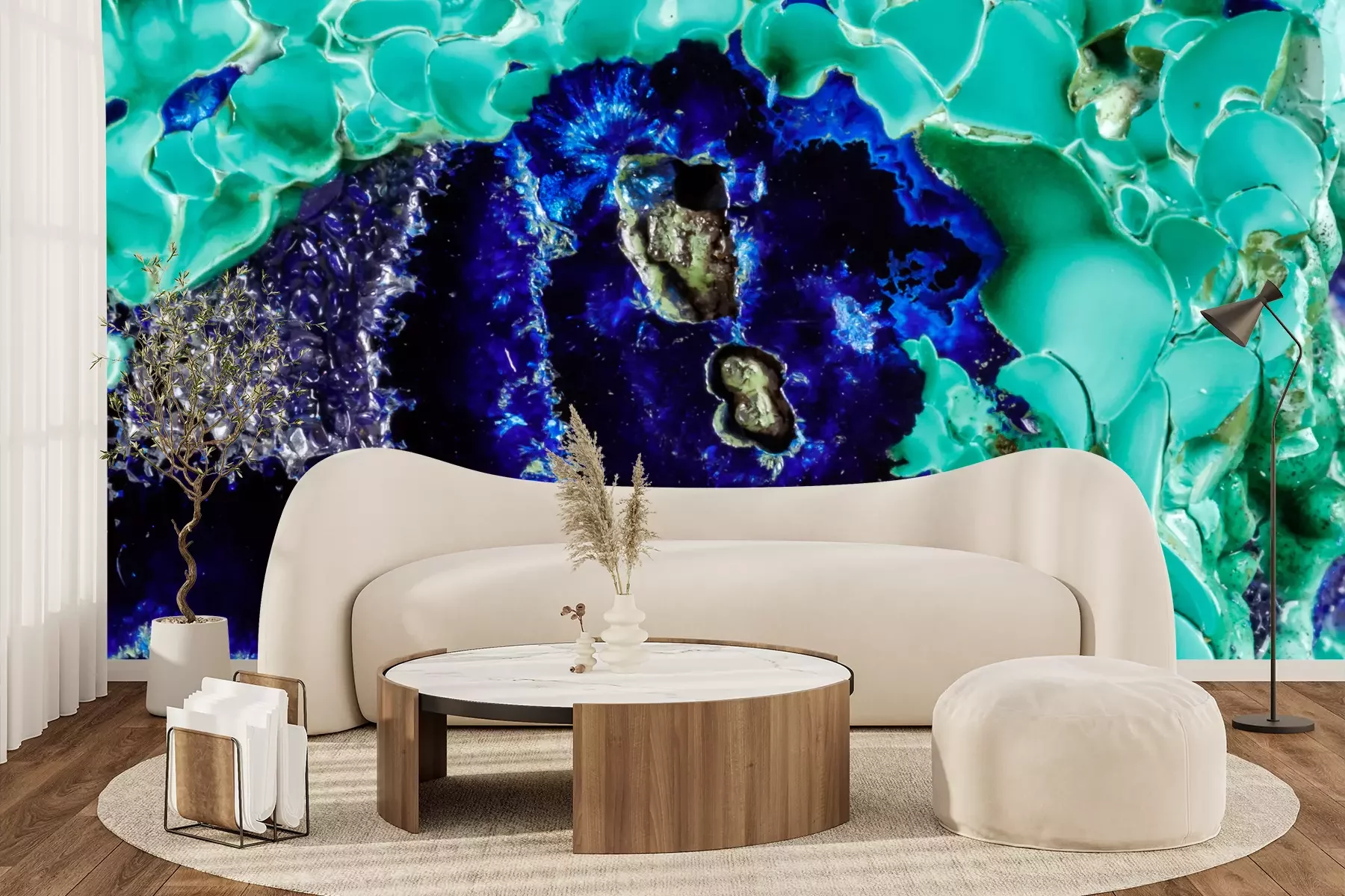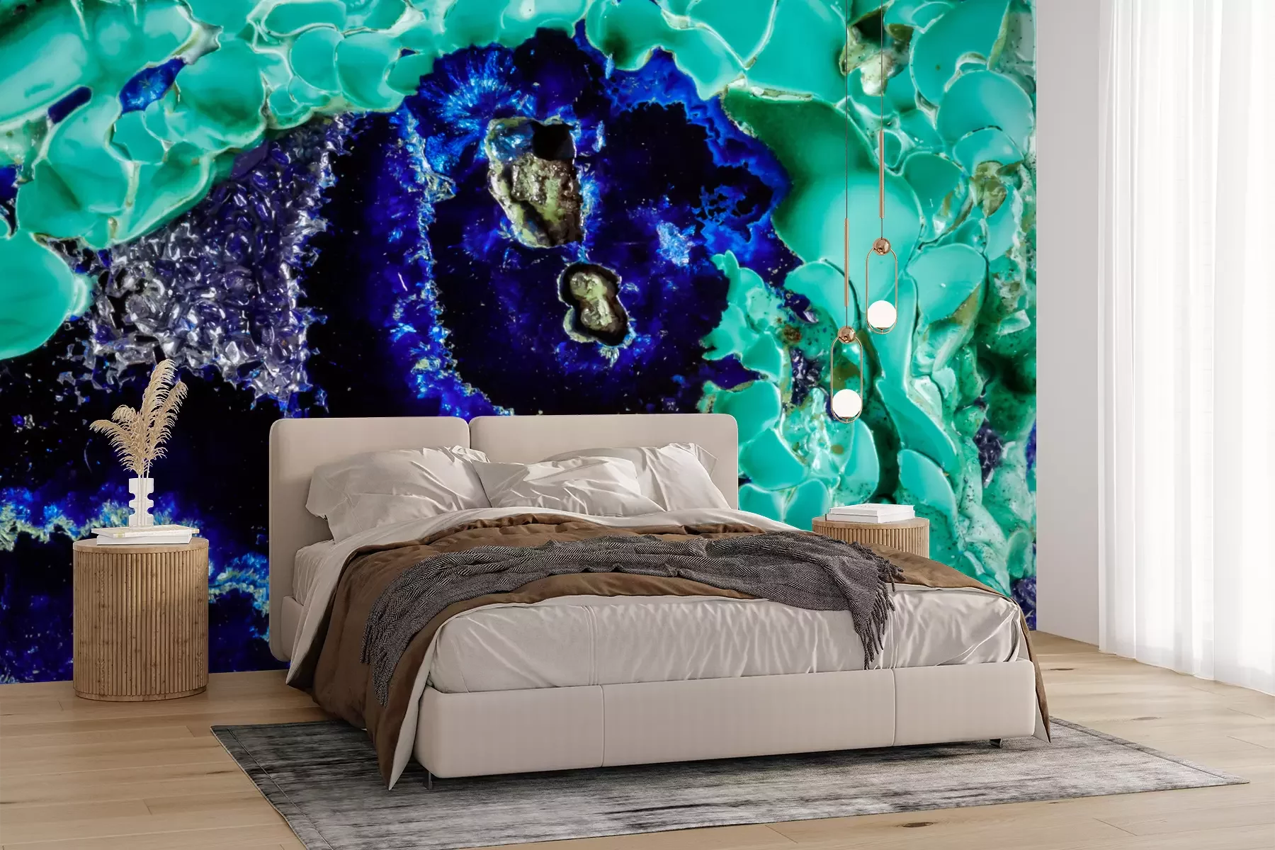 Das Material Premium+ besteht aus einer strukturierten Vinyl-Oberschicht und einem Trägermaterial (Vlies) mit einer Grammatur von 255 g/m², das kleine Unebenheiten der Wand zuverlässig kaschiert. Die feine Sandstruktur verleiht der Oberfläche eine luxuriöse Haptik, während das halbmatte Finish die Tiefe der Farben betont. Das Material ist dampfdurchlässig – so kann diese Fototapete auch in Küchen und Badezimmern eingesetzt werden. Die maximale Breite einer Tapetenbahn beträgt 100 cm. Bei größeren Abmessungen besteht die Fototapete aus mehreren gleich großen Bahnen. Der Kleber wird direkt auf die Wand aufgetragen, und die Fototapete wird auf Stoß angebracht, was für einen ästhetischen Effekt ohne sichtbare Fugen sorgt. Die Oberfläche ist pflegeleicht und kann bei Bedarf sanft mit einem feuchten Tuch abgewischt werden.