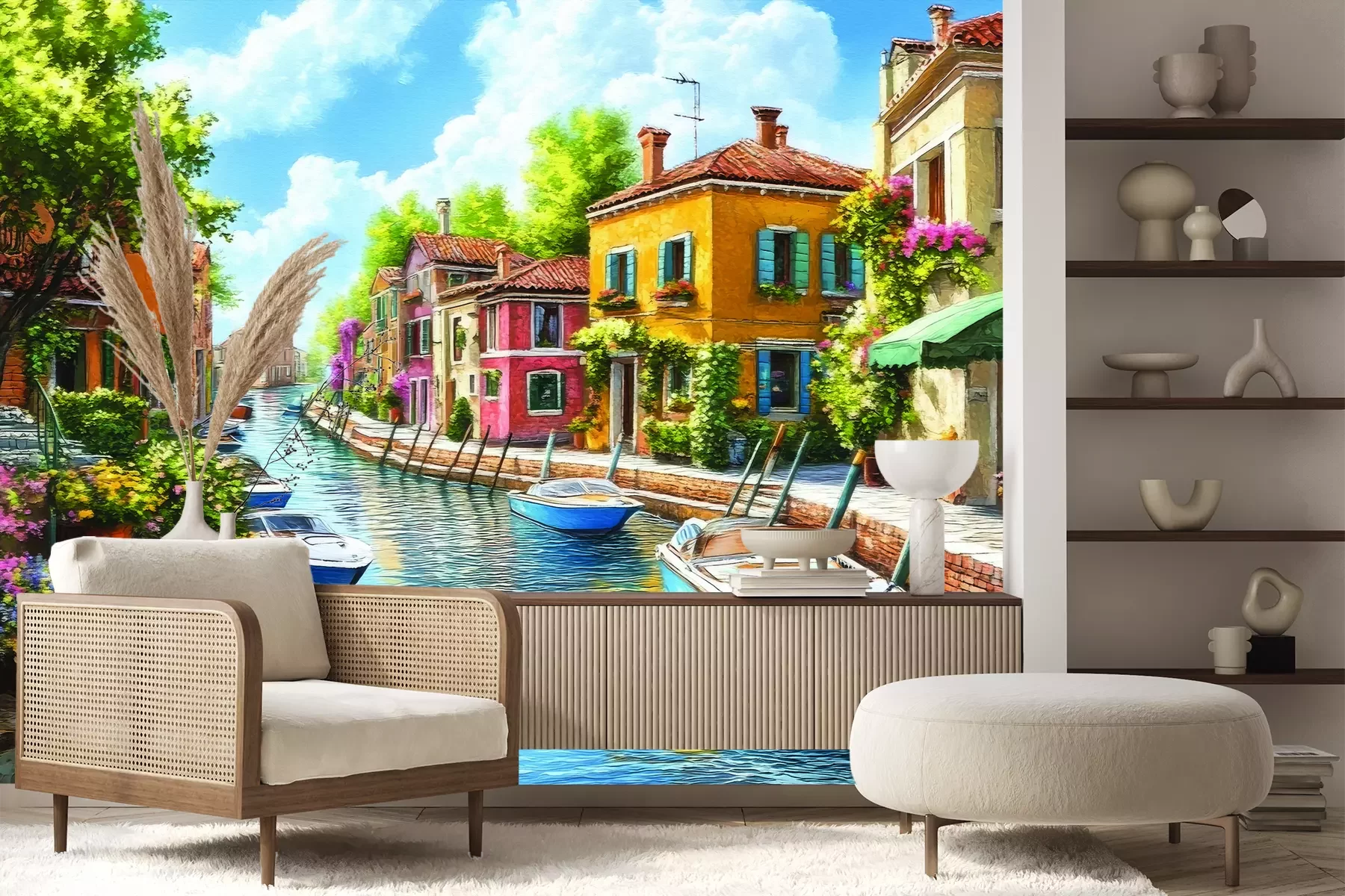 Das Material Premium+ besteht aus einer strukturierten Vinyl-Oberschicht und einem Trägermaterial (Vlies) mit einer Grammatur von 255 g/m², das kleine Unebenheiten der Wand zuverlässig kaschiert. Die feine Sandstruktur verleiht der Oberfläche eine luxuriöse Haptik, während das halbmatte Finish die Tiefe der Farben betont. Das Material ist dampfdurchlässig – so kann diese Fototapete auch in Küchen und Badezimmern eingesetzt werden. Die maximale Breite einer Tapetenbahn beträgt 100 cm. Bei größeren Abmessungen besteht die Fototapete aus mehreren gleich großen Bahnen. Der Kleber wird direkt auf die Wand aufgetragen, und die Fototapete wird auf Stoß angebracht, was für einen ästhetischen Effekt ohne sichtbare Fugen sorgt. Die Oberfläche ist pflegeleicht und kann bei Bedarf sanft mit einem feuchten Tuch abgewischt werden.