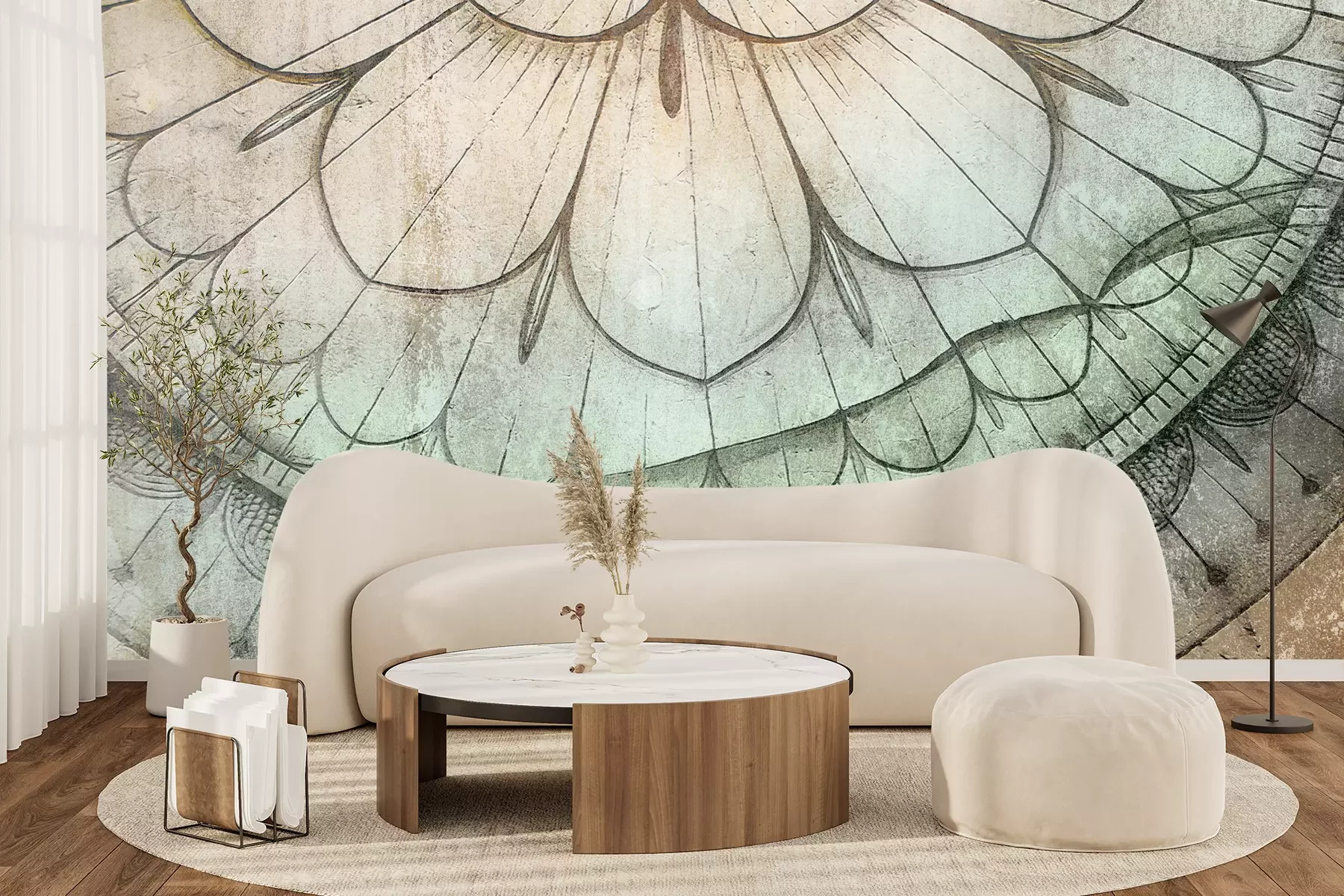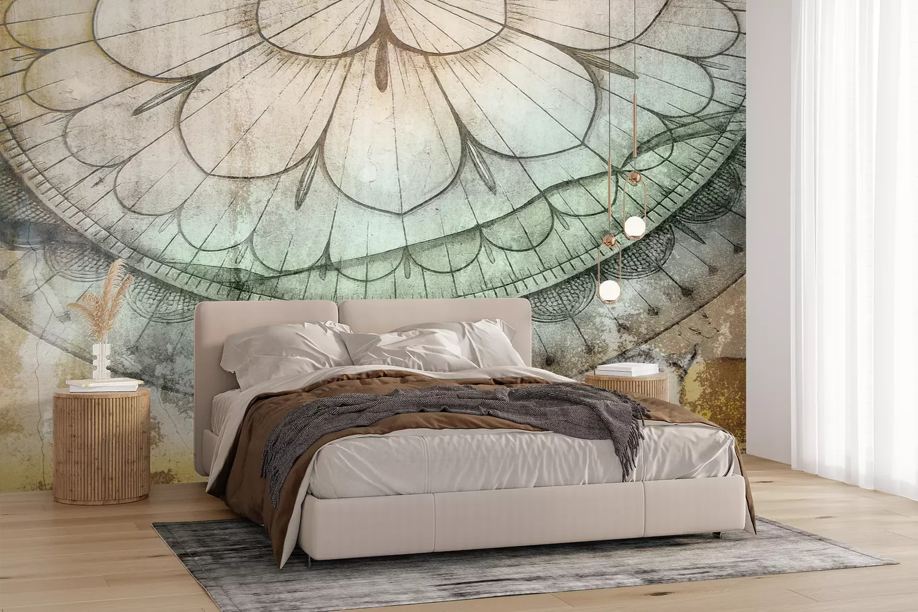 Das Material Premium+ besteht aus einer strukturierten Vinyl-Oberschicht und einem Trägermaterial (Vlies) mit einer Grammatur von 255 g/m², das kleine Unebenheiten der Wand zuverlässig kaschiert. Die feine Sandstruktur verleiht der Oberfläche eine luxuriöse Haptik, während das halbmatte Finish die Tiefe der Farben betont. Das Material ist dampfdurchlässig – so kann diese Fototapete auch in Küchen und Badezimmern eingesetzt werden. Die maximale Breite einer Tapetenbahn beträgt 100 cm. Bei größeren Abmessungen besteht die Fototapete aus mehreren gleich großen Bahnen. Der Kleber wird direkt auf die Wand aufgetragen, und die Fototapete wird auf Stoß angebracht, was für einen ästhetischen Effekt ohne sichtbare Fugen sorgt. Die Oberfläche ist pflegeleicht und kann bei Bedarf sanft mit einem feuchten Tuch abgewischt werden.