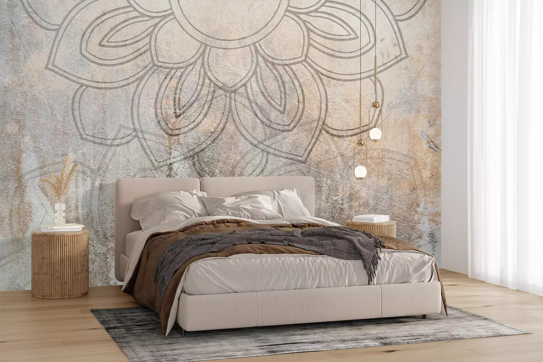 Das Material Standard ist ein hochwertiges Latexmaterial mit einer glatten, matten Oberfläche. Durch den Einsatz von HP-Latex-Drucktechnologie sind die Farben satt, langlebig und UV-beständig. So bleibt das Muster über Jahre hinweg makellos schön. Die verschmutzte Oberfläche dieses Materials kann sanft mit einem trockenen Tuch abgewischt werden. Die maximale Breite einer einzelnen Bahn beträgt 95 cm oder 105 cm – je nach Breite der bestellten Fototapete. Bei Fototapeten mit größeren Abmessungen besteht der Ausdruck aus mehreren gleich großen Tapetenbahnen. Die Fototapete wird auf Stoß angebracht, wodurch die Fugen nahezu unsichtbar sind.