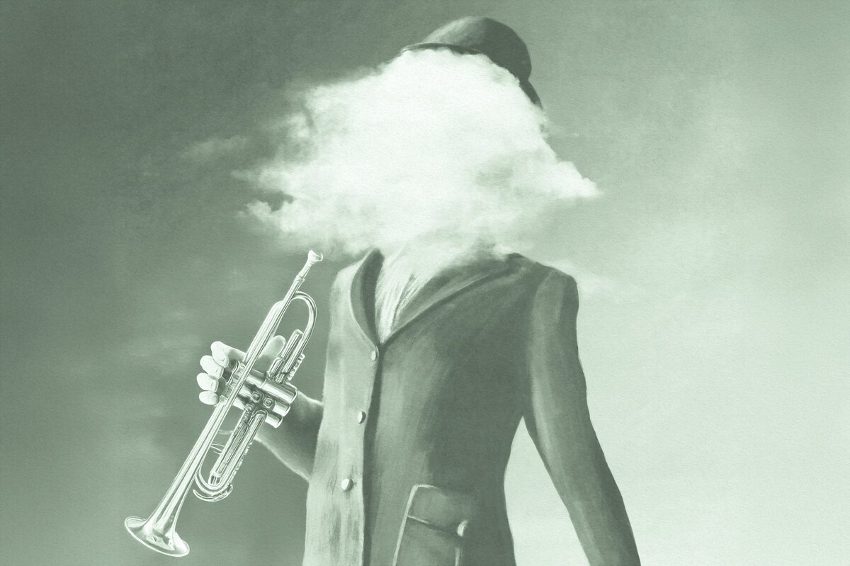 Fototapete: Mann mit verschwommenem Gesicht und Trompete