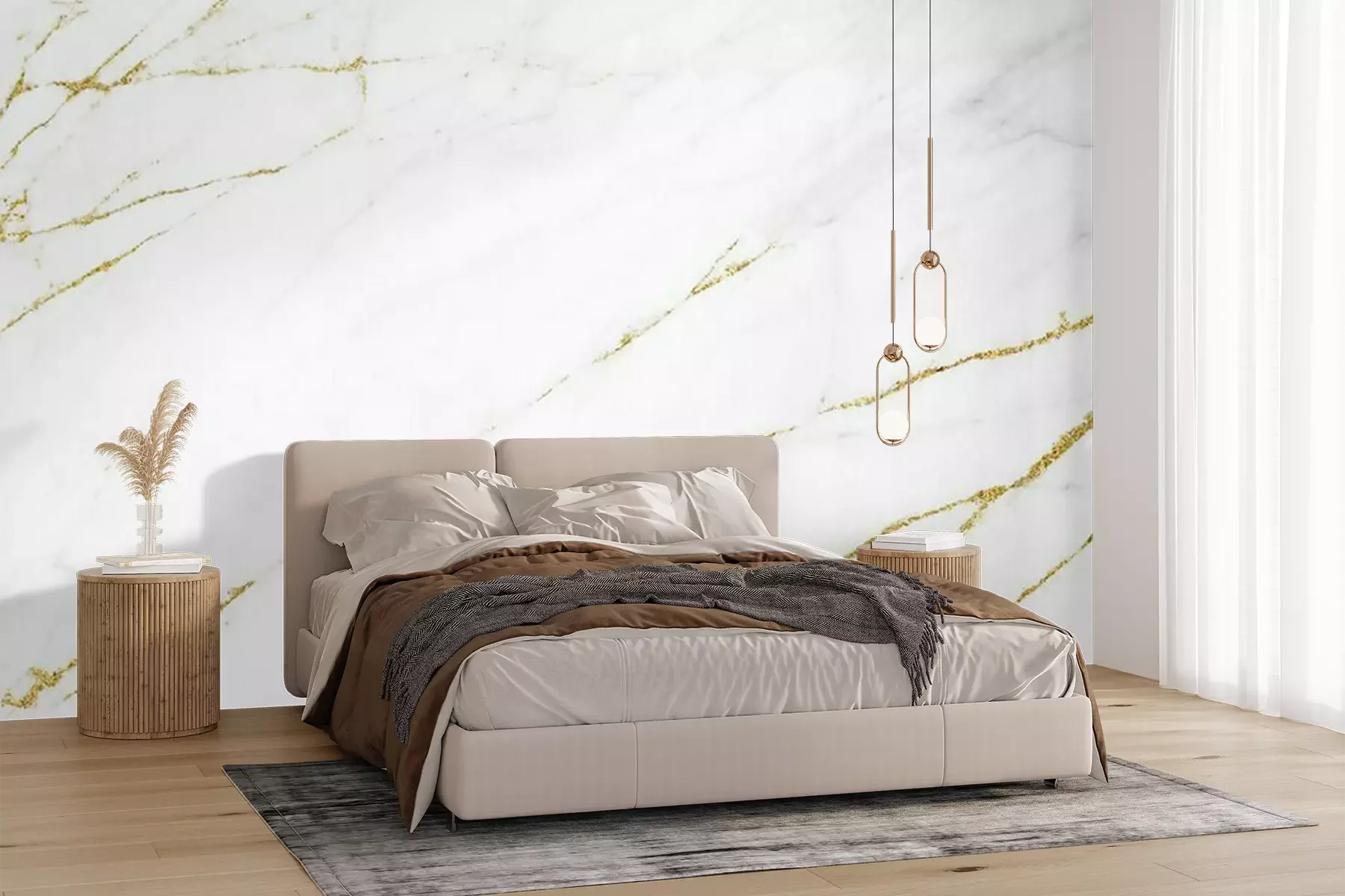 Das Material Premium+ besteht aus einer strukturierten Vinyl-Oberschicht und einem Trägermaterial (Vlies) mit einer Grammatur von 255 g/m², das kleine Unebenheiten der Wand zuverlässig kaschiert. Die feine Sandstruktur verleiht der Oberfläche eine luxuriöse Haptik, während das halbmatte Finish die Tiefe der Farben betont. Das Material ist dampfdurchlässig – so kann diese Fototapete auch in Küchen und Badezimmern eingesetzt werden. Die maximale Breite einer Tapetenbahn beträgt 100 cm. Bei größeren Abmessungen besteht die Fototapete aus mehreren gleich großen Bahnen. Der Kleber wird direkt auf die Wand aufgetragen, und die Fototapete wird auf Stoß angebracht, was für einen ästhetischen Effekt ohne sichtbare Fugen sorgt. Die Oberfläche ist pflegeleicht und kann bei Bedarf sanft mit einem feuchten Tuch abgewischt werden.