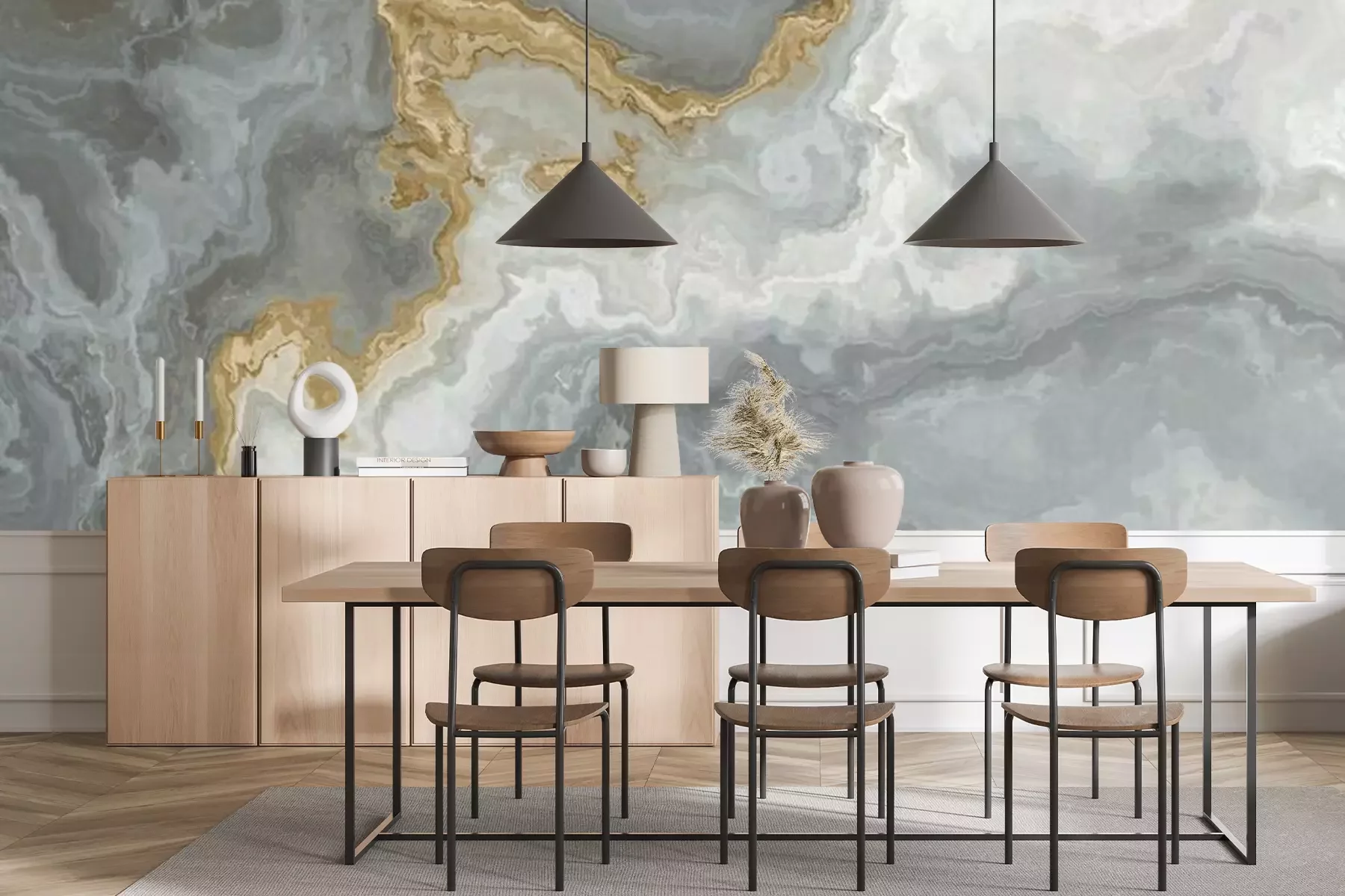 Das Material Premium+ besteht aus einer strukturierten Vinyl-Oberschicht und einem Trägermaterial (Vlies) mit einer Grammatur von 255 g/m², das kleine Unebenheiten der Wand zuverlässig kaschiert. Die feine Sandstruktur verleiht der Oberfläche eine luxuriöse Haptik, während das halbmatte Finish die Tiefe der Farben betont. Das Material ist dampfdurchlässig – so kann diese Fototapete auch in Küchen und Badezimmern eingesetzt werden. Die maximale Breite einer Tapetenbahn beträgt 100 cm. Bei größeren Abmessungen besteht die Fototapete aus mehreren gleich großen Bahnen. Der Kleber wird direkt auf die Wand aufgetragen, und die Fototapete wird auf Stoß angebracht, was für einen ästhetischen Effekt ohne sichtbare Fugen sorgt. Die Oberfläche ist pflegeleicht und kann bei Bedarf sanft mit einem feuchten Tuch abgewischt werden.
