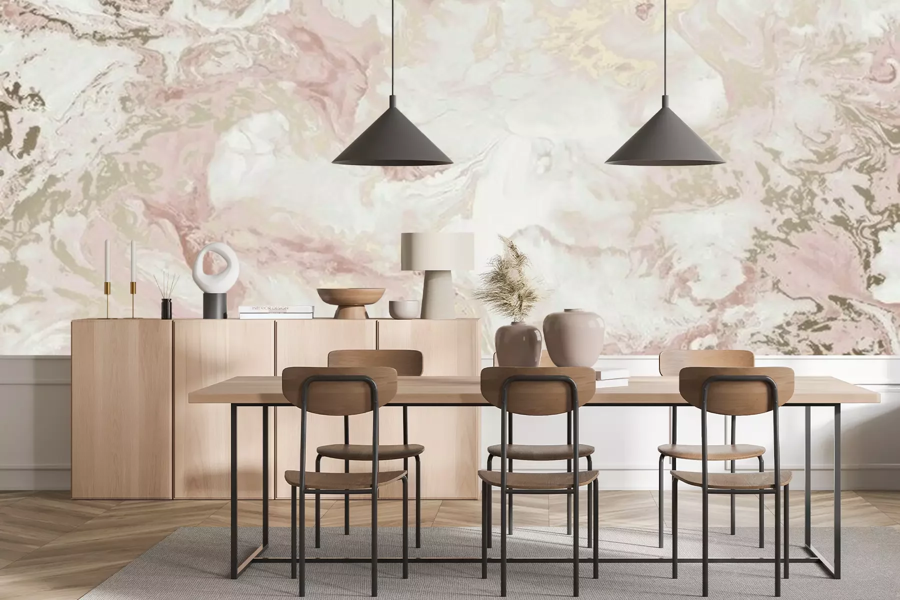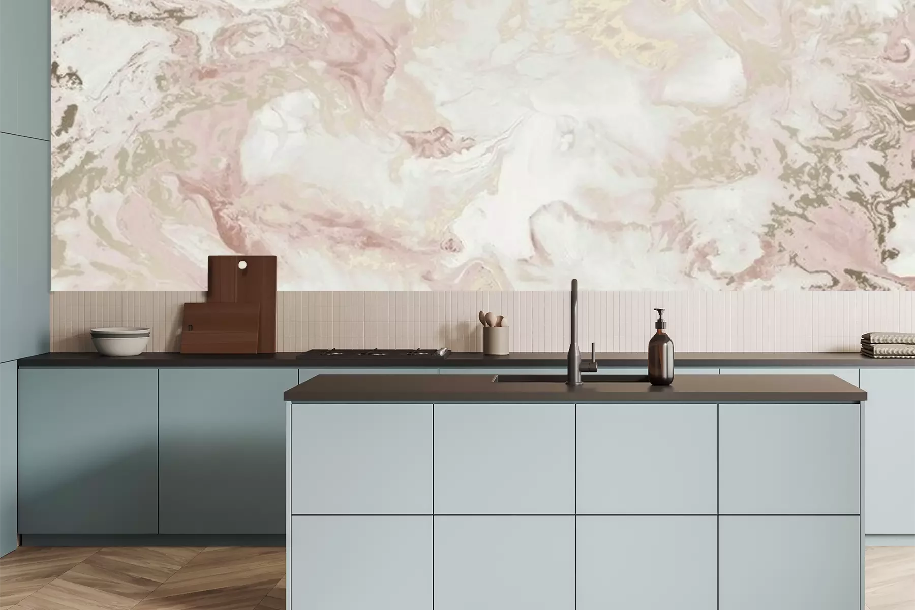Das Material Premium+ besteht aus einer strukturierten Vinyl-Oberschicht und einem Trägermaterial (Vlies) mit einer Grammatur von 255 g/m², das kleine Unebenheiten der Wand zuverlässig kaschiert. Die feine Sandstruktur verleiht der Oberfläche eine luxuriöse Haptik, während das halbmatte Finish die Tiefe der Farben betont. Das Material ist dampfdurchlässig – so kann diese Fototapete auch in Küchen und Badezimmern eingesetzt werden. Die maximale Breite einer Tapetenbahn beträgt 100 cm. Bei größeren Abmessungen besteht die Fototapete aus mehreren gleich großen Bahnen. Der Kleber wird direkt auf die Wand aufgetragen, und die Fototapete wird auf Stoß angebracht, was für einen ästhetischen Effekt ohne sichtbare Fugen sorgt. Die Oberfläche ist pflegeleicht und kann bei Bedarf sanft mit einem feuchten Tuch abgewischt werden.