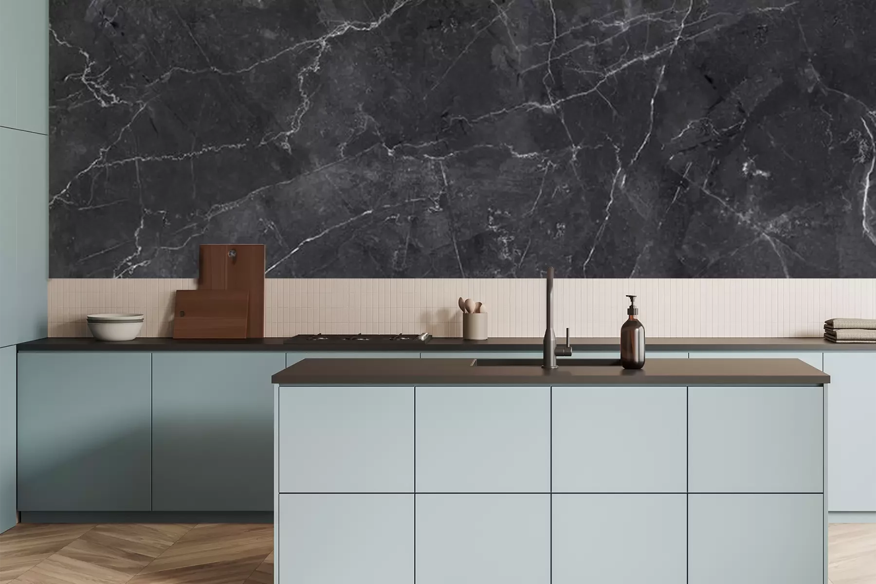 Super schöne Küchentapete, genau nach Maß, passt perfekt.