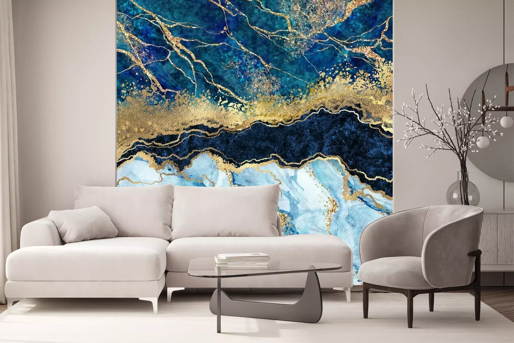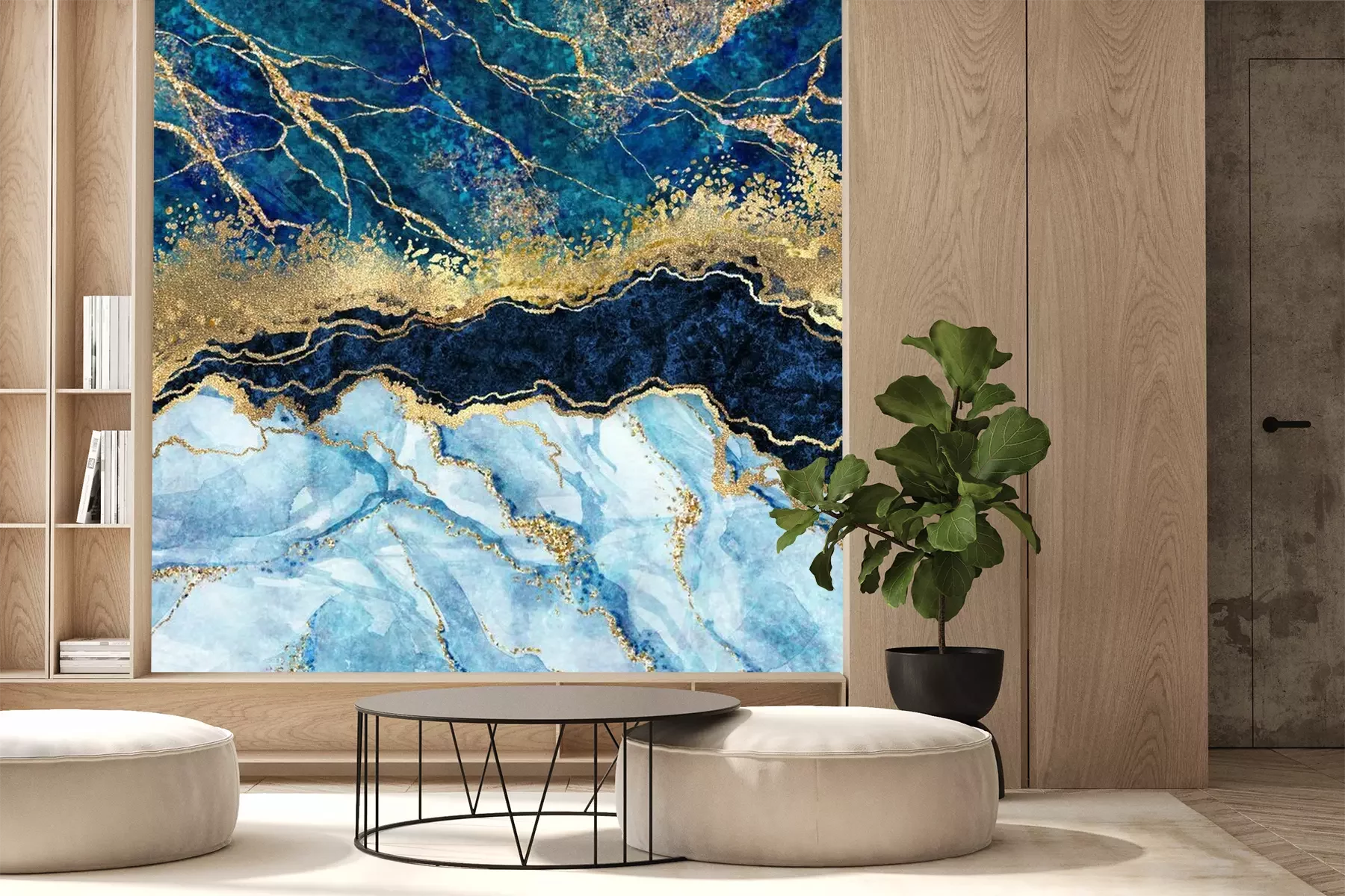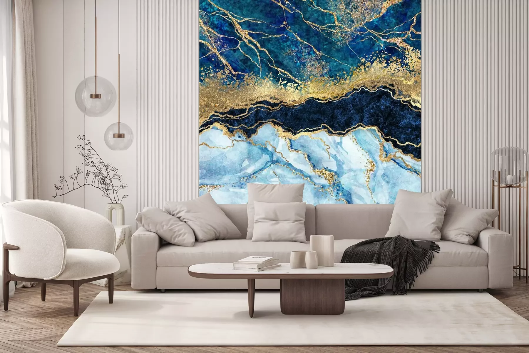 Das Material Premium+ besteht aus einer strukturierten Vinyl-Oberschicht und einem Trägermaterial (Vlies) mit einer Grammatur von 255 g/m², das kleine Unebenheiten der Wand zuverlässig kaschiert. Die feine Sandstruktur verleiht der Oberfläche eine luxuriöse Haptik, während das halbmatte Finish die Tiefe der Farben betont. Das Material ist dampfdurchlässig – so kann diese Fototapete auch in Küchen und Badezimmern eingesetzt werden. Die maximale Breite einer Tapetenbahn beträgt 100 cm. Bei größeren Abmessungen besteht die Fototapete aus mehreren gleich großen Bahnen. Der Kleber wird direkt auf die Wand aufgetragen, und die Fototapete wird auf Stoß angebracht, was für einen ästhetischen Effekt ohne sichtbare Fugen sorgt. Die Oberfläche ist pflegeleicht und kann bei Bedarf sanft mit einem feuchten Tuch abgewischt werden.