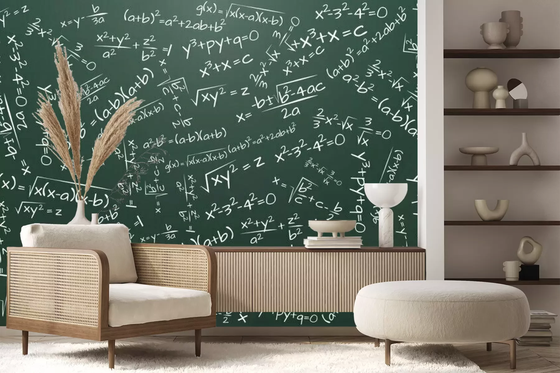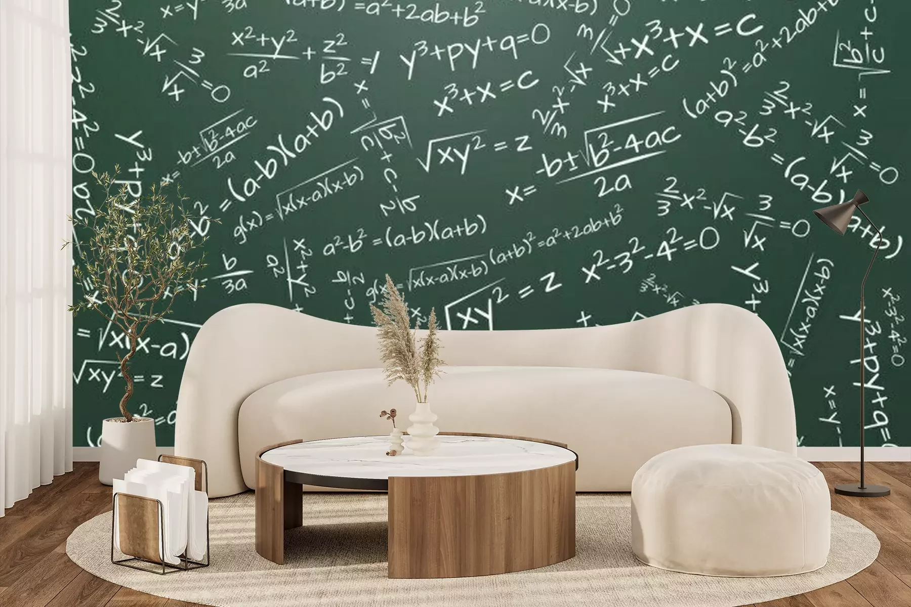 Fototapete Mathematische Formeln auf einer grünen Tafel