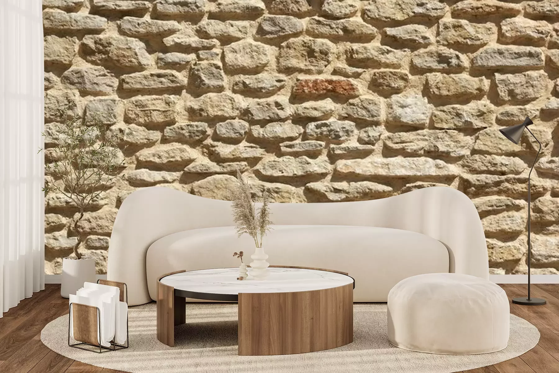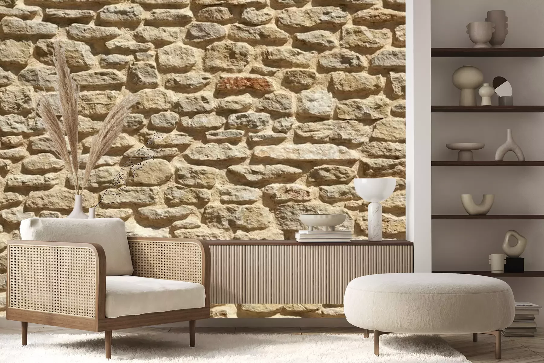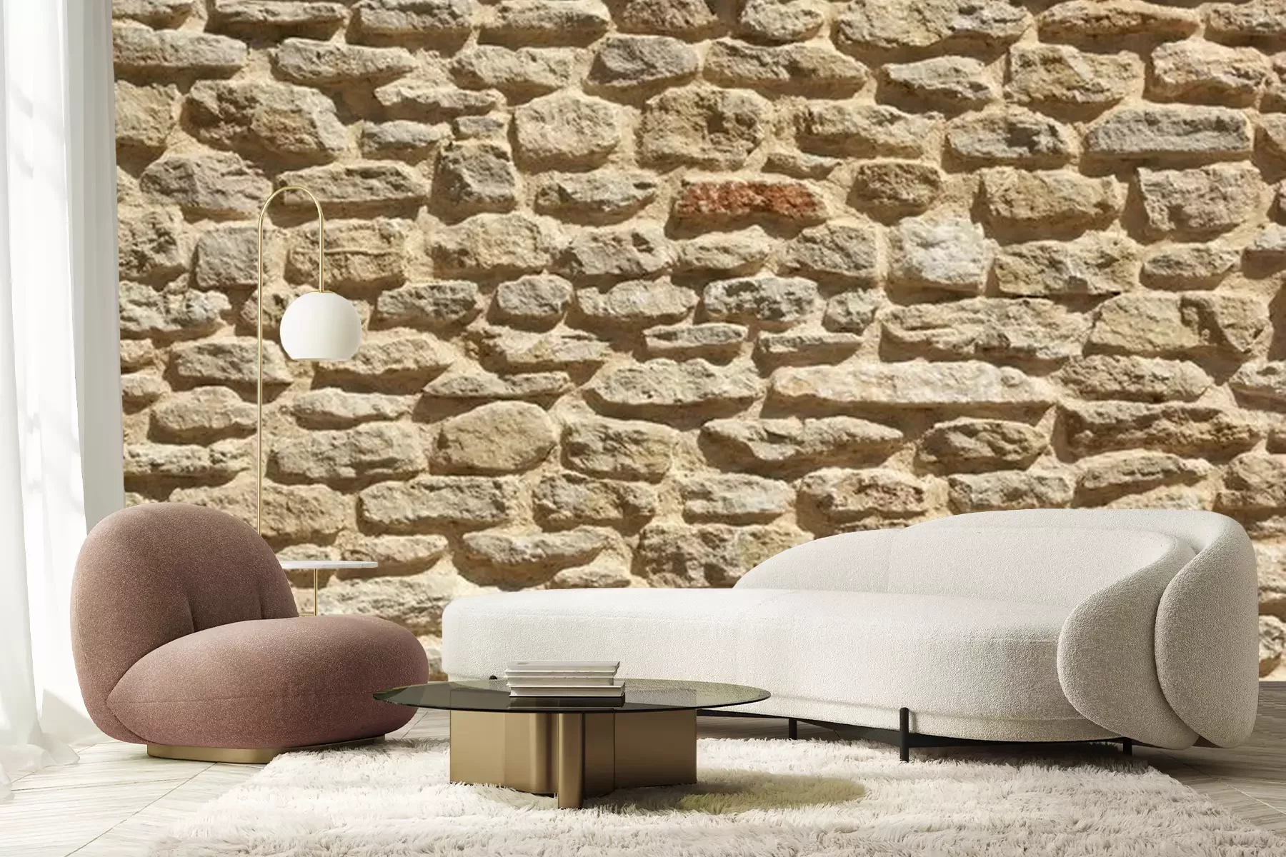 Fototapete Mauer aus natürlichen beigen Steinen