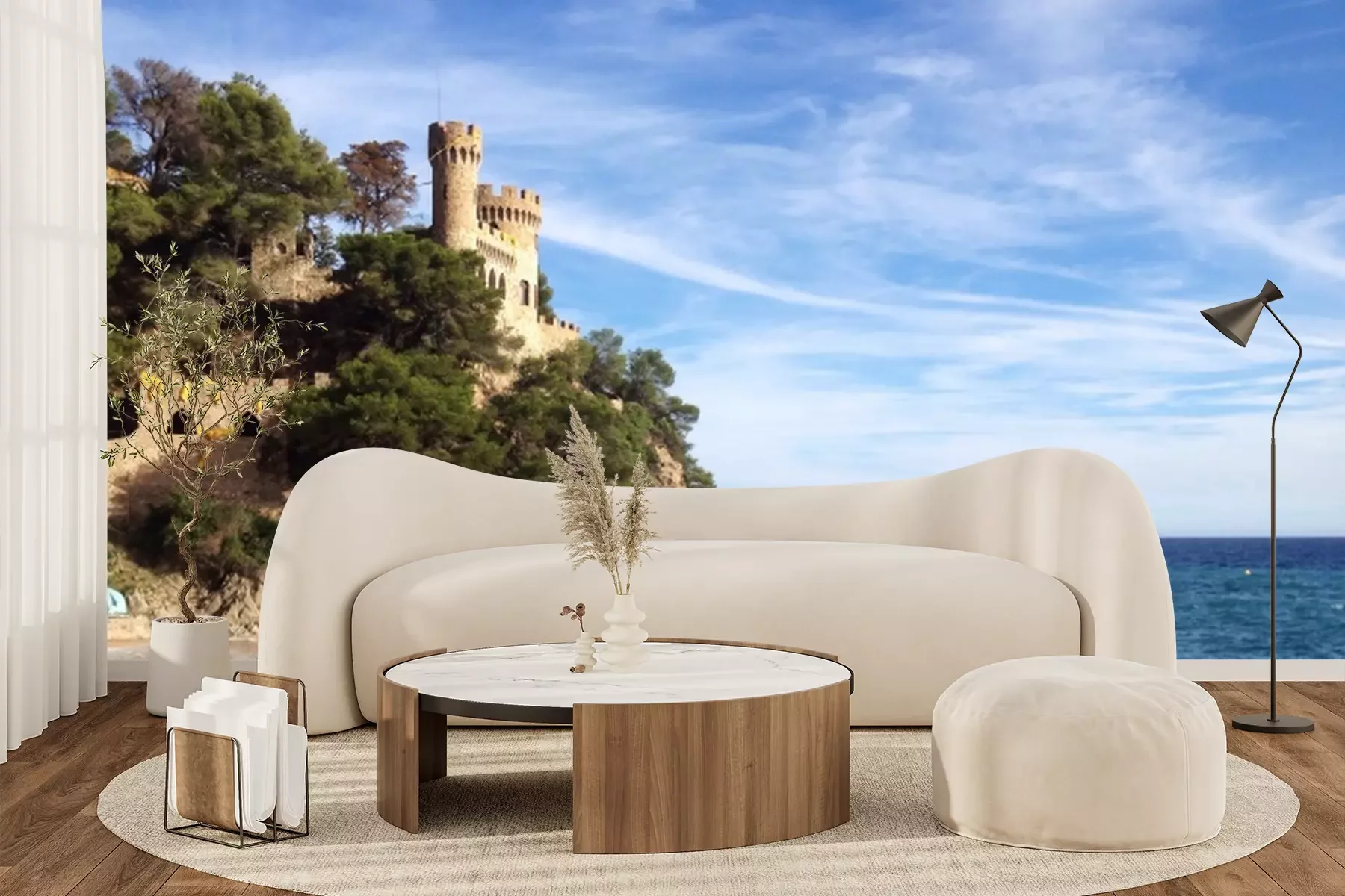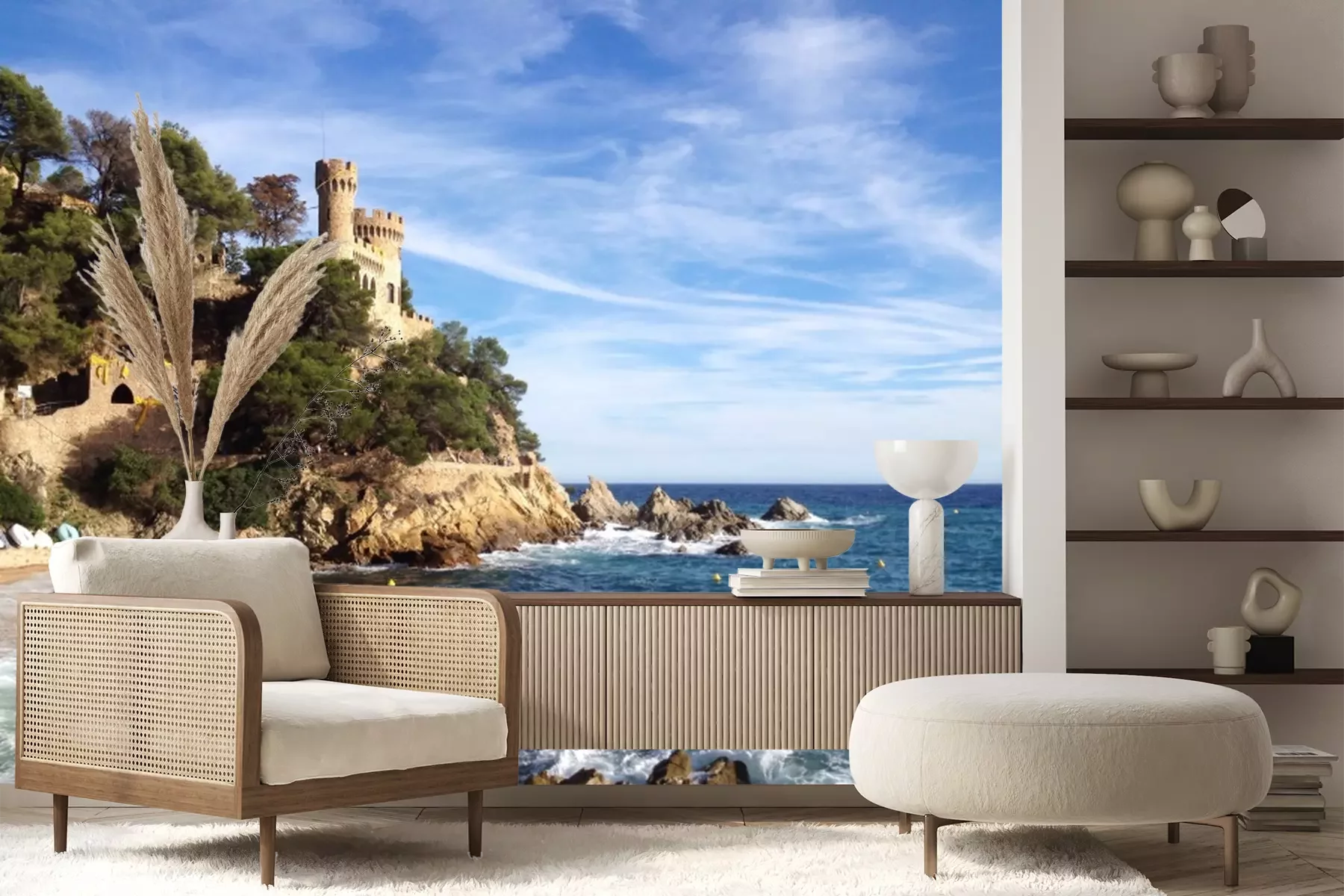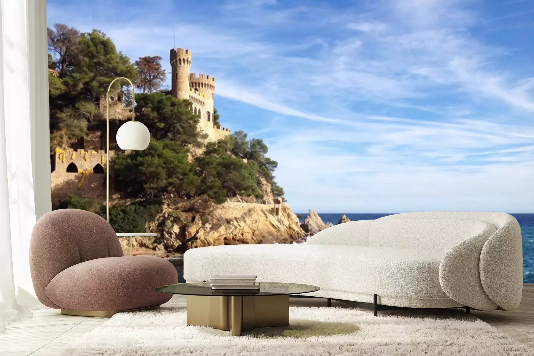 Fototapete Meer und Schloss auf den Felsen