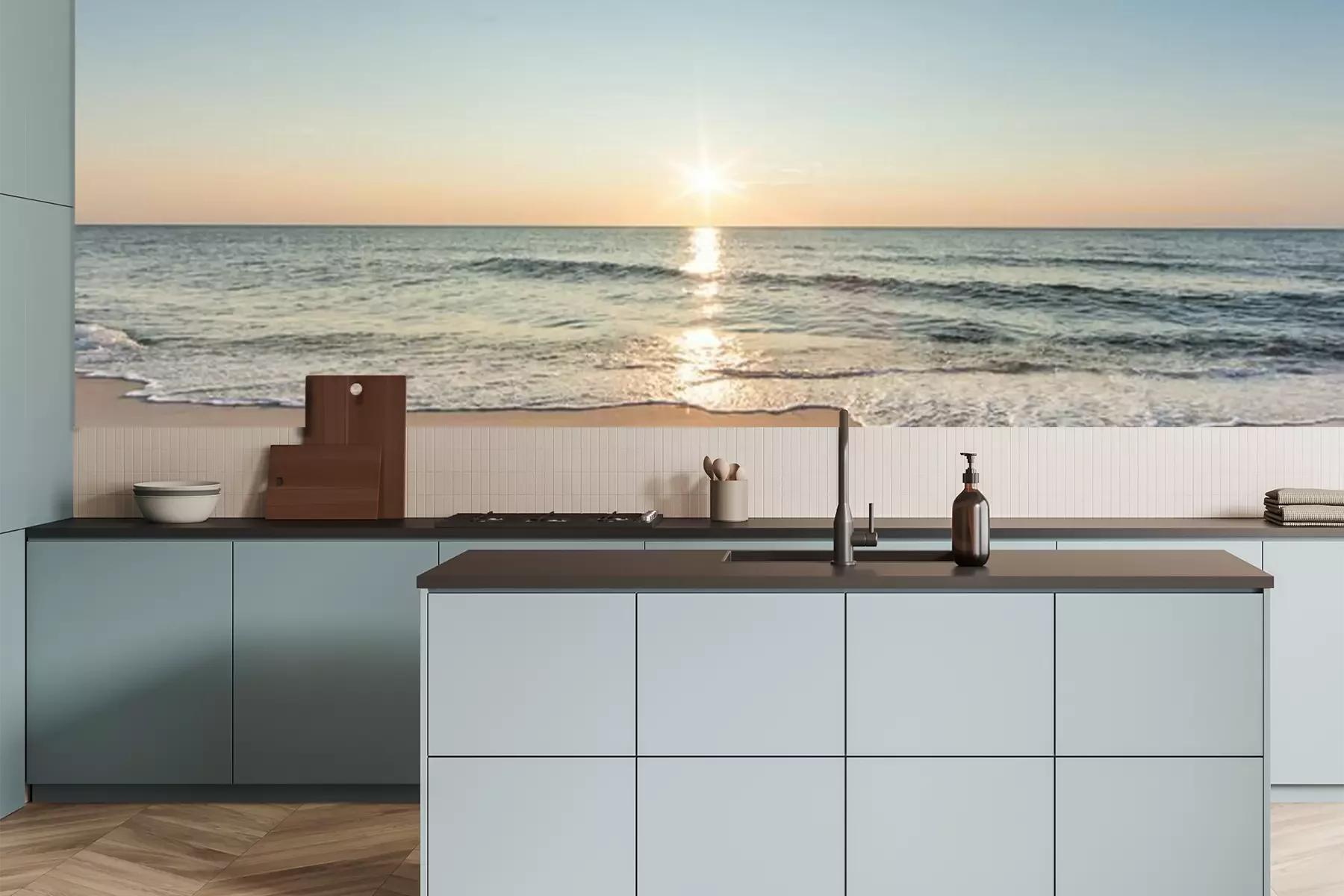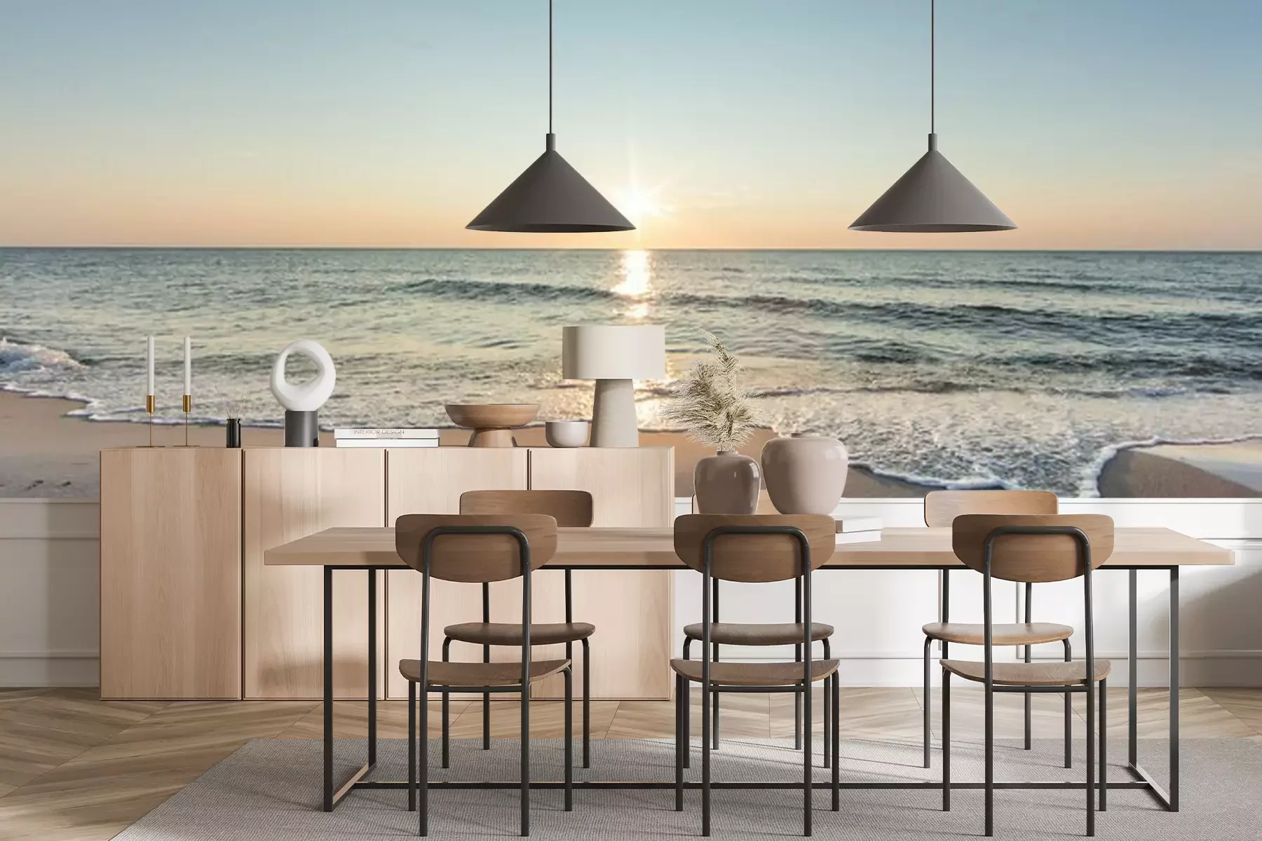 Fototapete Meer und Strand im Schein der untergehenden Sonne