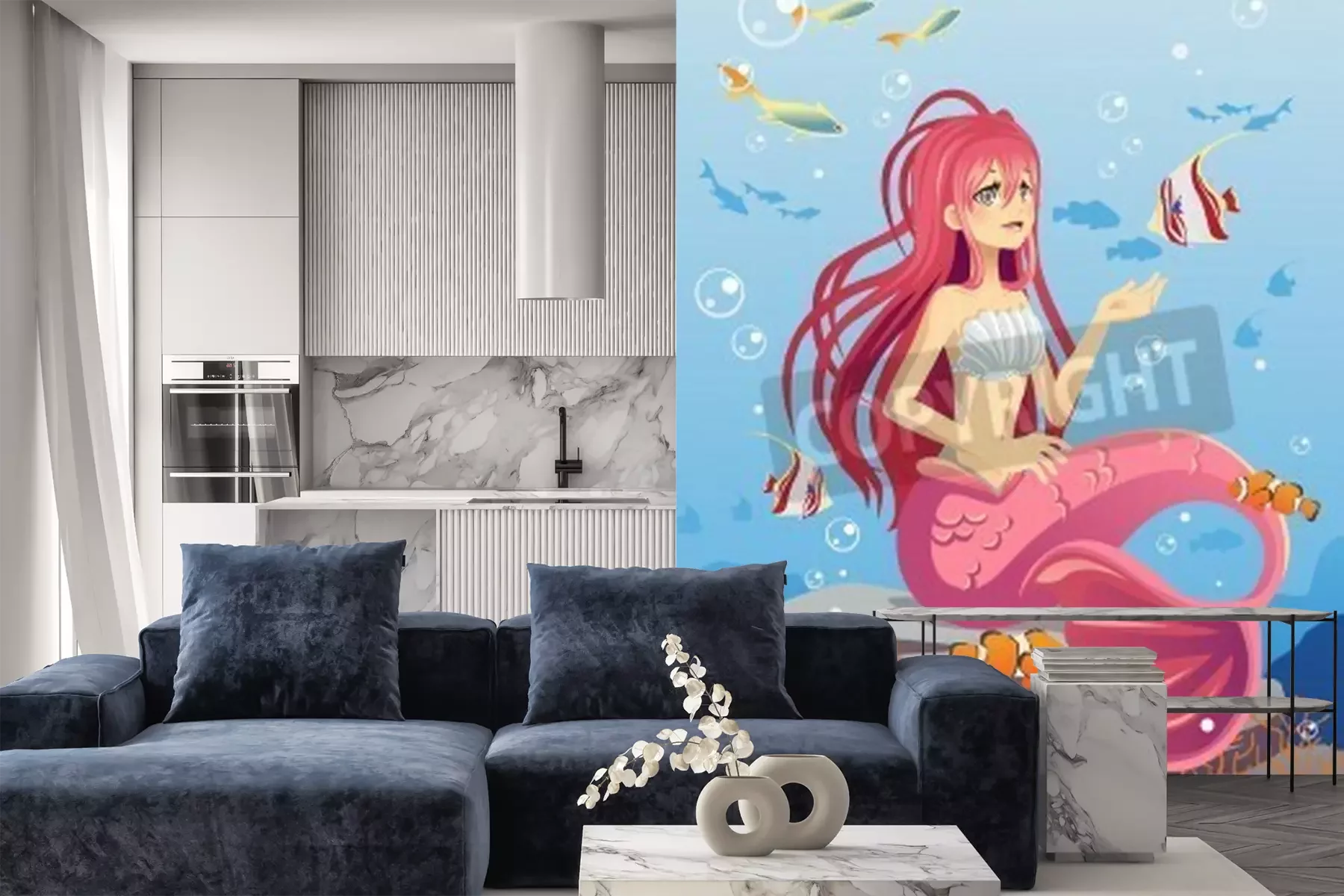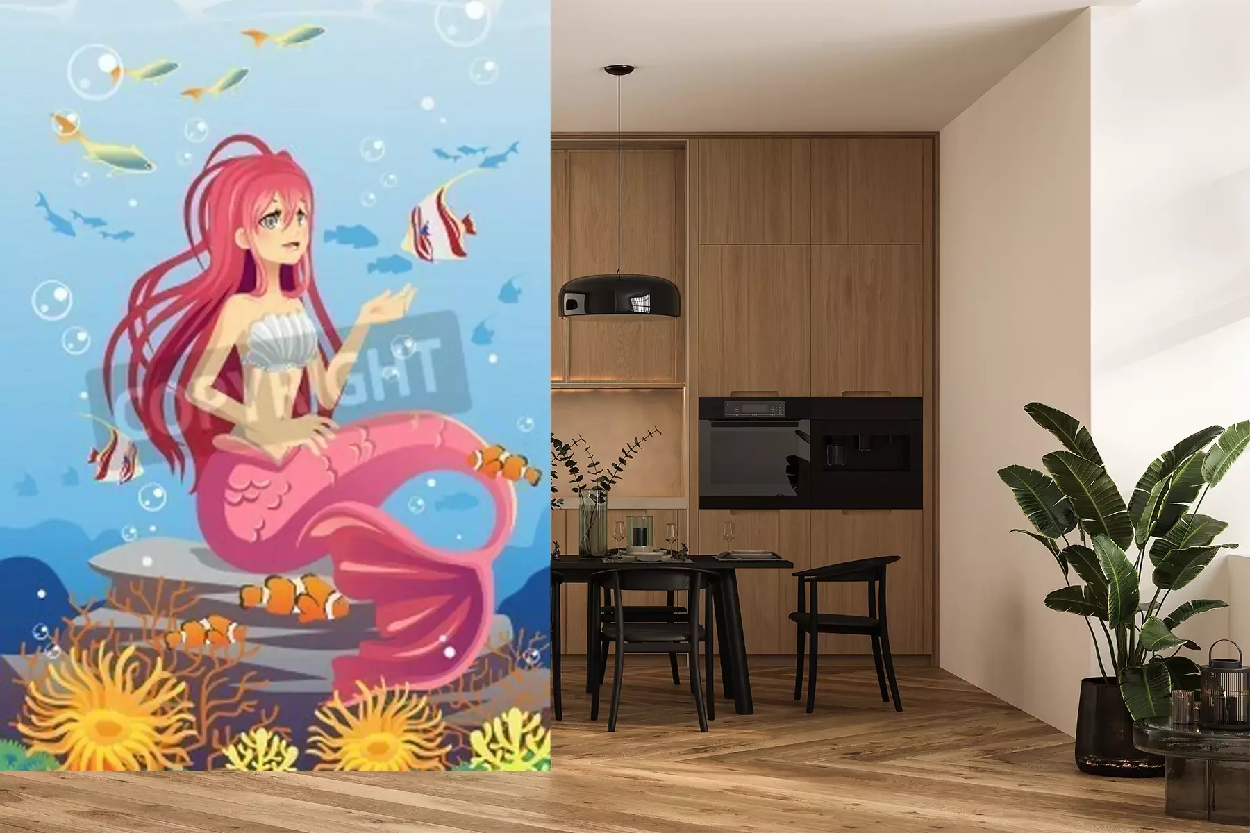 Fototapete Meerjungfrau sitzt auf dem Meeresboden
