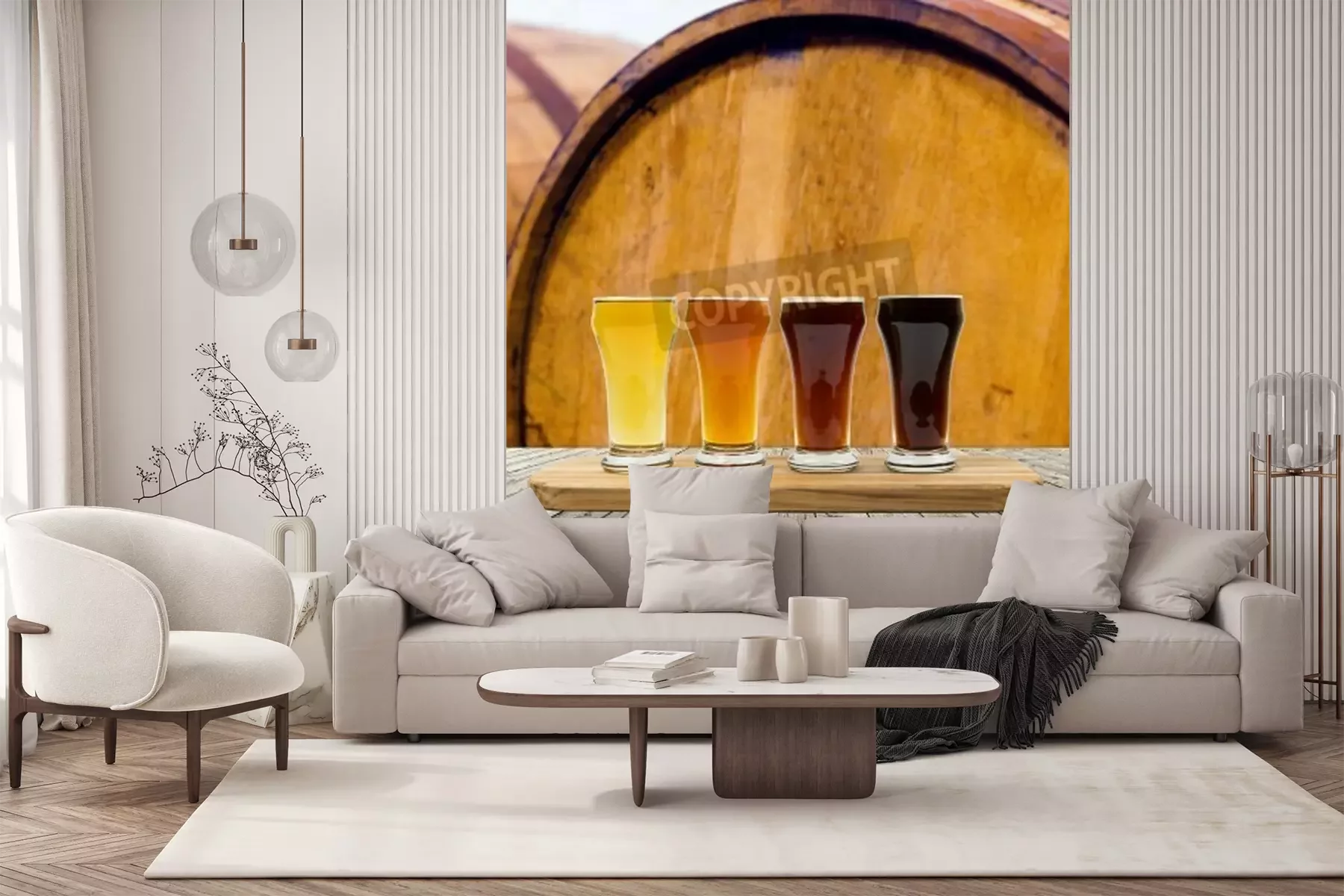 Die Fototapeten werden in Bahnen geliefert. Die Größe und die Anzahl der Bahnen, aus denen die gesamte Fototapete besteht, hängen vom gewählten Material ab. Wenn die Größe die maximale Breite des Materials überschreitet, besteht der Ausdruck aus mehreren gleich großen Bahnen.
