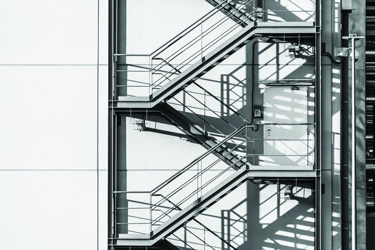 Fototapete: Metall-Außentreppe an einer weißen Wand